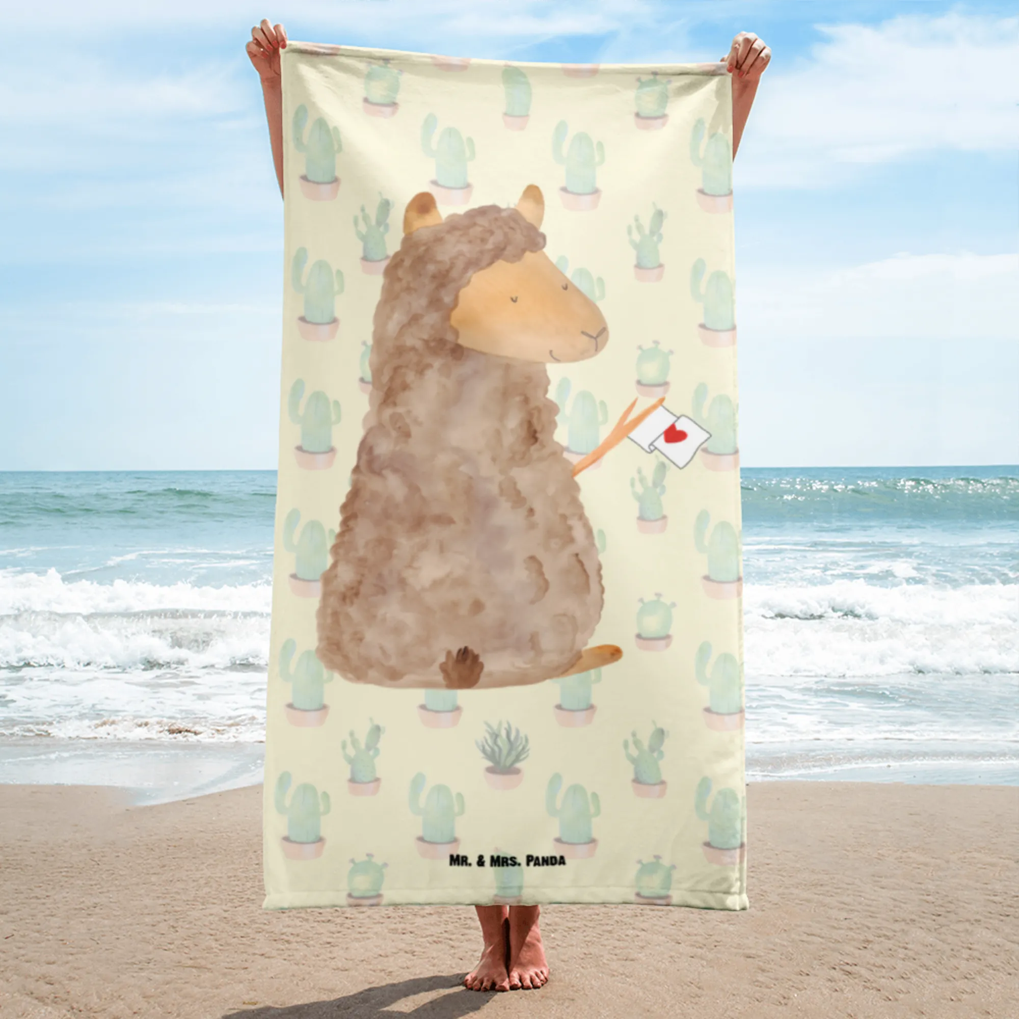 Not only ideal for the beach or pool days, this towel shines at sauna sessions or spa days too. The whimsical alpaca portrait, accompanied by a playful heart, adds a splash of happiness to your routine. Perfect for family outings, beach vacations, or gifting to someone who loves their cuddly alpaca friends, this towel beautifully encapsulates the essence of love and joy associated with these wonderful animals.