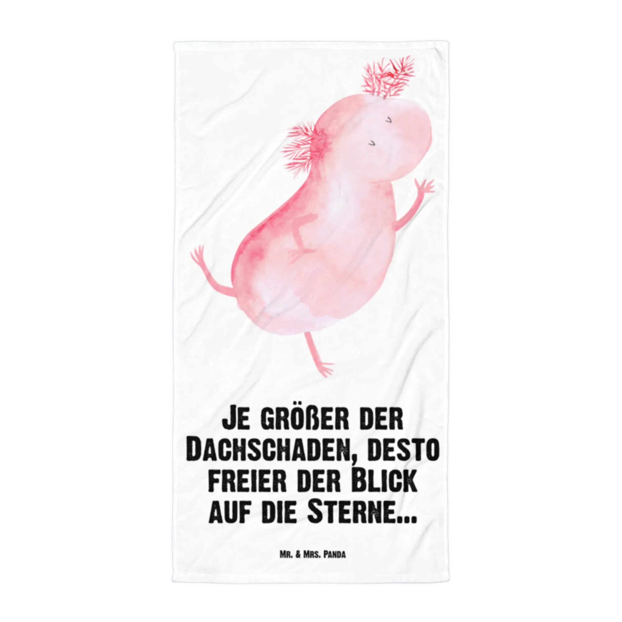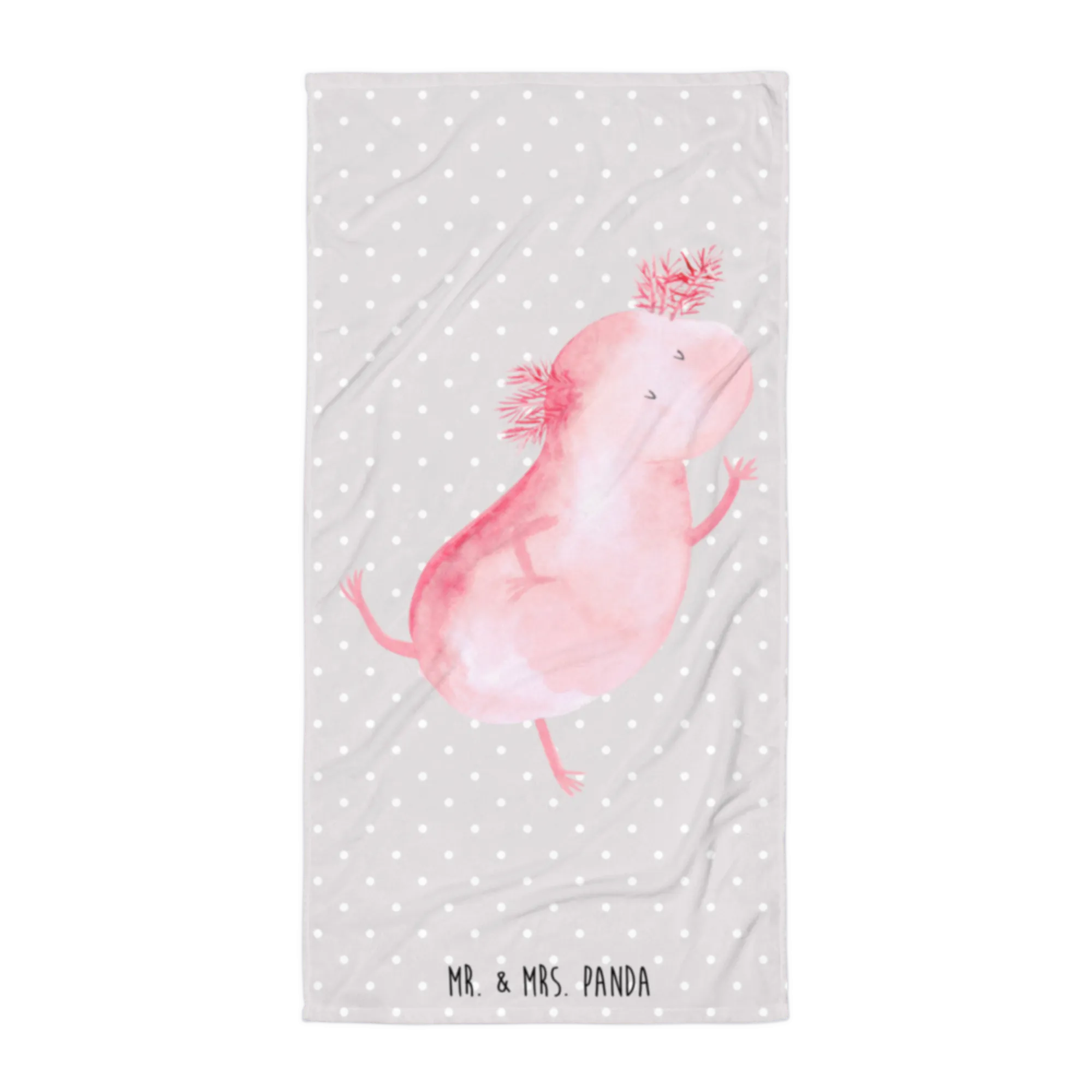 Imagine a day at the beach or lounging by the pool, enveloped in the vibrant colors of our unique Axolotl design. Axolotls, those enchanting Mexican walking fish, are depicted dancing through a backdrop of stars, radiating joy and playfulness. Each detail is lovingly crafted by Mrs. Panda, ensuring your towel not only serves a purpose but also brings a smile to every user.