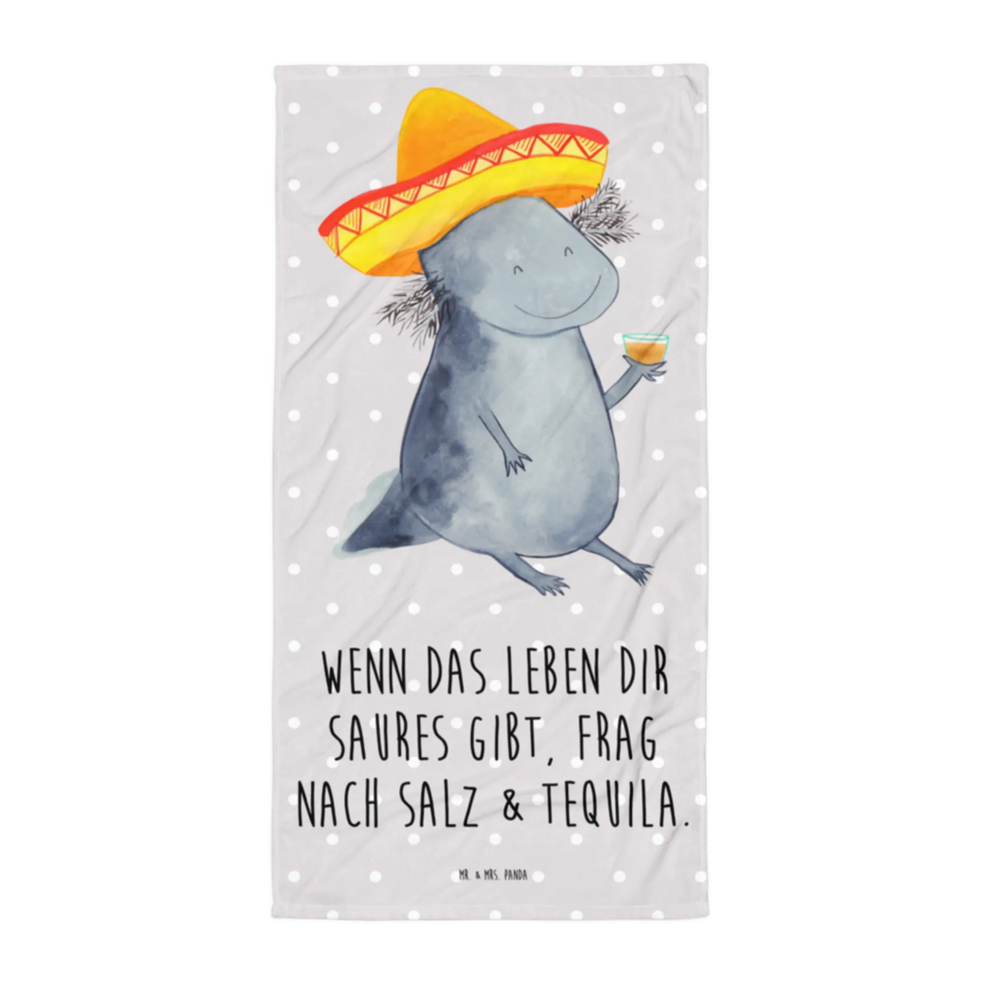 XL bath towel axolotl tequila - with saying - Grey Pastel