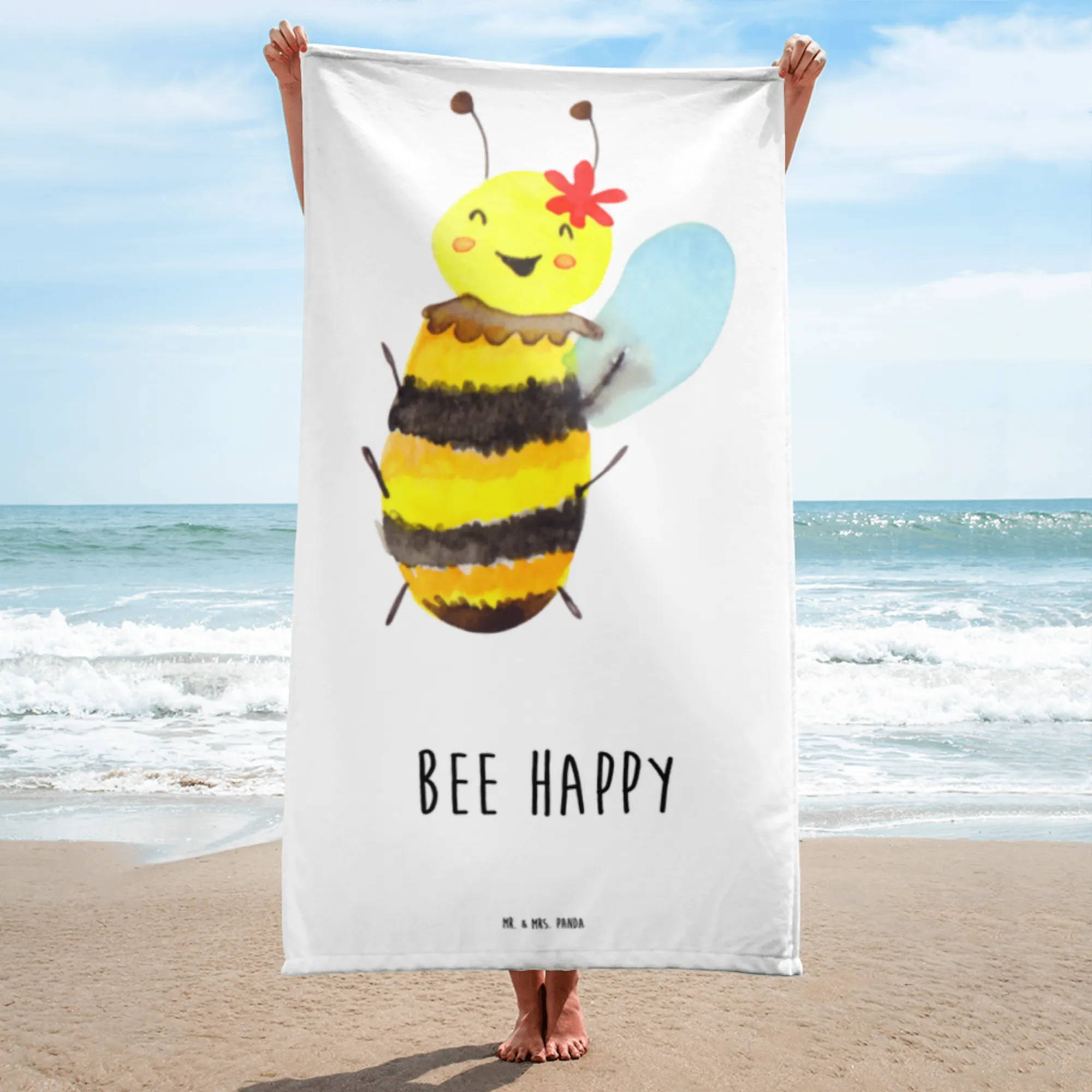 Introducing the delightful XL Bath Towel from the charming Bee collection by Mr. & Mrs. Panda! This oversized towel is more than just a simple bath accessory; it's a perfect companion for all your adventures, whether you're headed to the beach, the pool, or enjoying some spa time at home. Fluffy, cozy, and adorned with the adorable motif of a happy bumblebee, this towel radiates positivity and charm, reminding you to "Bee happy!" every time you use it.