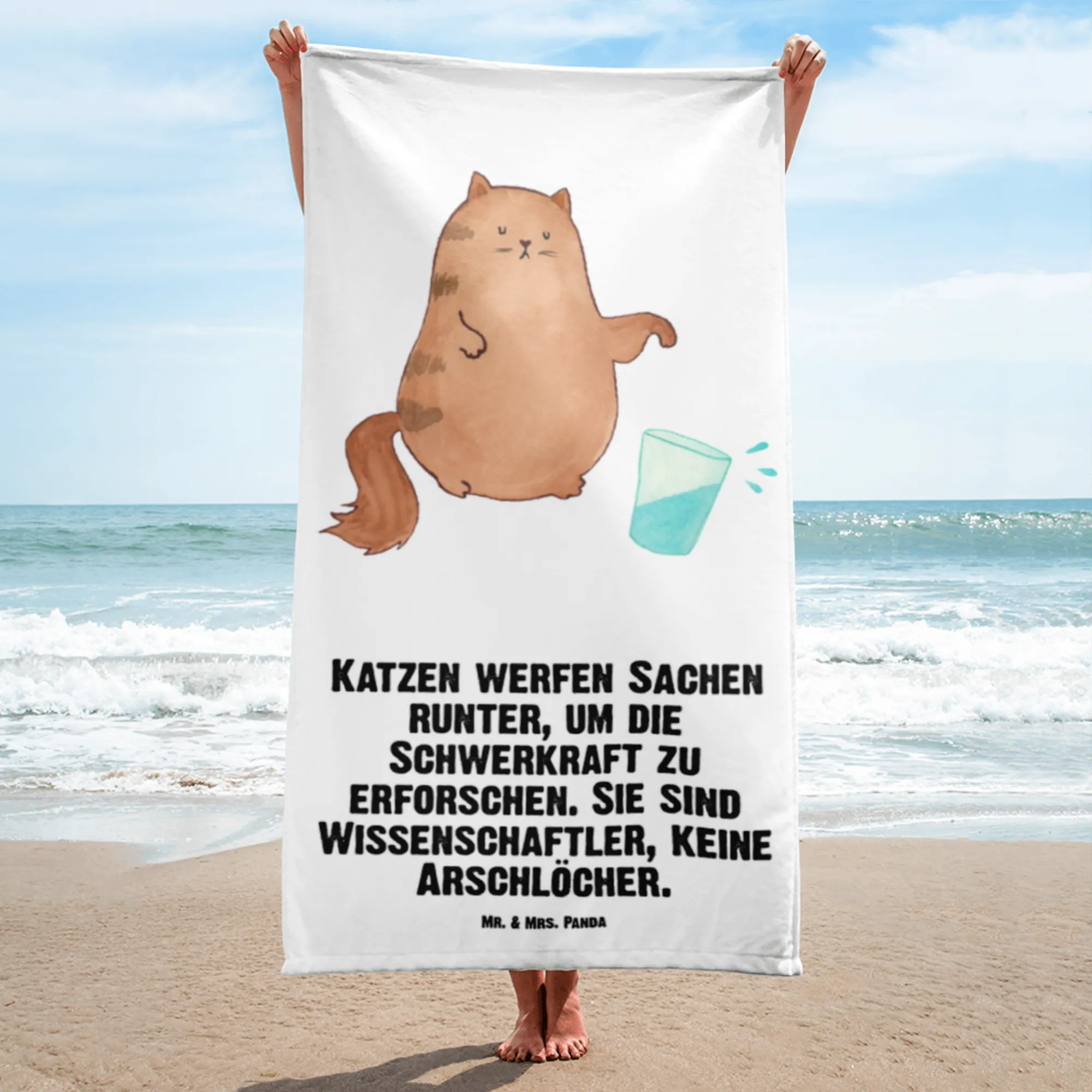 Introducing the Mr. & Mrs. Panda XL Bath Towel featuring a delightful motif of a cat and a water glass from our special Cats - Collection! This oversized towel is the perfect gift for cat lovers who appreciate a little whimsy and humor in their lives.