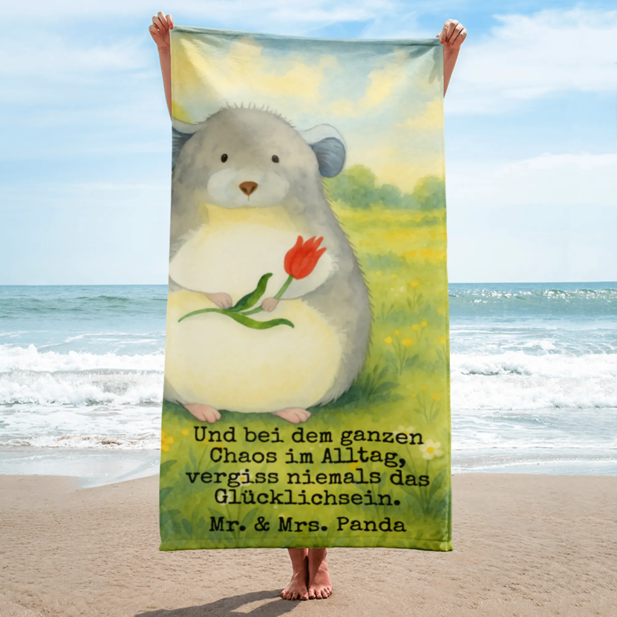 XL bath towel chinchilla flower Design - with a saying