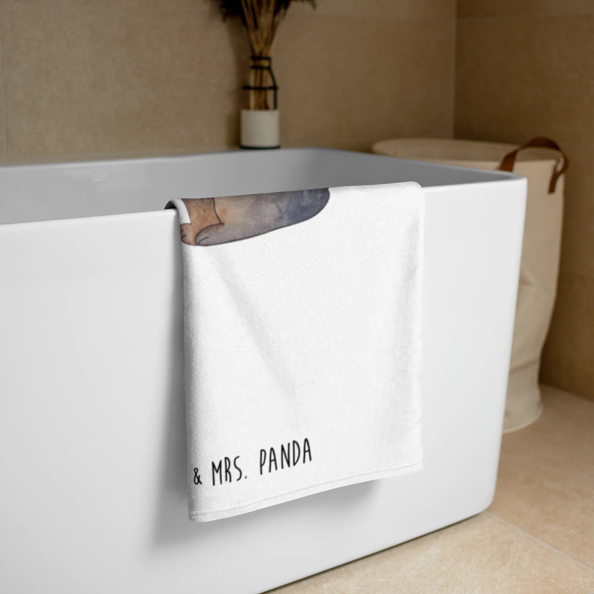 Introducing the ultimate comfort for dog lovers everywhere - the XL bath towel from Mr. & Mrs. Panda! This perfectly oversized towel combines luxury with a playful design, featuring our adorable motif of a chilled-out black and white dog. Crafted with the utmost care, our towel is made from a blend of 50% cotton and 50% polyester, making it ultra-soft and super absorbent, just what you need for a relaxing day at the beach, spa, or poolside. Imagine wrapping yourself in this cozy blanket after a refreshing swim or a sunny day at the shore. Its generous size of 60 inches by 30 inches ensures you have plenty of room to lounge and dry off comfortably.