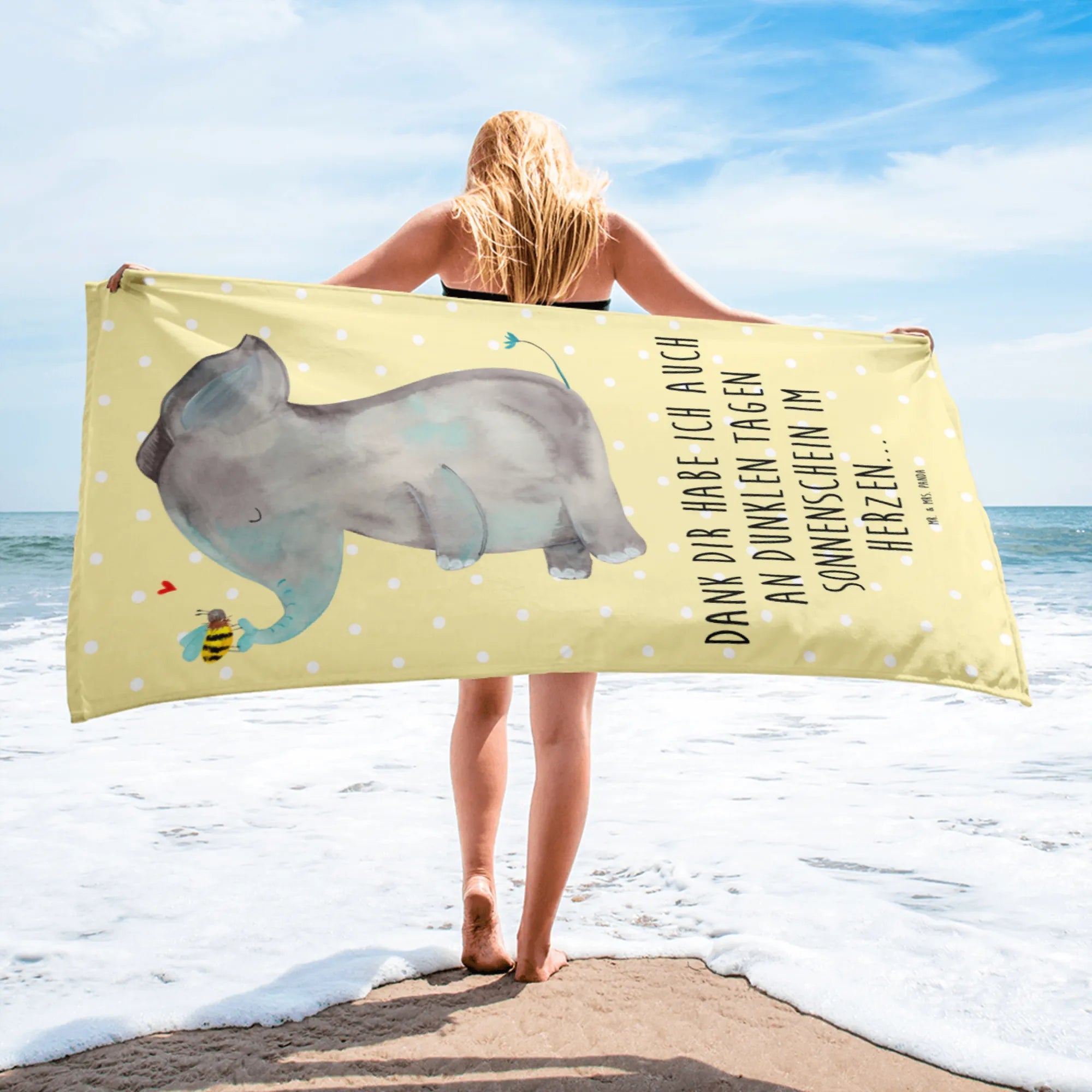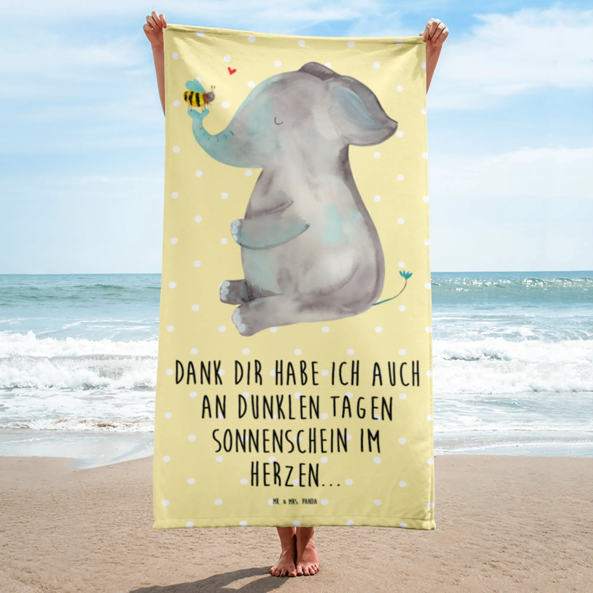 XL bath towel elephant bee - with a saying - Pastel Yellow