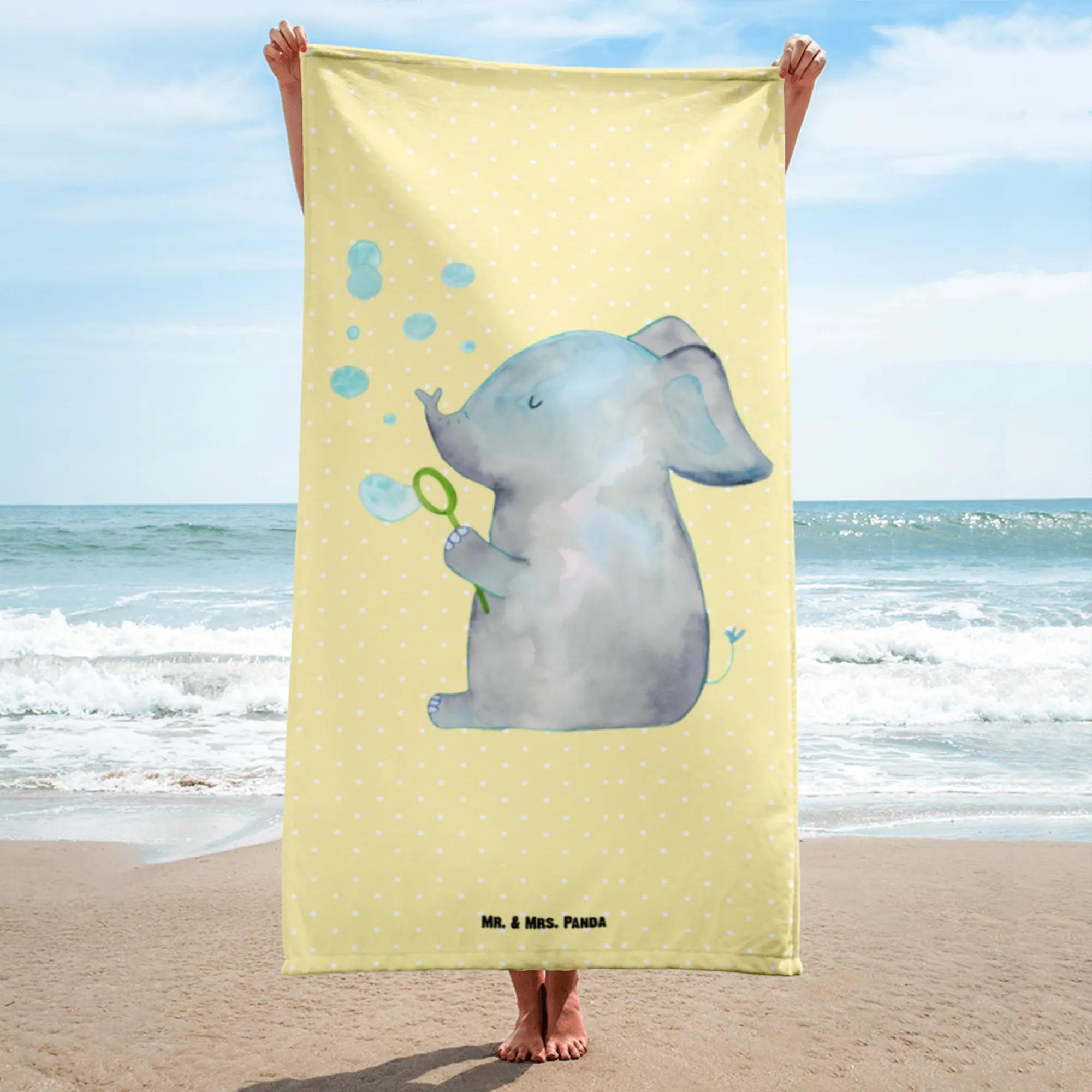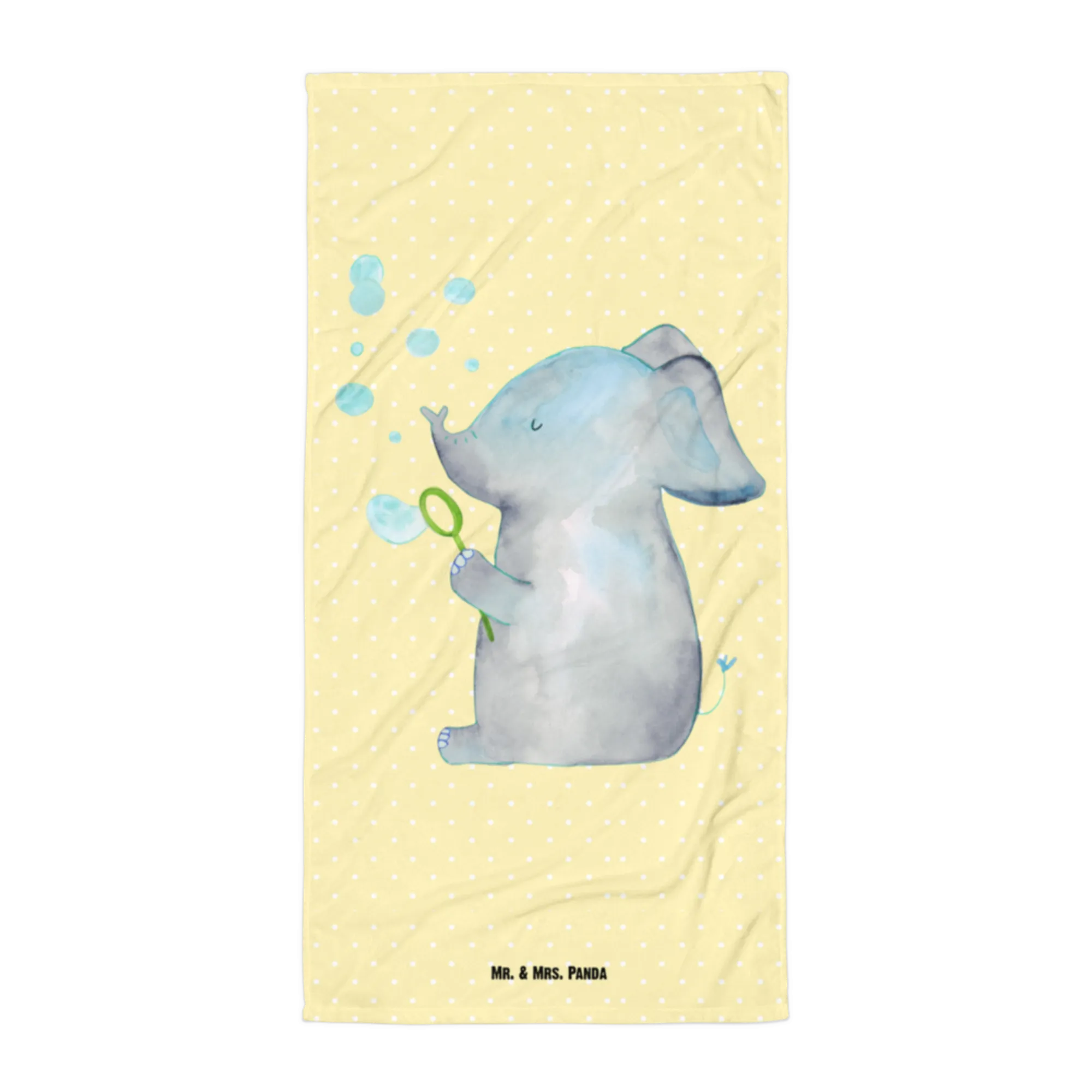 XL bath towel elephant soap bubbles - with saying - Pastel Yellow
