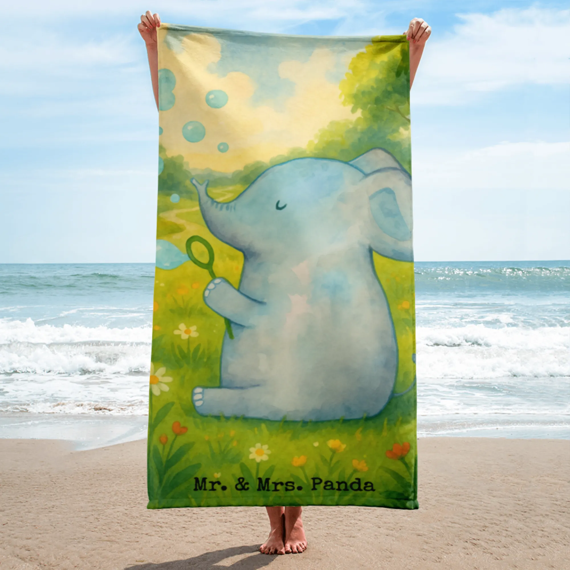 XL bath towel elephant soap bubbles Design - with saying