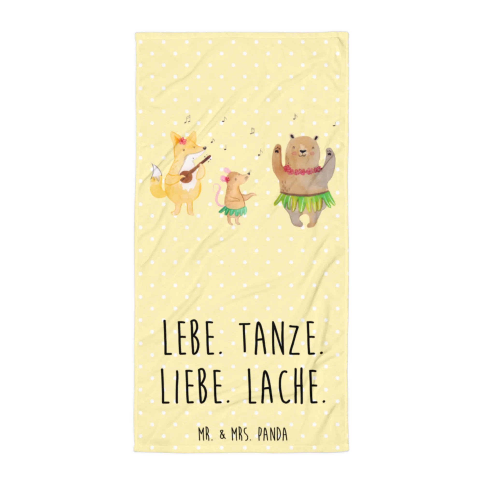 Imagine wrapping yourself in the warmth of this extra-large swim towel after a refreshing dip in the ocean or basking in the sun at your favorite beach. The adorable forest animals, including bears, rabbits, and hedgehogs, come to life in colorful, hand-drawn illustrations that are sure to spark joy and laughter. Accompanied by the cheerful slogan 'Live. Dance. Love. Laugh.', this towel doesn't just keep you dry; it also adds a playful spirit to your day!