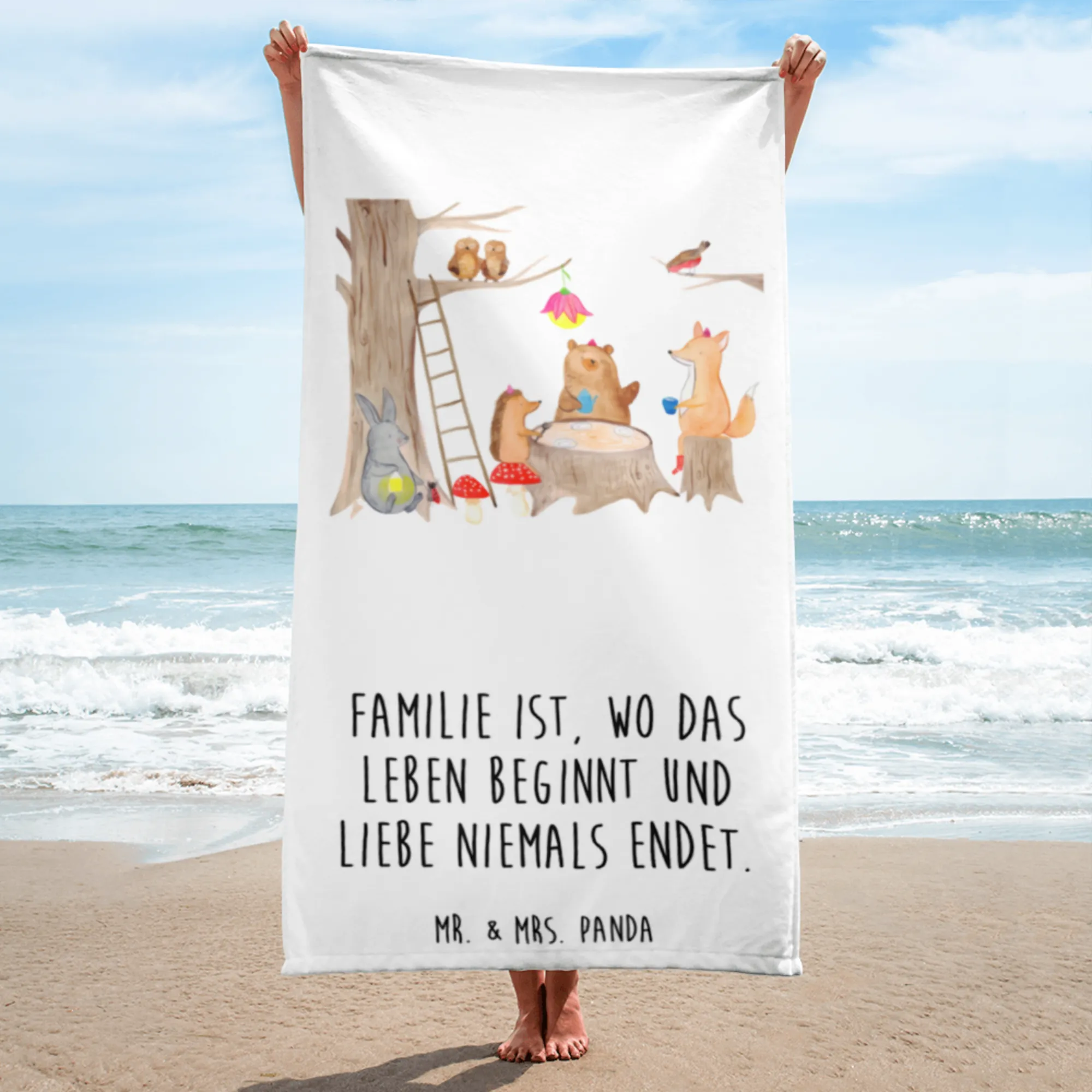 Introducing the delightful Mr. & Mrs. Panda XL Bath Towel, featuring an enchanting "Forest Animals Picnic" motif from our beloved Small World collection!