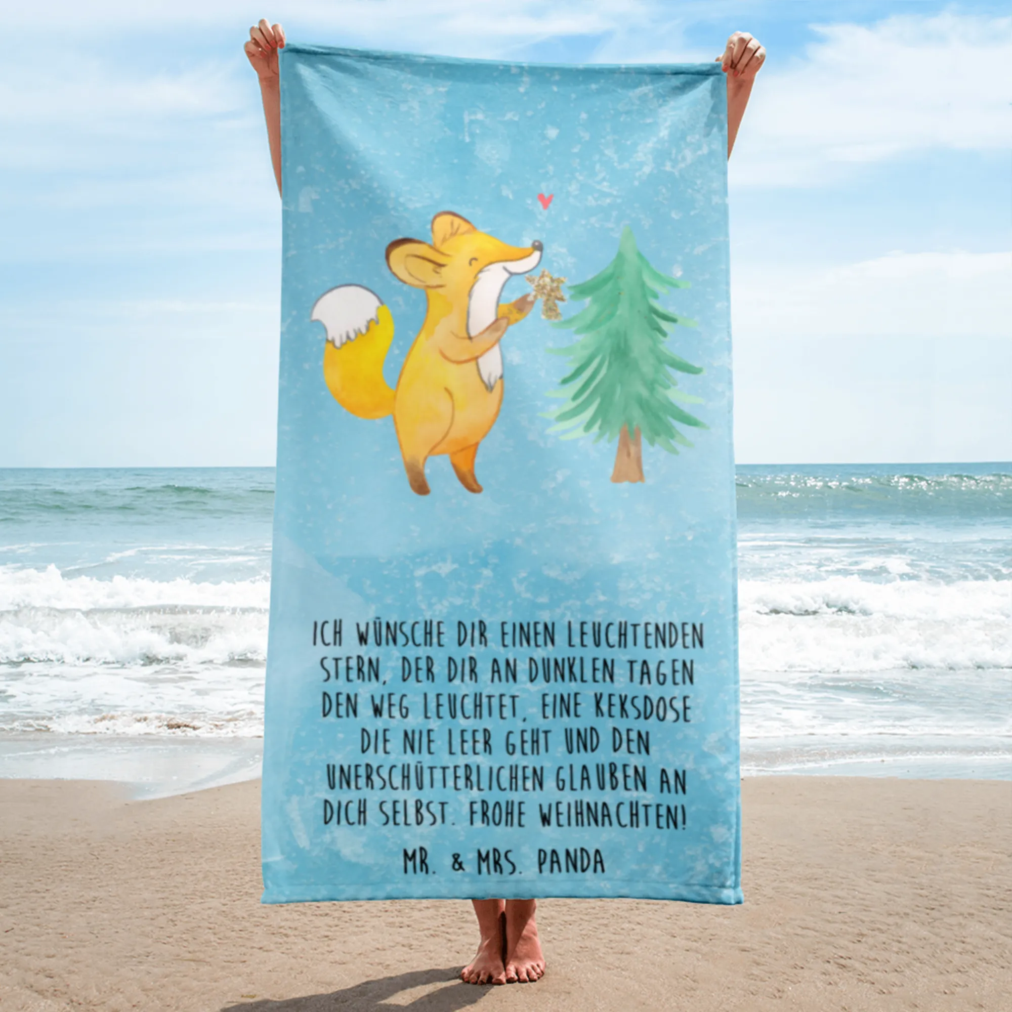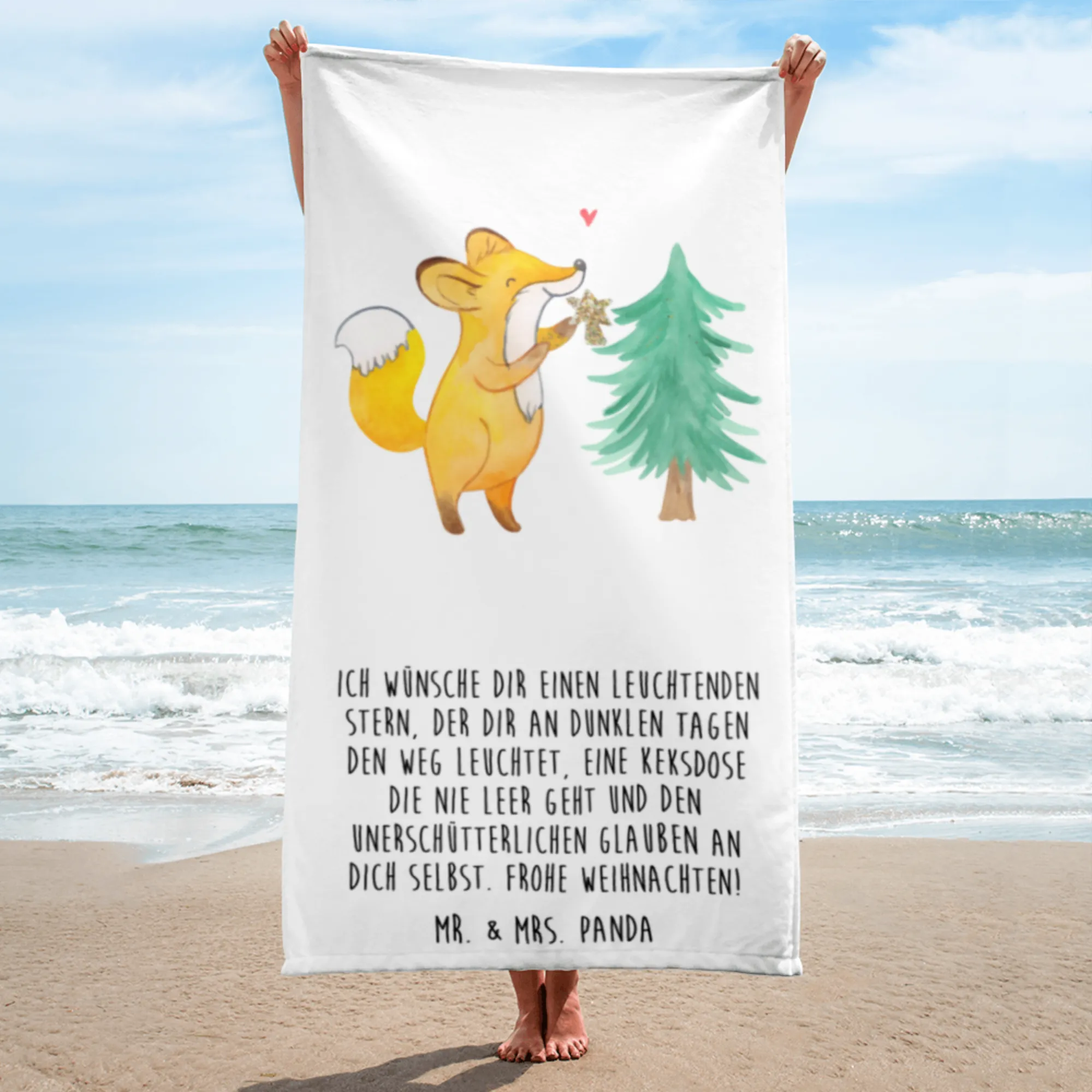 XL bath towel Fox Christmas tree - White