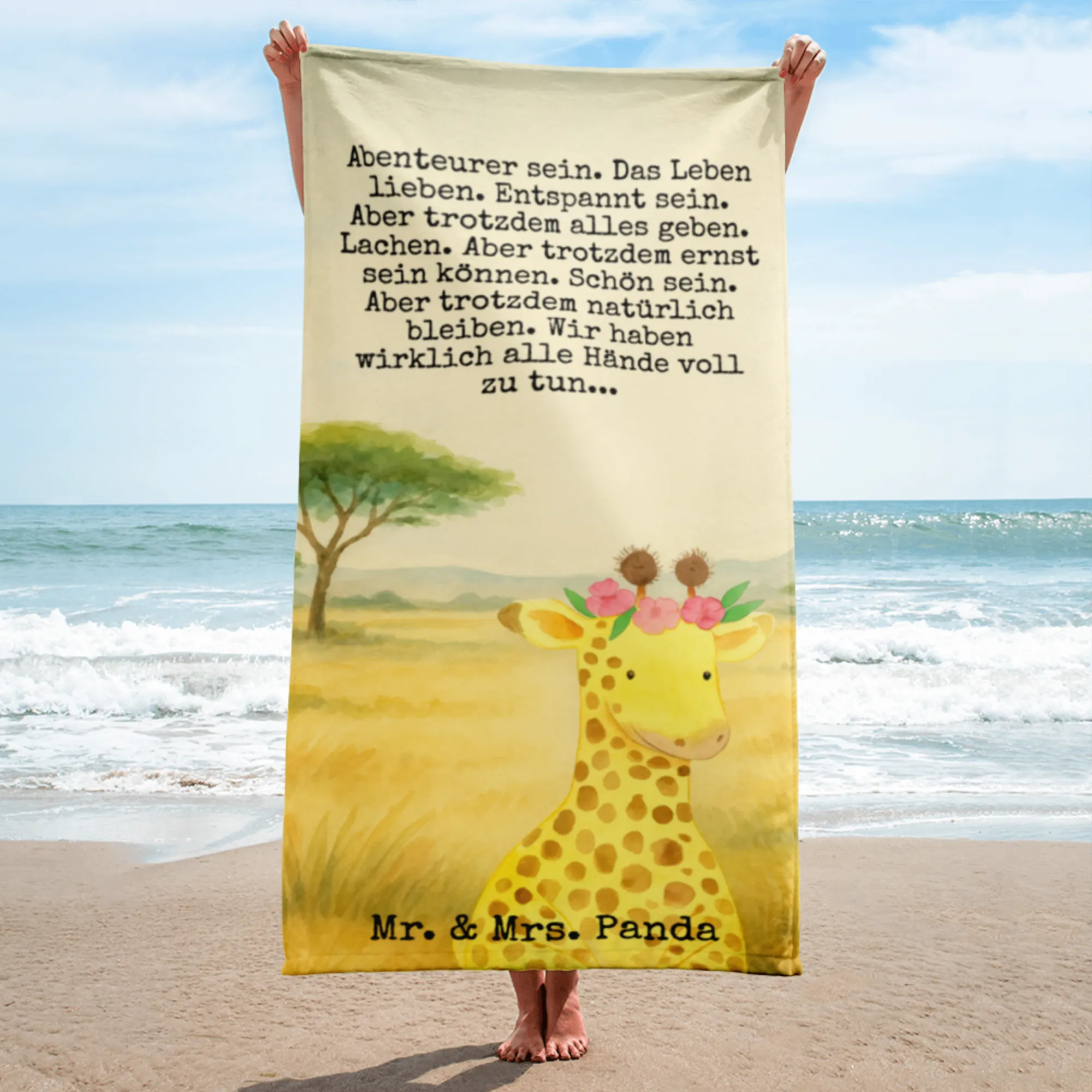 XL bath towel giraffe flower wreath Design