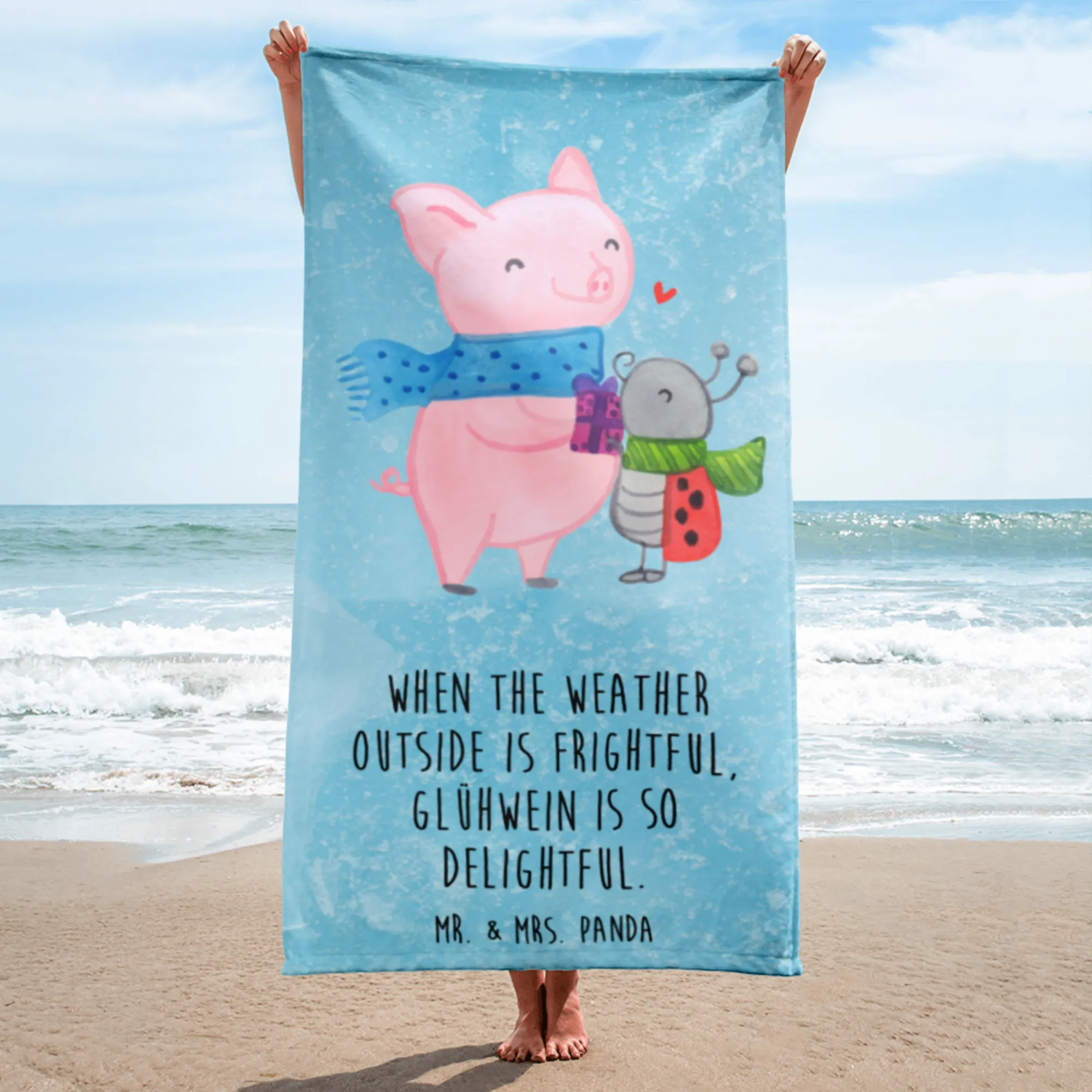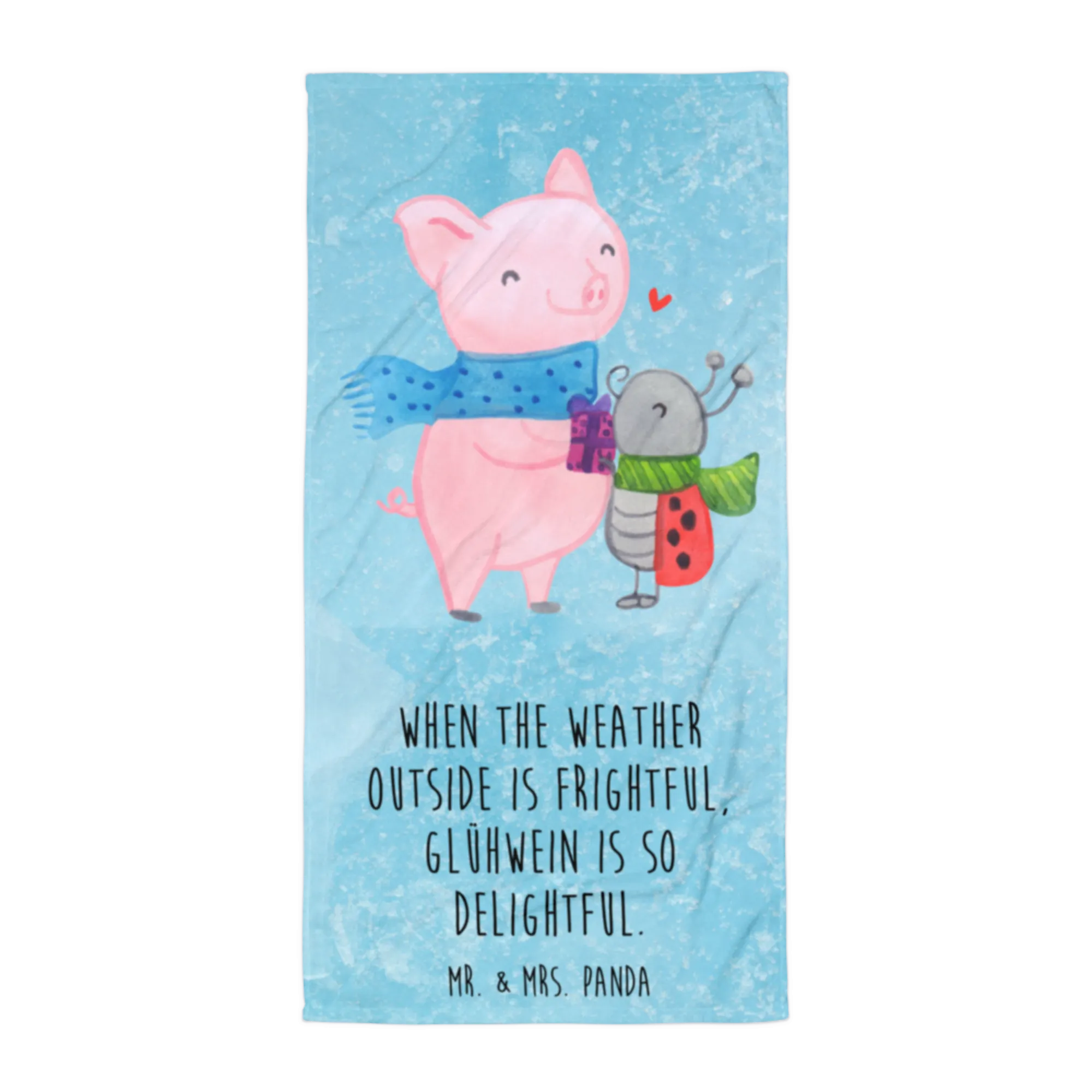 Dive into the warmth of the Toasty Pig Smörle motif, where joy meets coziness! Imagine our charming pig, wrapped in a delightful blue scarf, enjoying a hot cup of Glühwein. With the adorable ladybug at his side, donned in a striped green scarf, they personify the friendship and warmth that make winter delightful. The heart floating above them signifies the love surrounding every cozy moment shared between friends. This design isn't just an artwork; it's a celebration of winter fun and the delightful drinks that come with it. As we like to remind you, 'When the weather outside is frightful, Glühwein is so delightful.' This motif serves as a sweet reminder to embrace those special moments with loved ones, making for an ideal gift for every Glühwein lover!