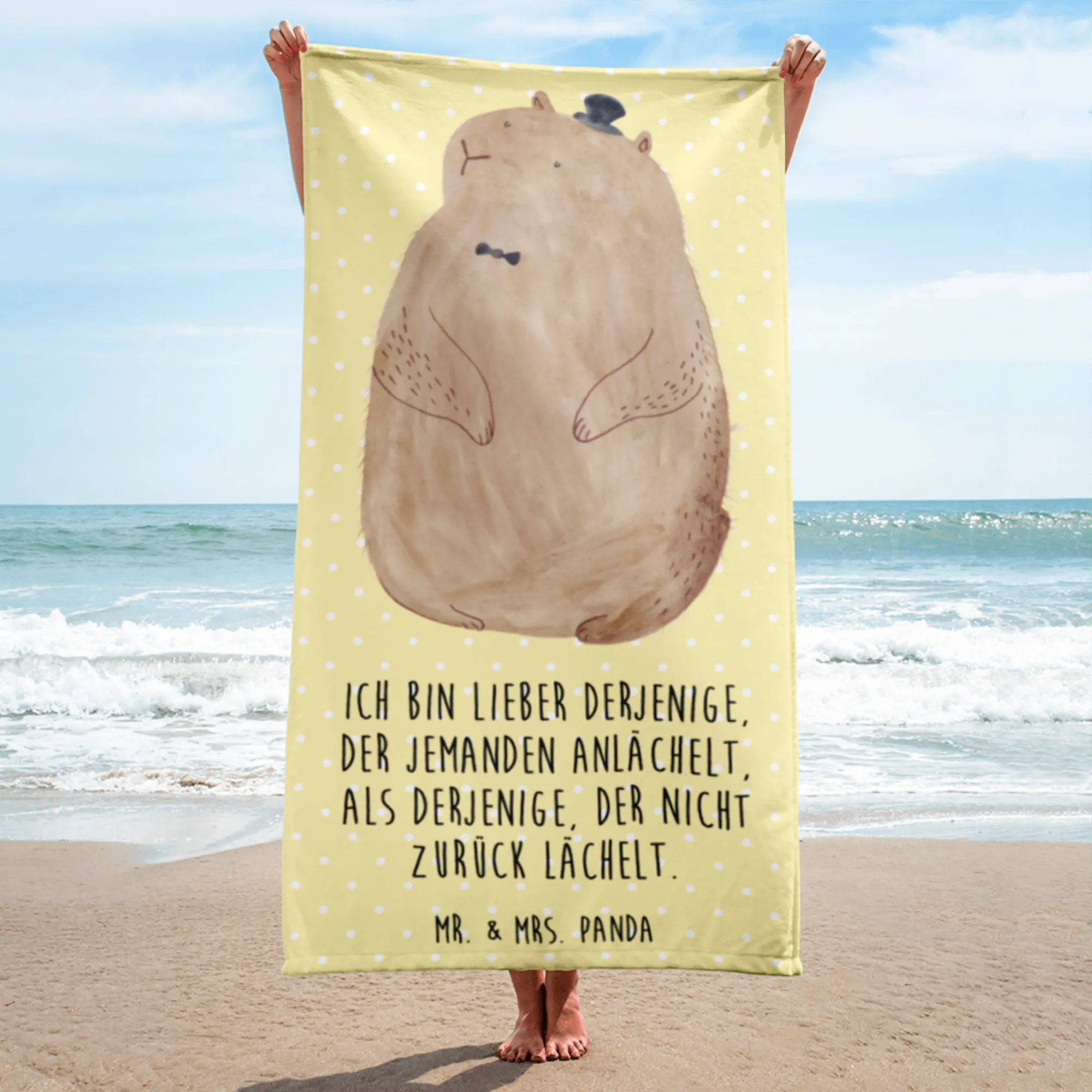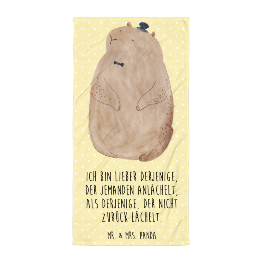 XL bath towel Groundhog - with saying - Yellow Pastel