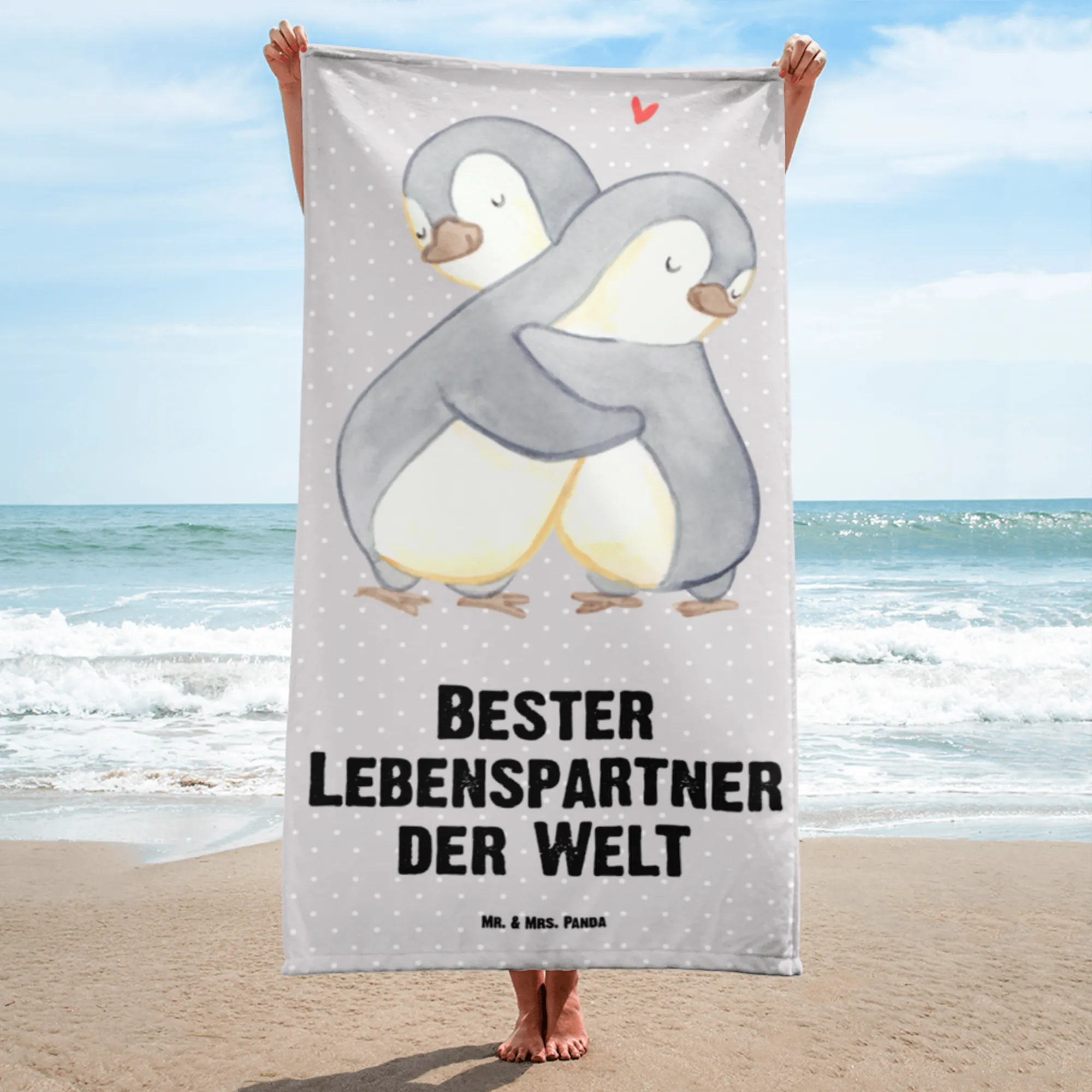 XL bath towel penguin Best life partner in the world - Pastel Gray