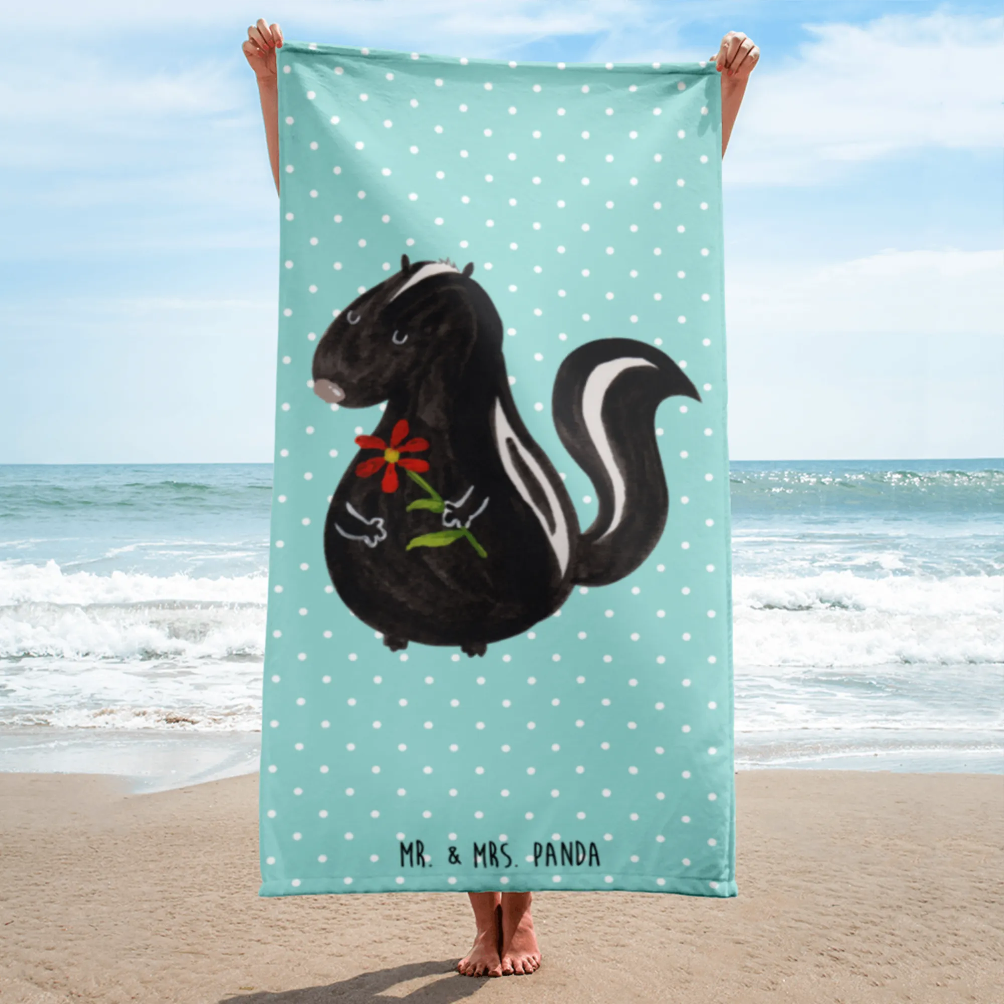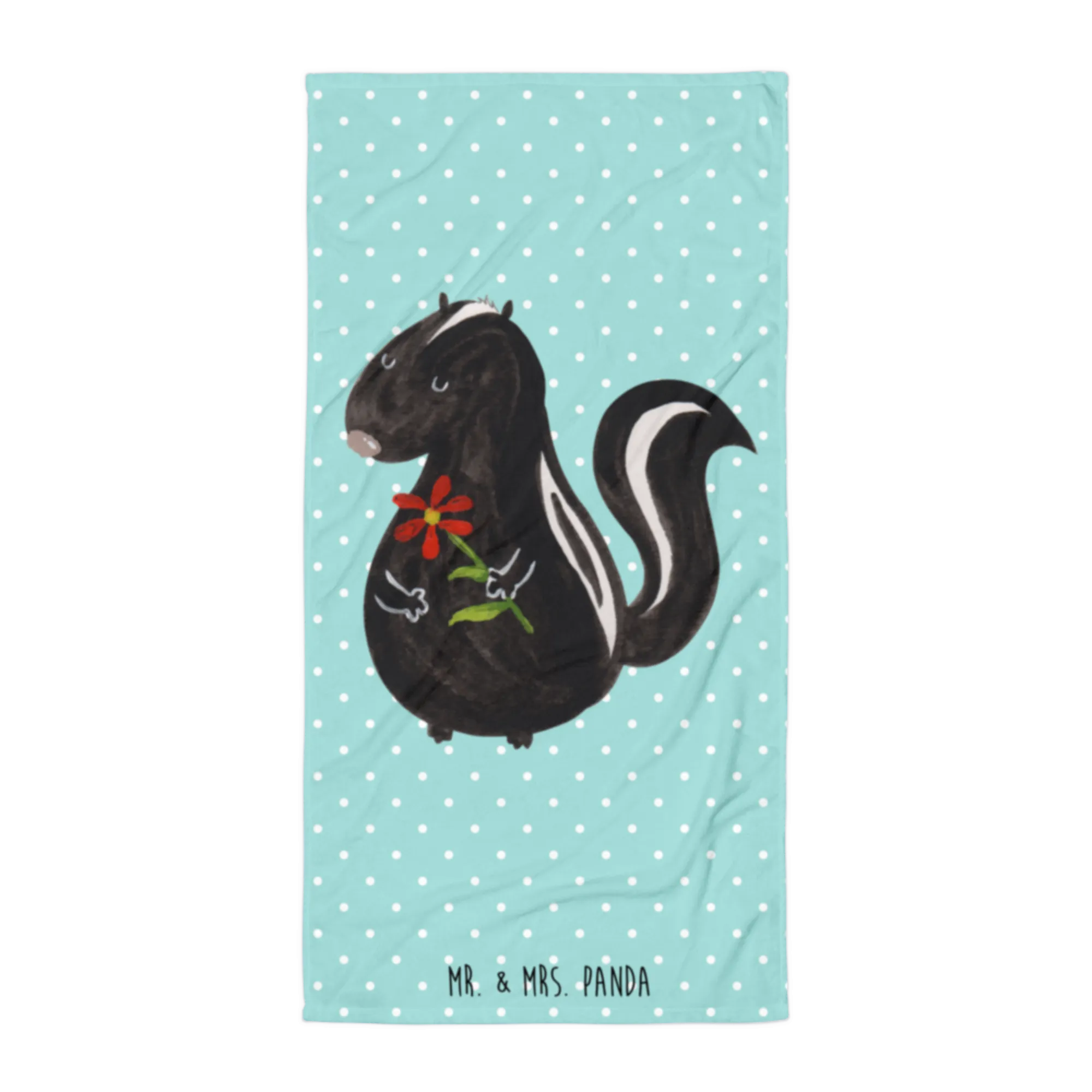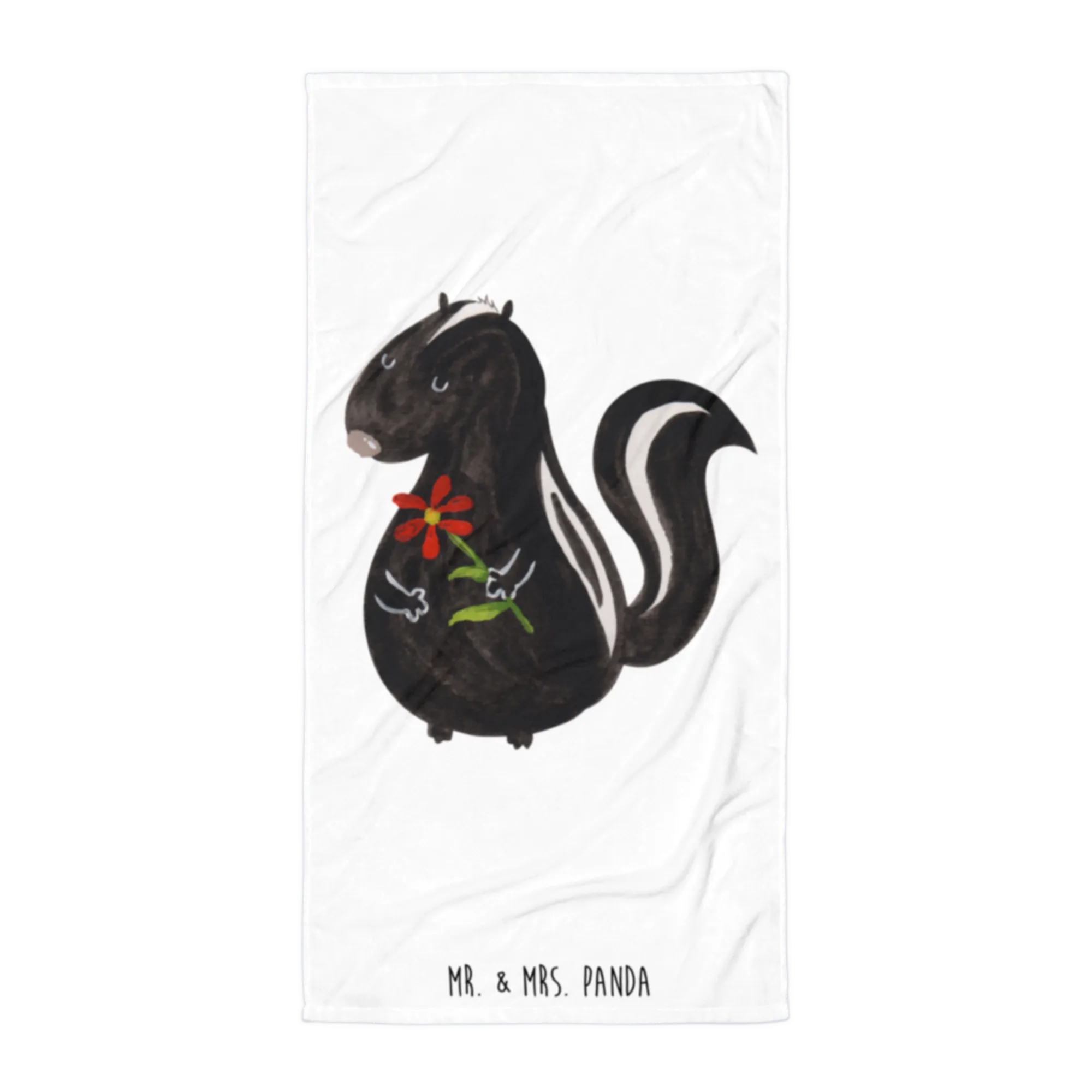 Introducing the XL Bath Towel featuring the adorable Skunk Flower motif from the Skunk - Collection by Mr. & Mrs. Panda! This luxurious oversized towel is not just a soft spot for your post-bath moments but a wonderful reminder of the little joys in life.