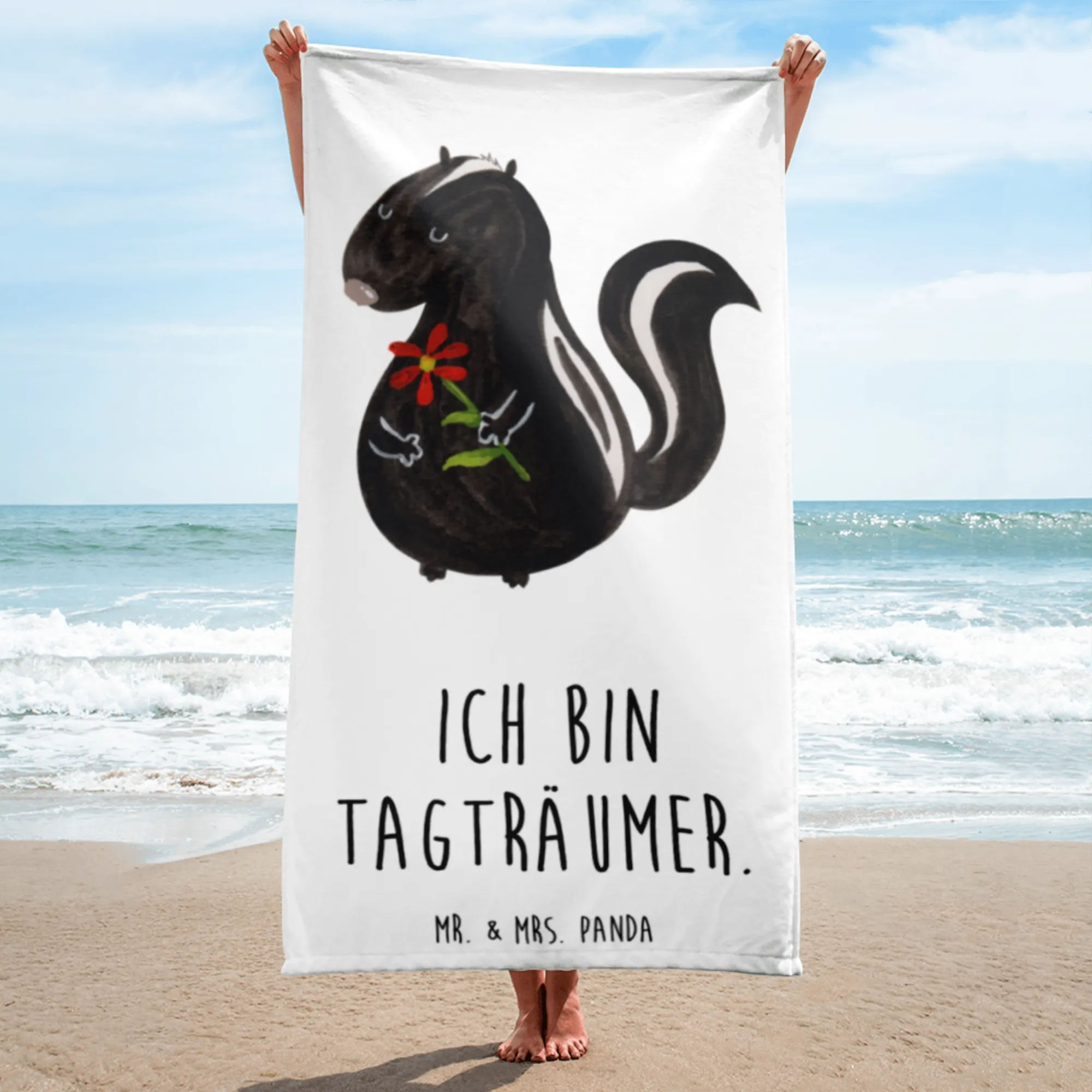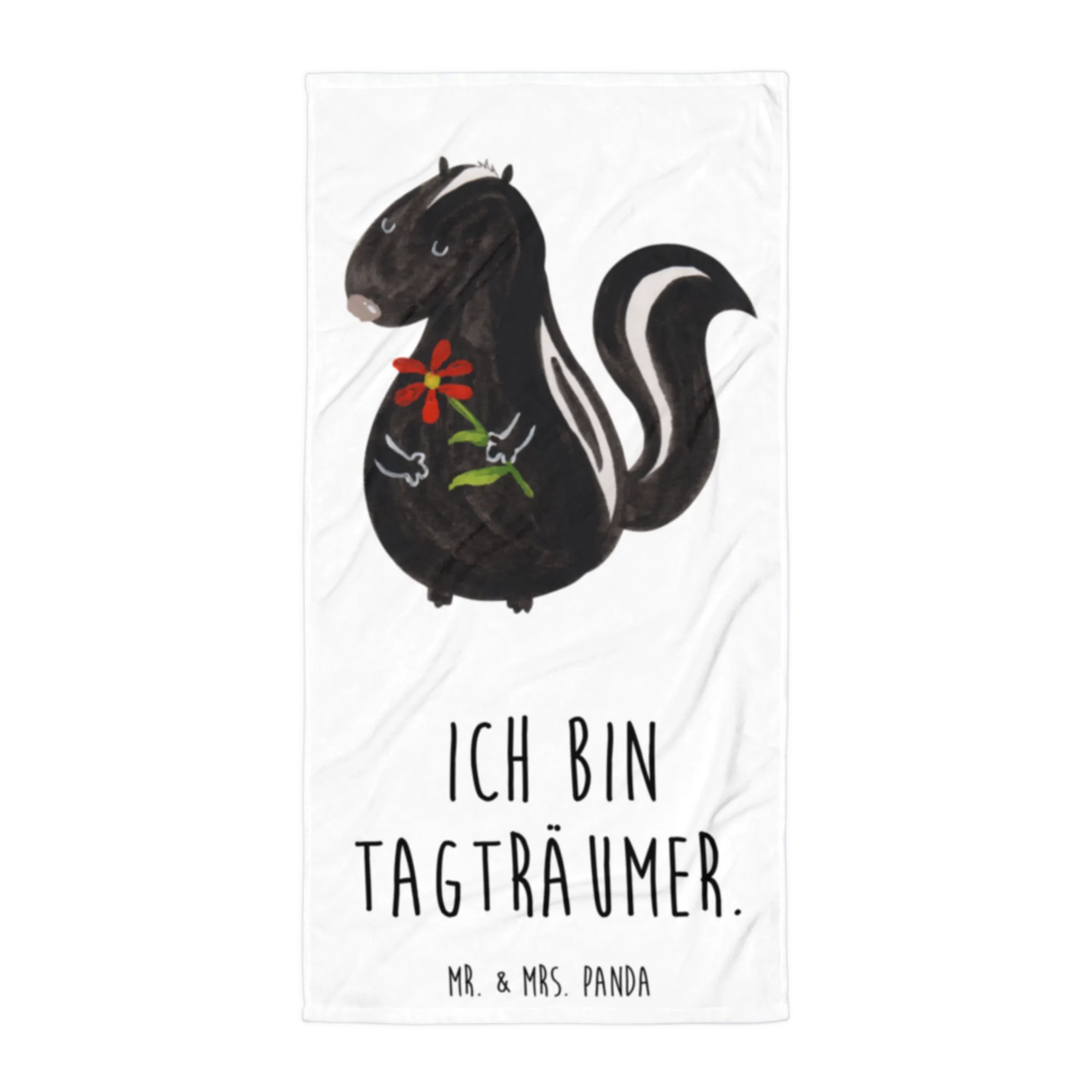 XL bath towel skunk flower - with a saying - White