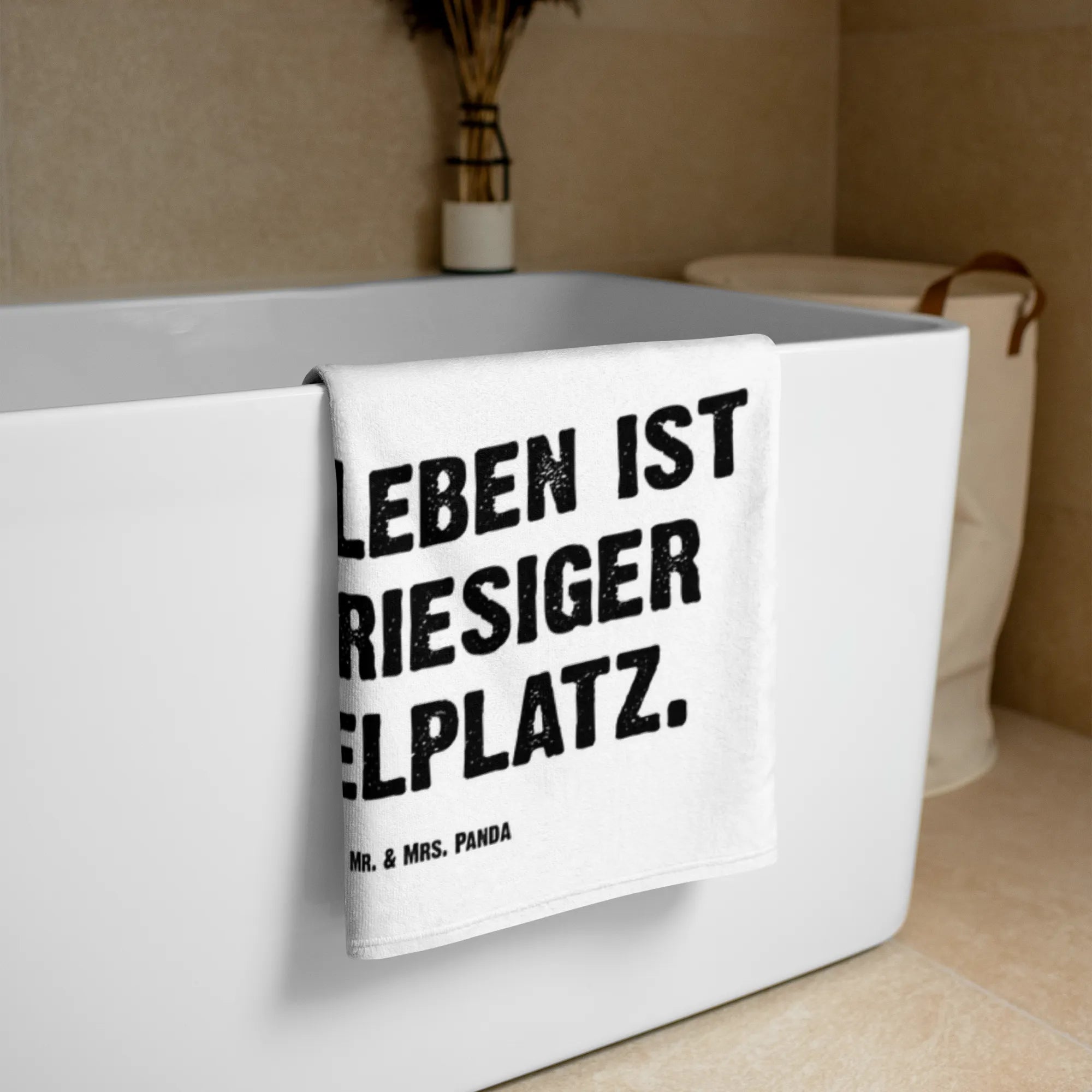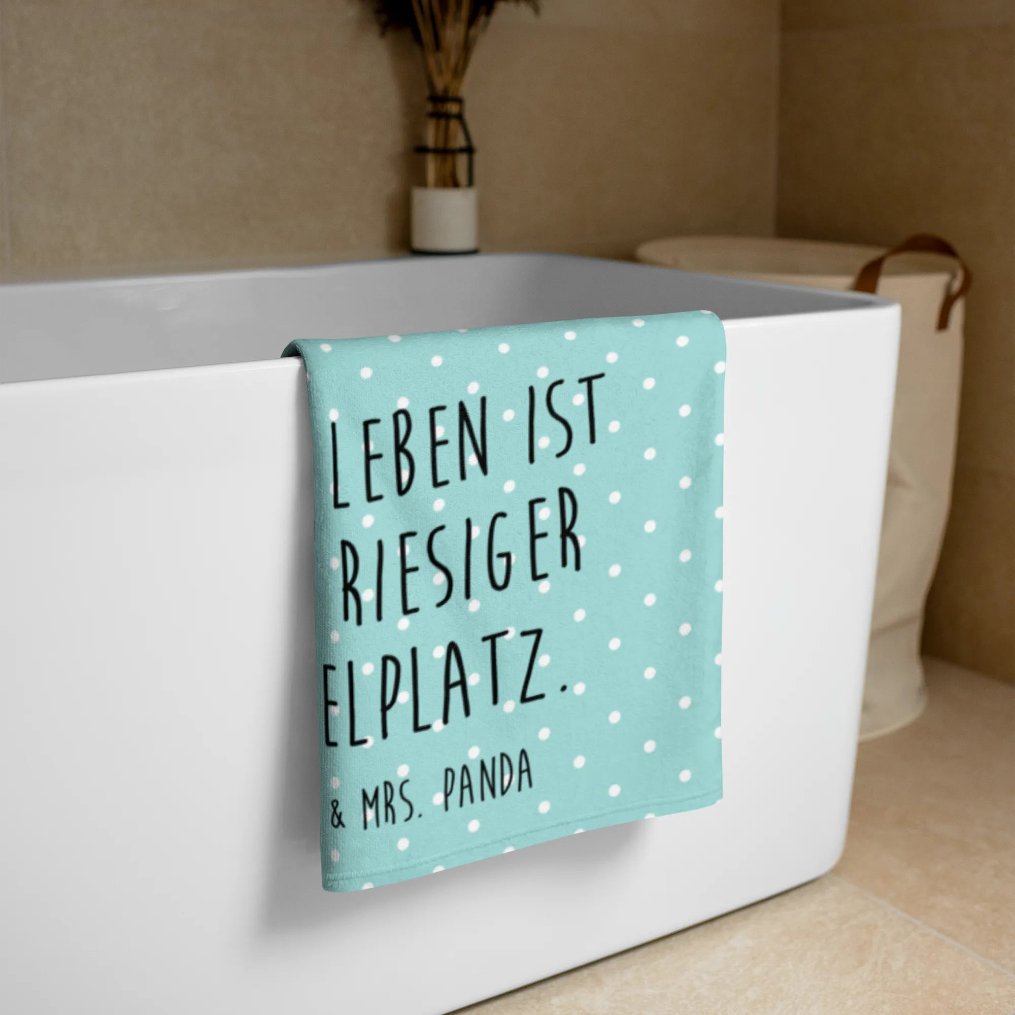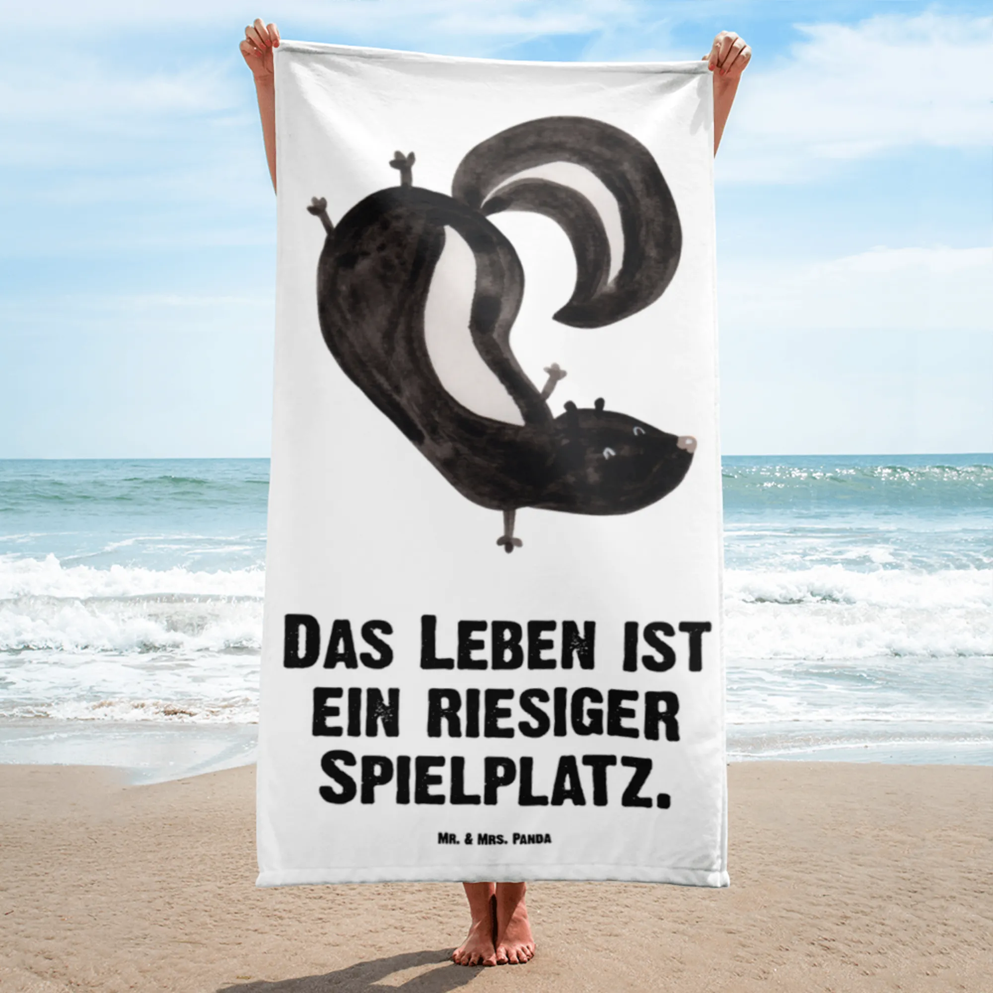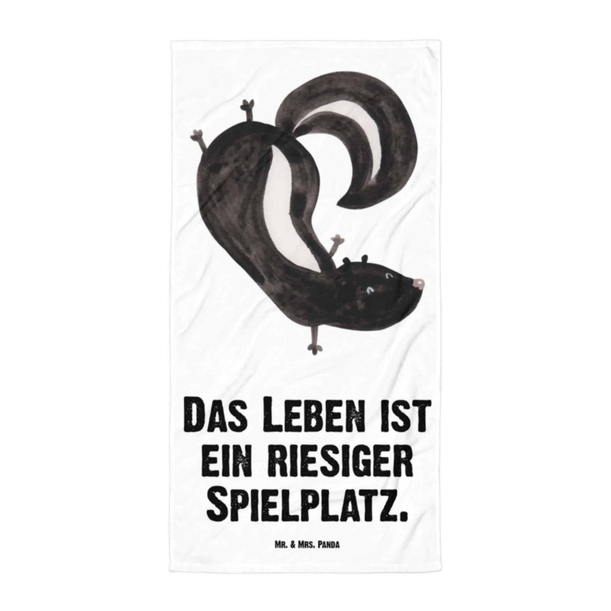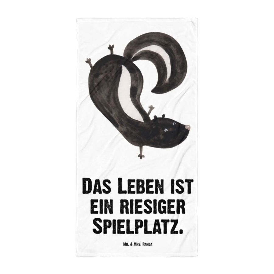 The vibrant colors and artistic detail of the skunk performing a handstand doesn’t just brighten your day; it reminds us all that life is a grand playground, as our cheerful slogan reads: "Das Leben ist ein riesiger Spielplatz". This towel is not just a functional item, but a lovely gift that sparks smiles and conversations, ideal for children and adults alike who appreciate whimsical designs and love wildlife.