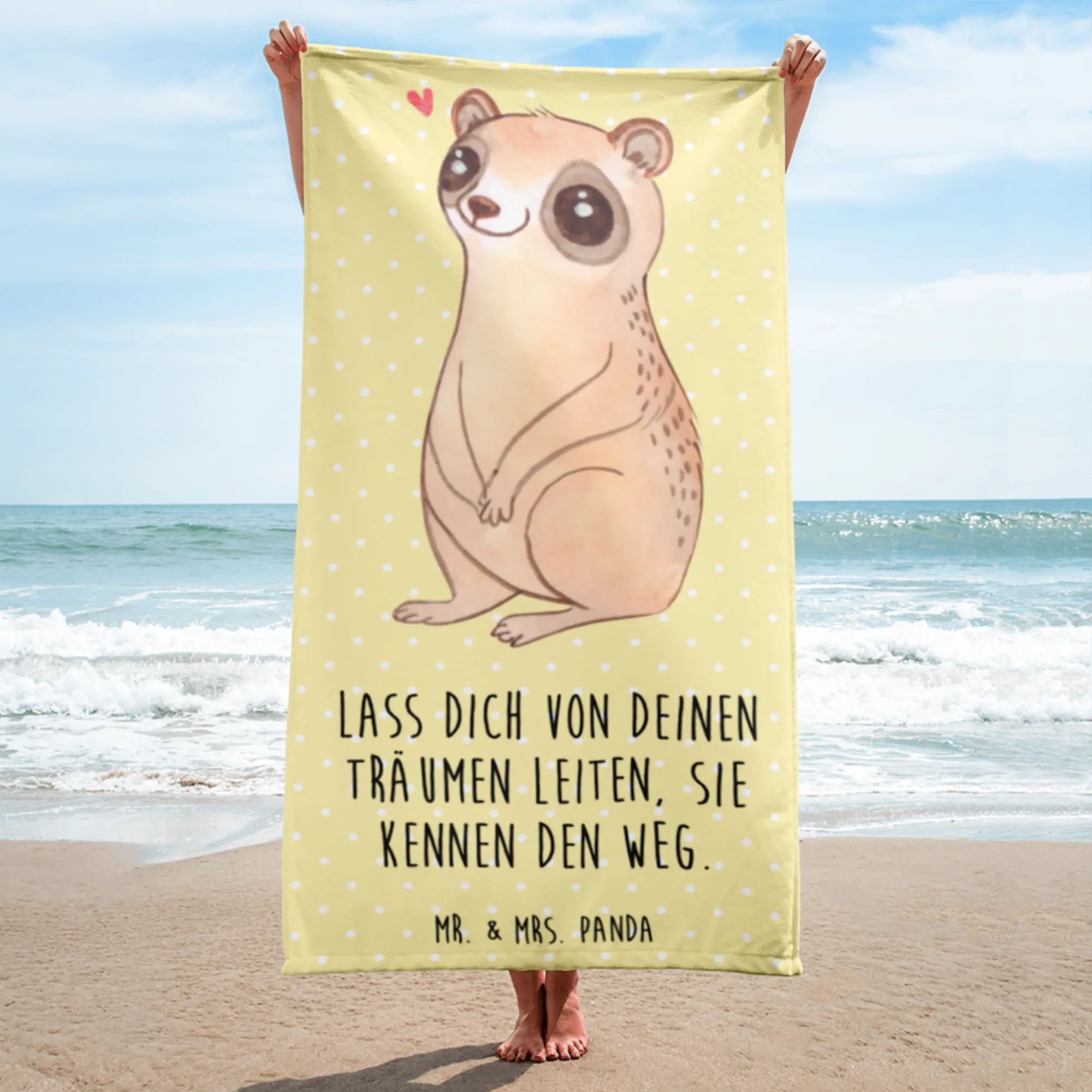 XL bath towel Slow loris Happy - with a saying