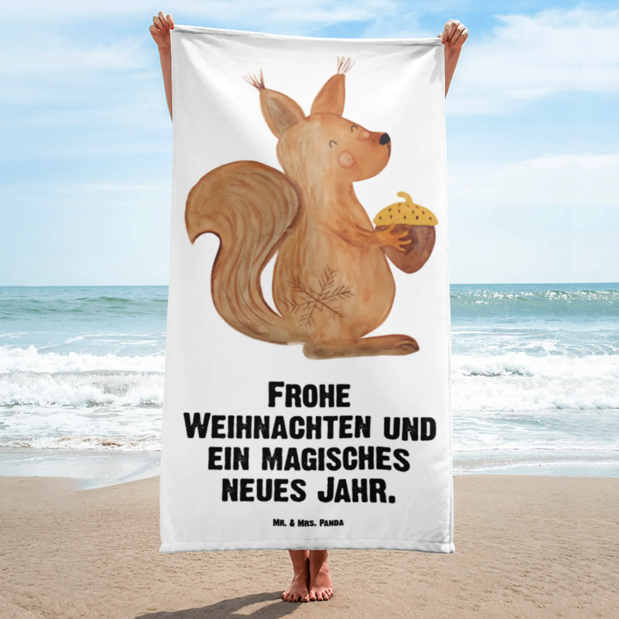 The XL bath towel featuring the delightful "Squirrel Christmas Time" motif from the Winter Collection by Mr. & Mrs. Panda is the perfect gift for so many occasions! If you're thinking about versatile presents this holiday season, look no further.