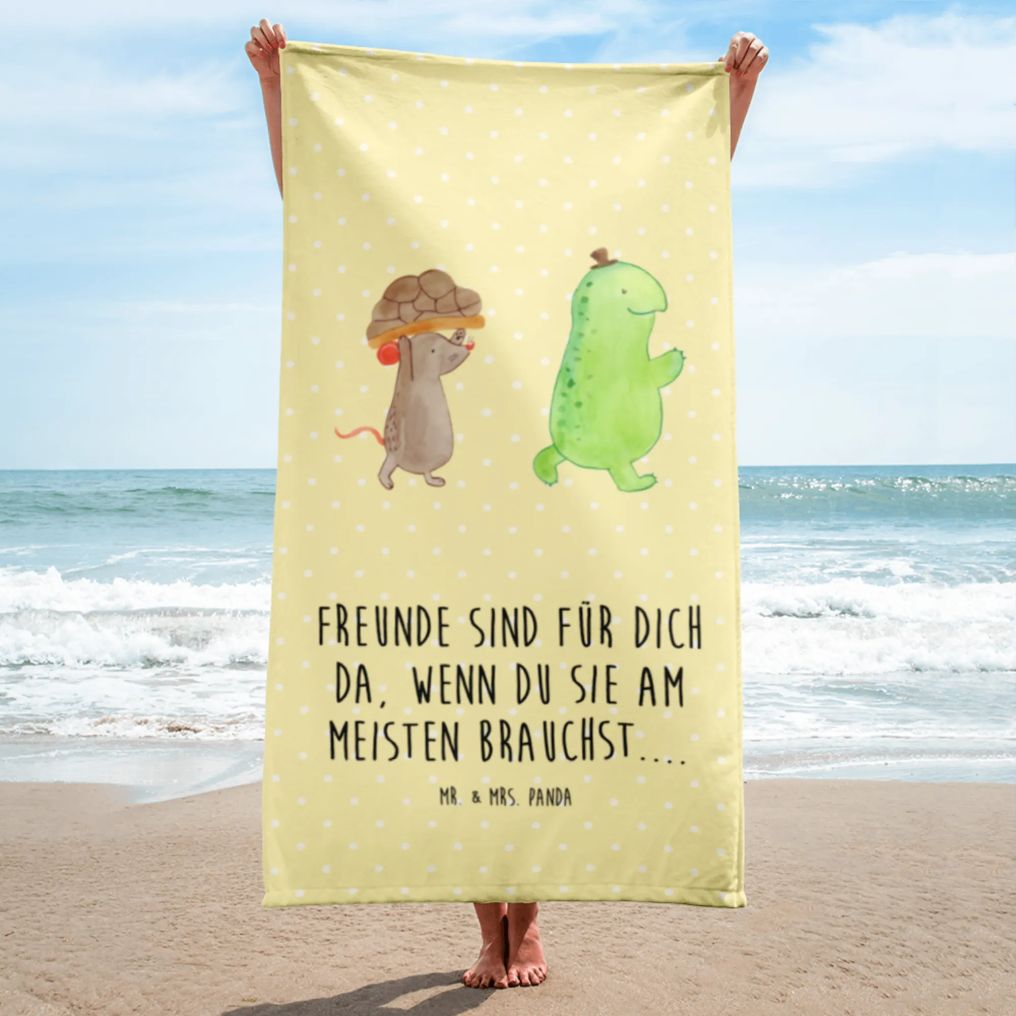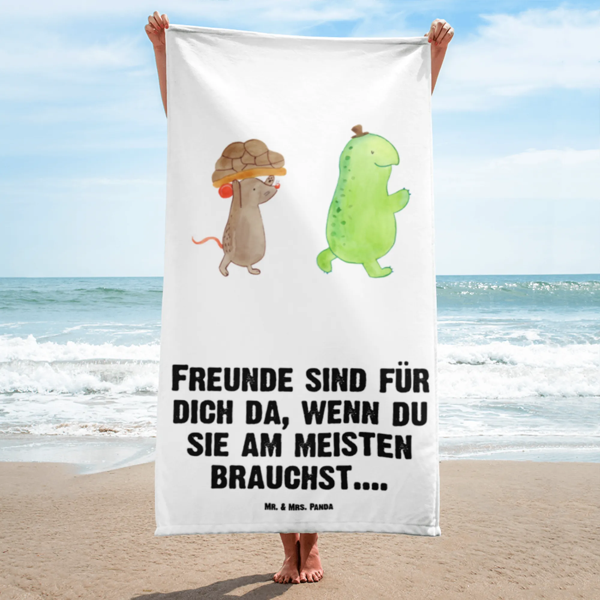 So why not celebrate your friendships or just treat yourself to this beautiful Turtle & Mouse XL bath towel? With its lovely motif, high-quality materials, and the heartwarming message it carries, you're not just buying a towel; you're embracing a piece of happy art designed to bring a smile to anyone who uses it. Dive into fun, friendship, and fabulous comfort with Mr. & Mrs. Panda's Turtle & Mouse towel and let every moment taken on the beach or shared in the bath be cherished forever!