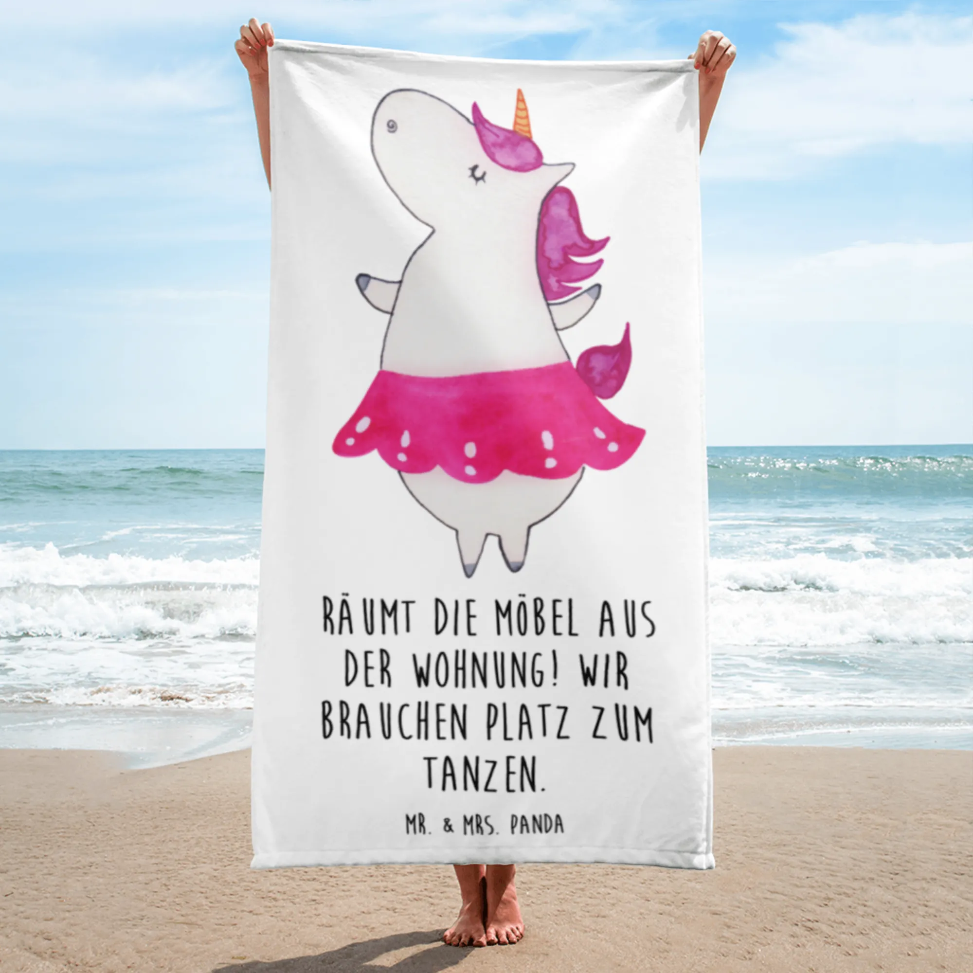 Lass die Möbel zur Seite, denn hier braucht es Platz zum Tanzen! Das süße Einhorn, das in einem Tütü seine Ballettkünste präsentiert, ist ideal, um die kleinen Träumerinnen und Tänzerinnen zum Lächeln zu bringen und sie beim Spielen und Entspannen zu begleiten. Sorge für Lebensfreude und Tanzvergnügen mit diesem einzigartigen Badehandtuch von Mr. & Mrs. Panda. Hol dir jetzt das XL Badehandtuch Einhorn Ballerina und bringe Freude in den Alltag!