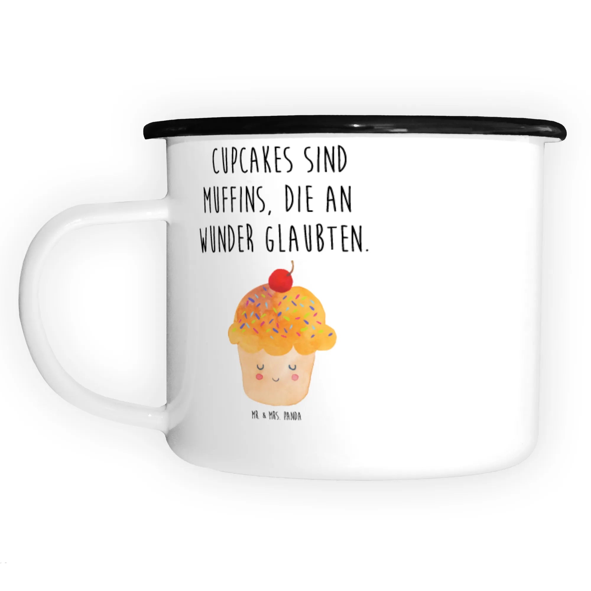 XL enamel cup Cupcake - with saying - White