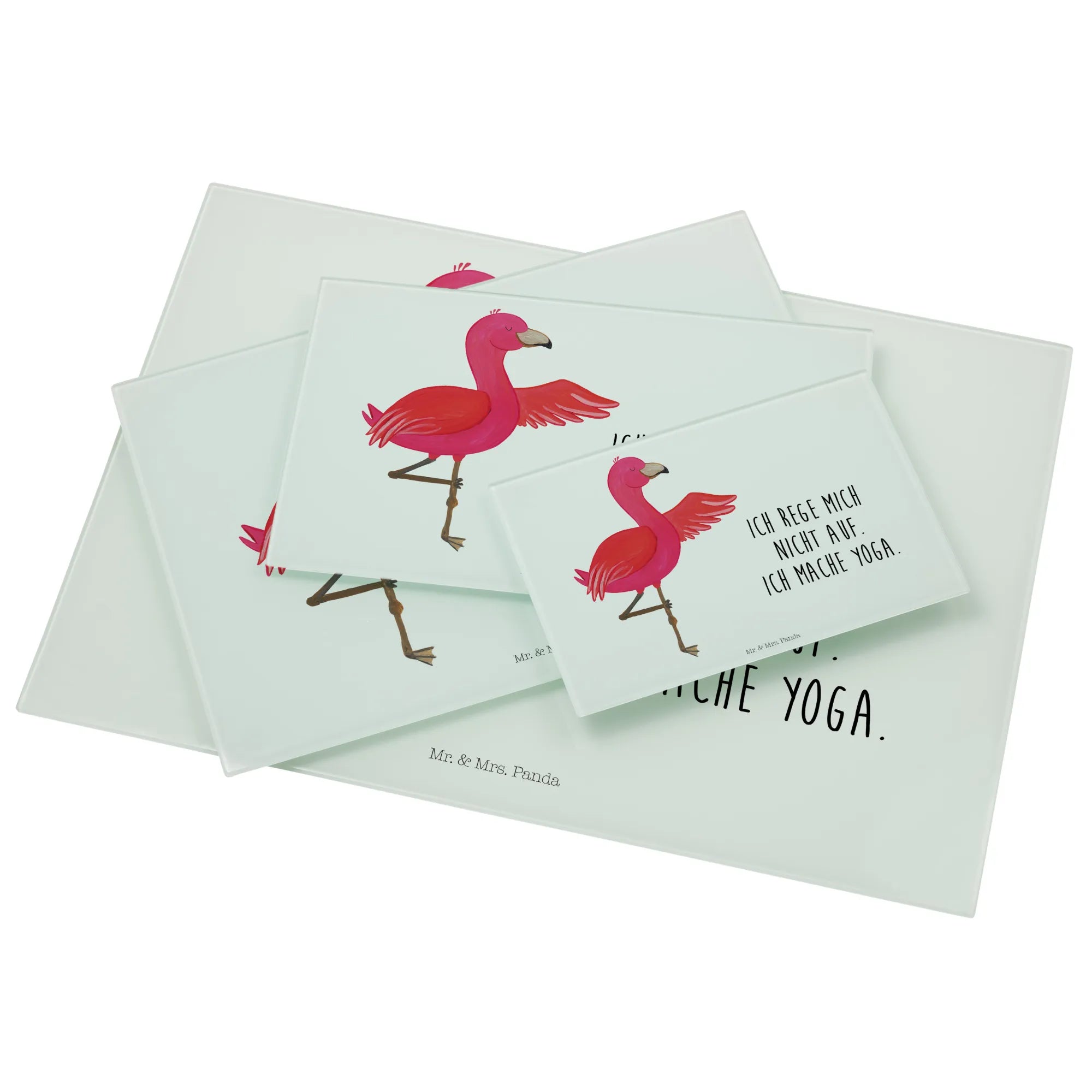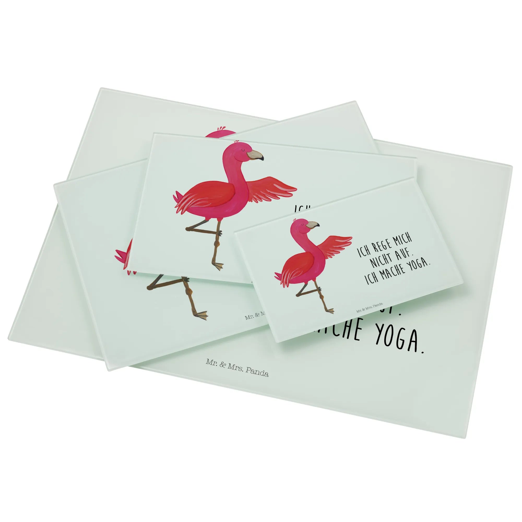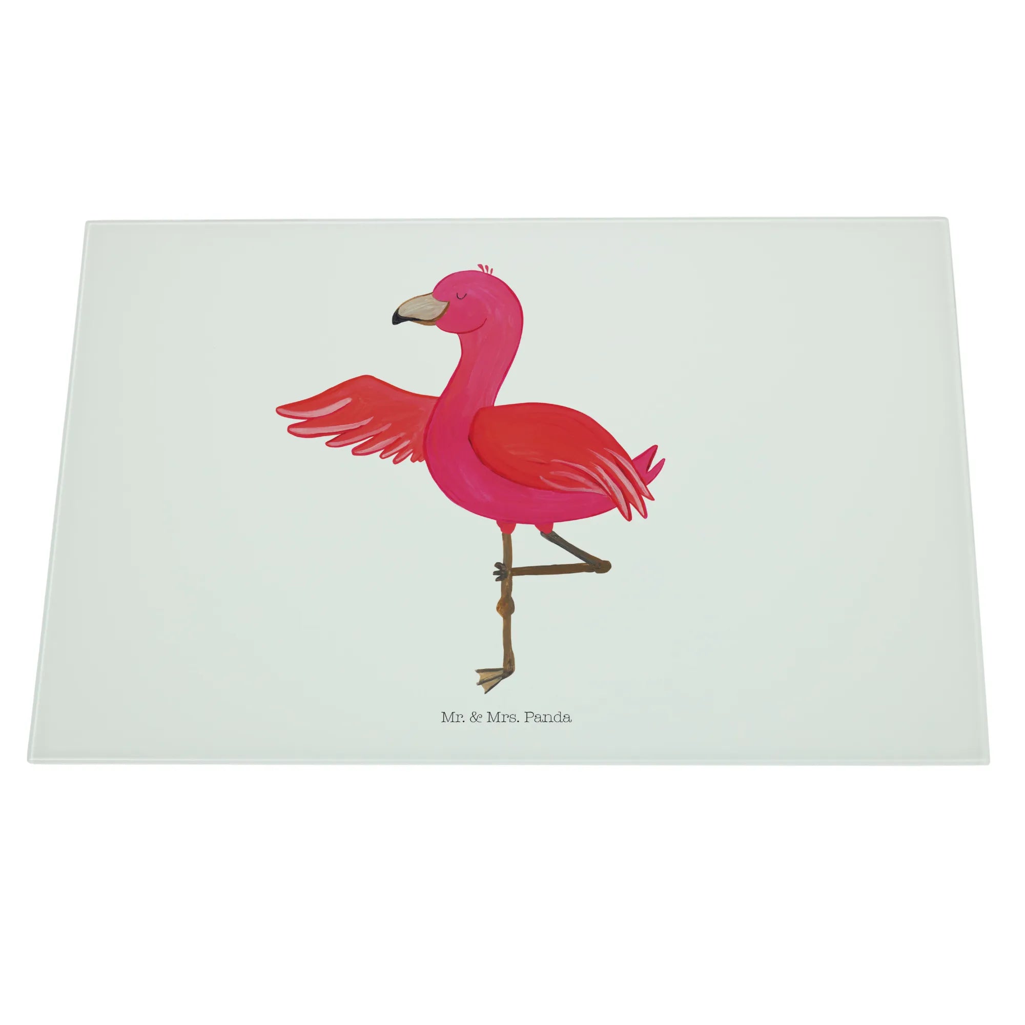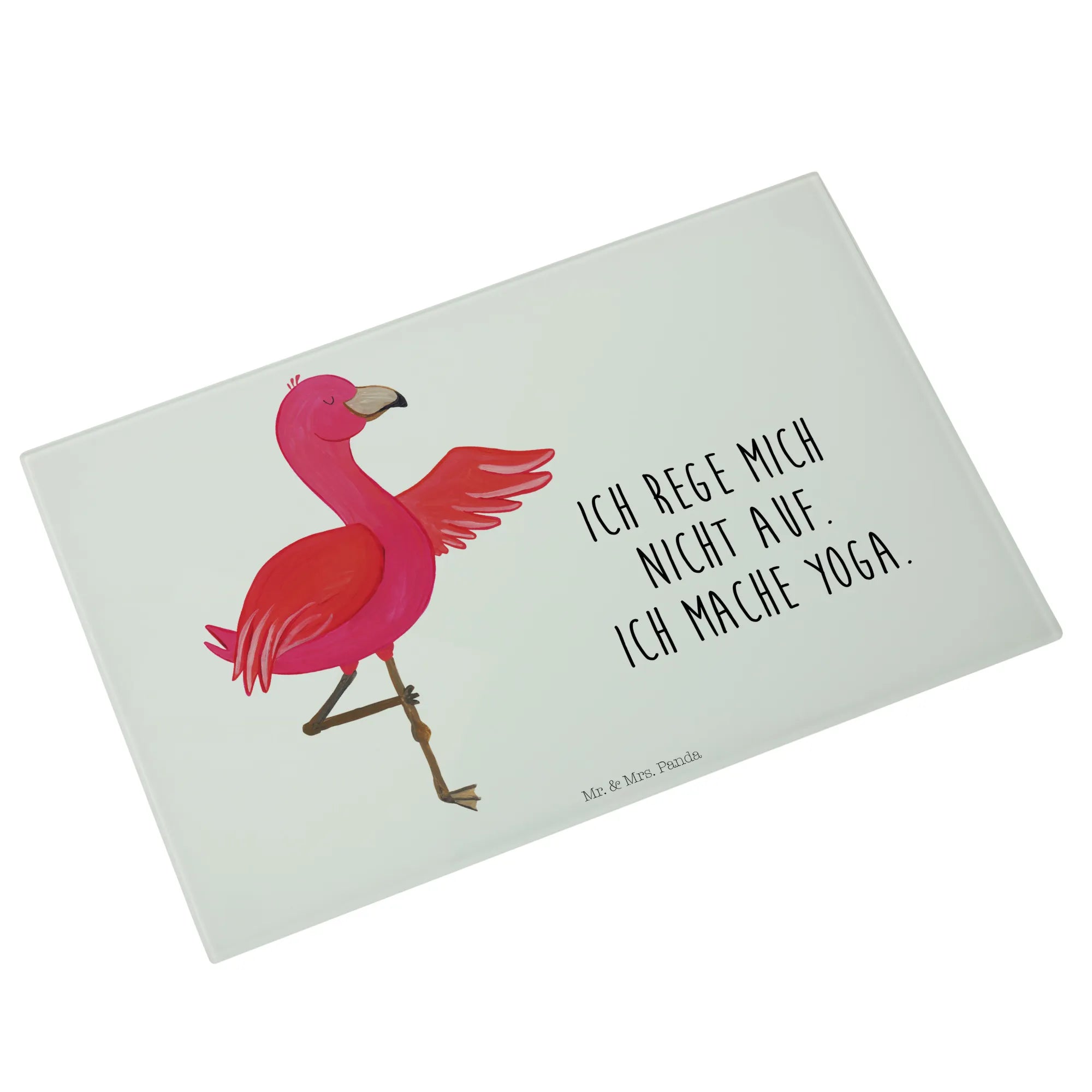 XL glass chopping board flamingo yoga - Medium Glass Cutting Board - with a saying - White
