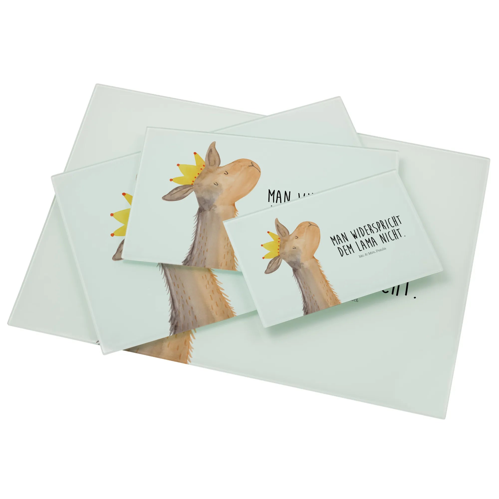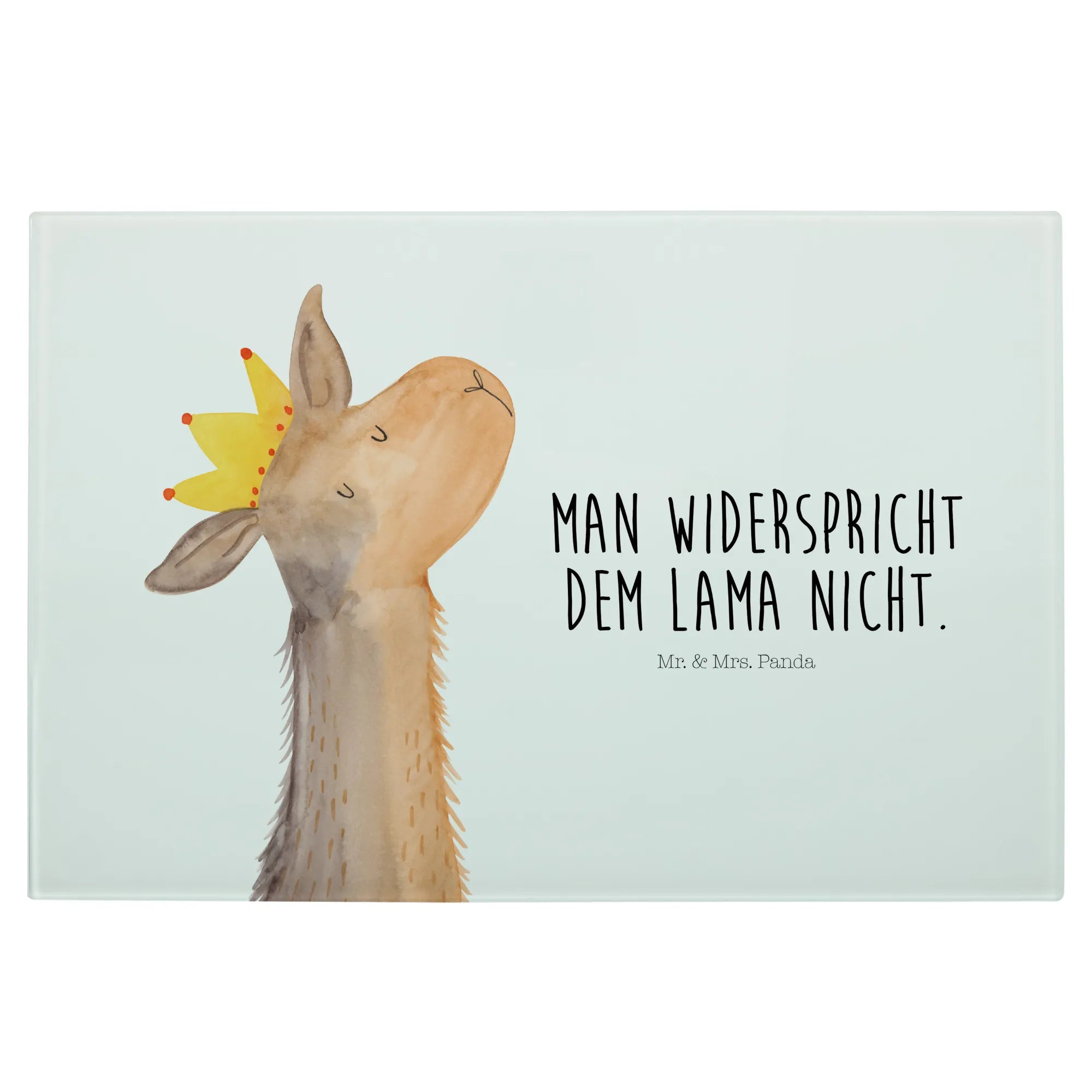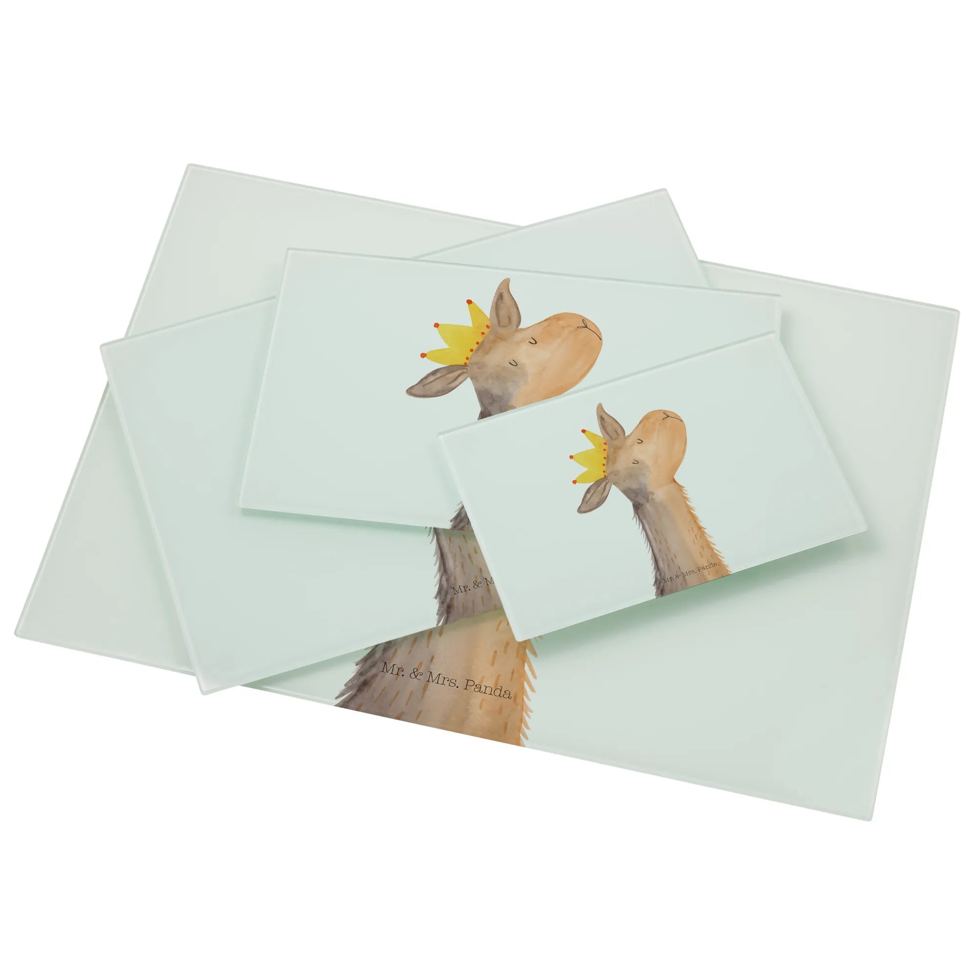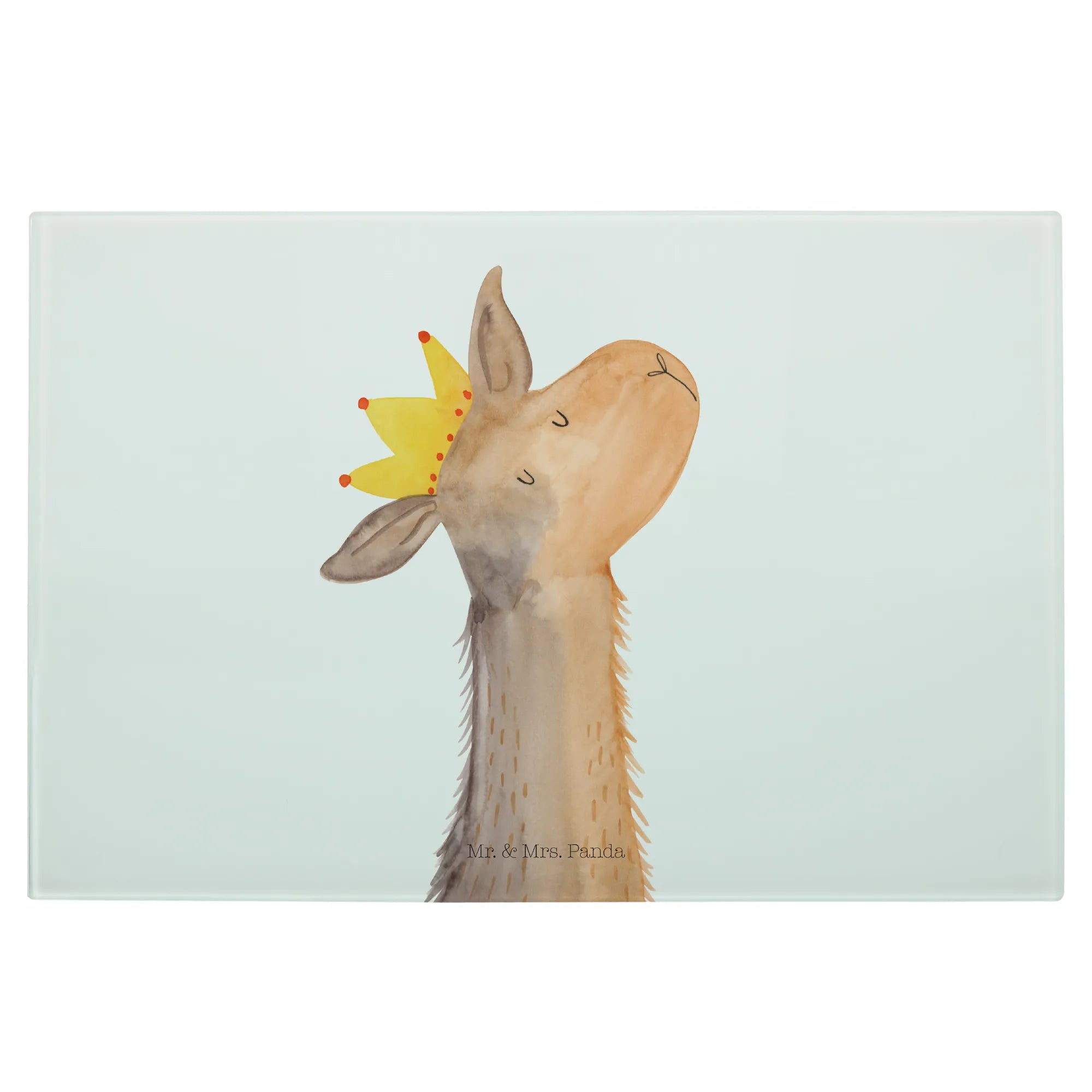 Crafted from durable, scratch-resistant glass, it combines practical use with a chic design that showcases an adorable llama wearing a crown, a symbol of both whimsy and culinary royalty!