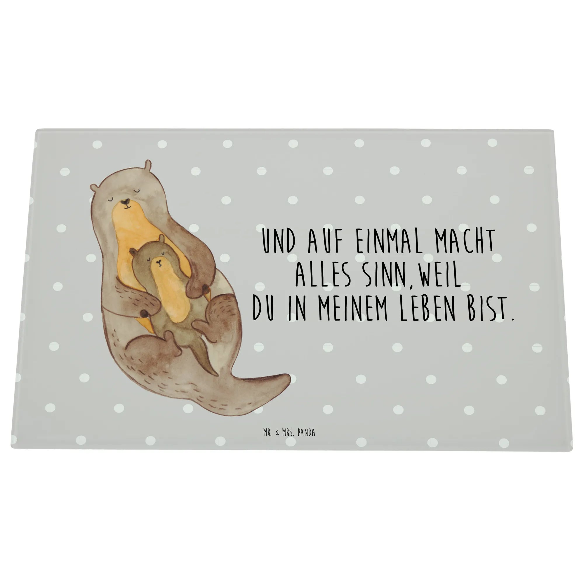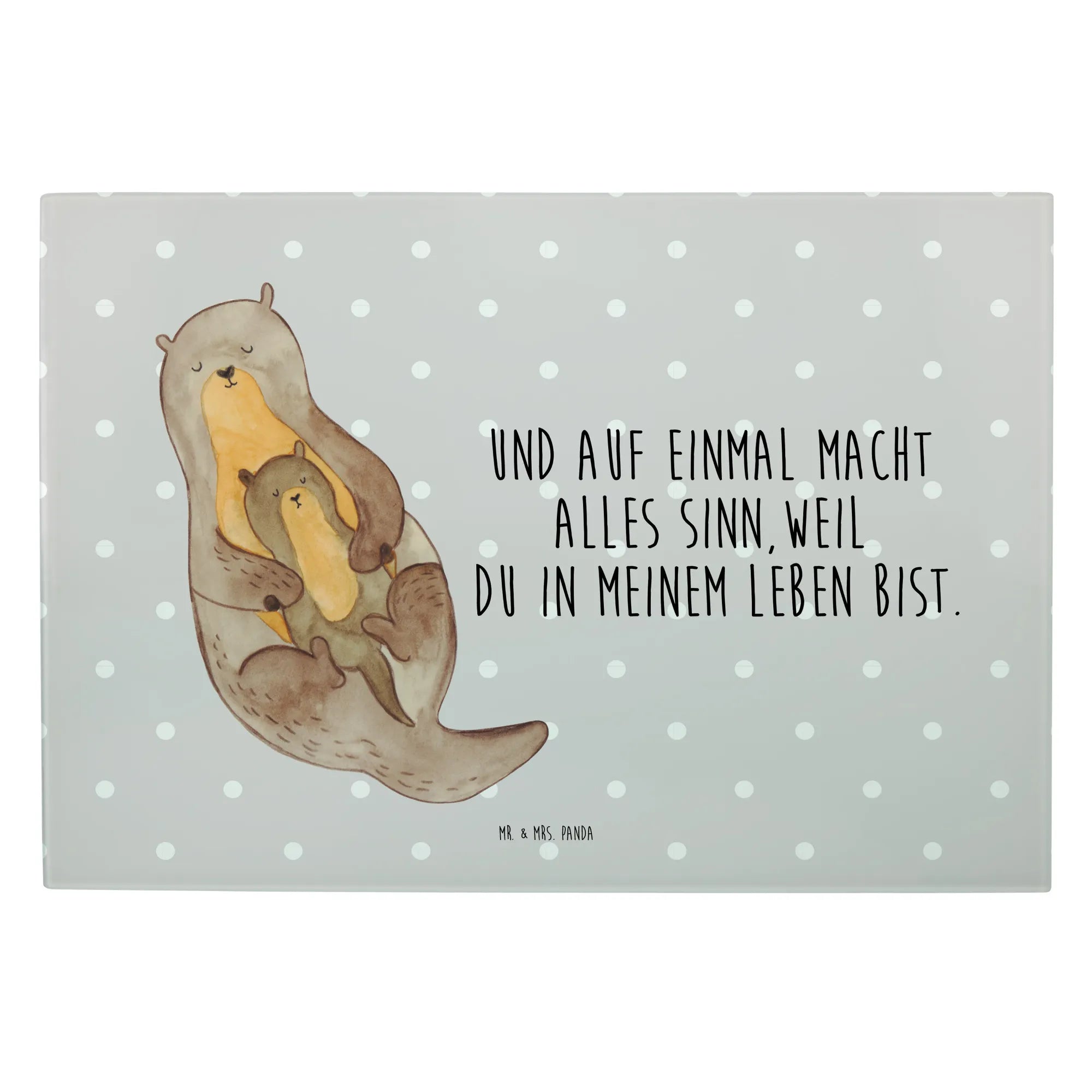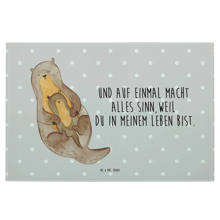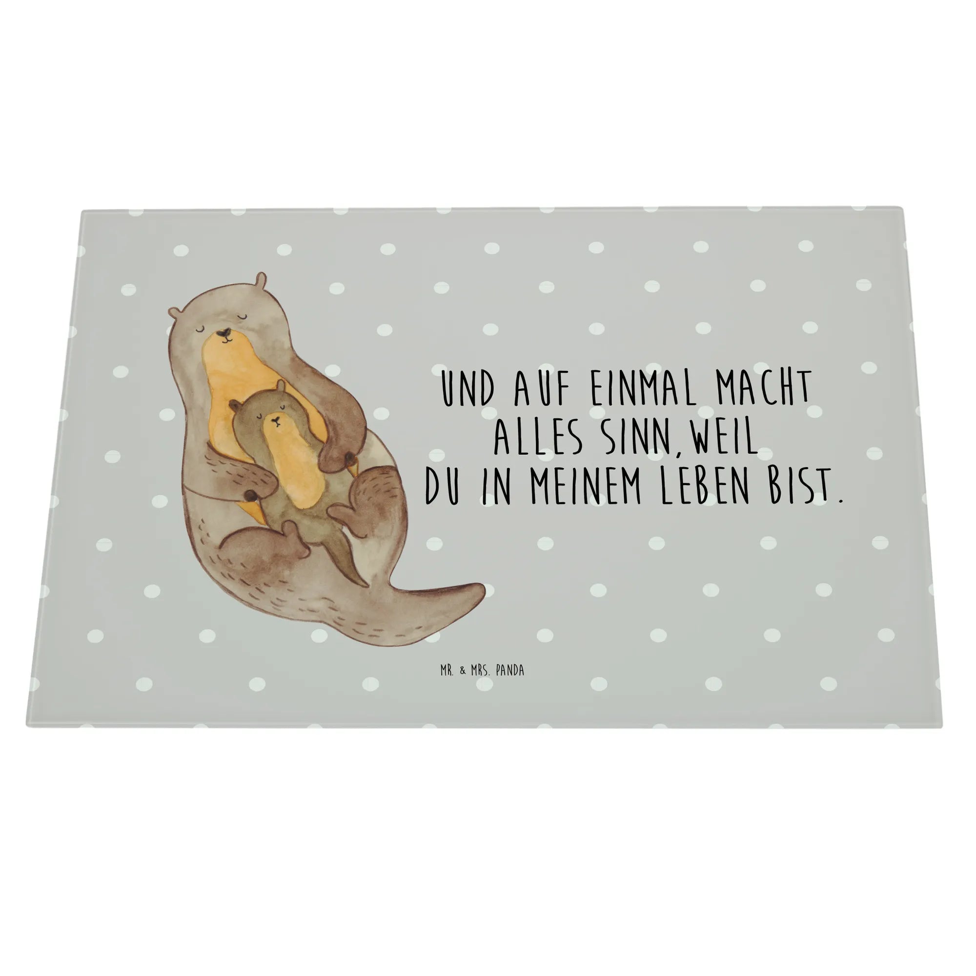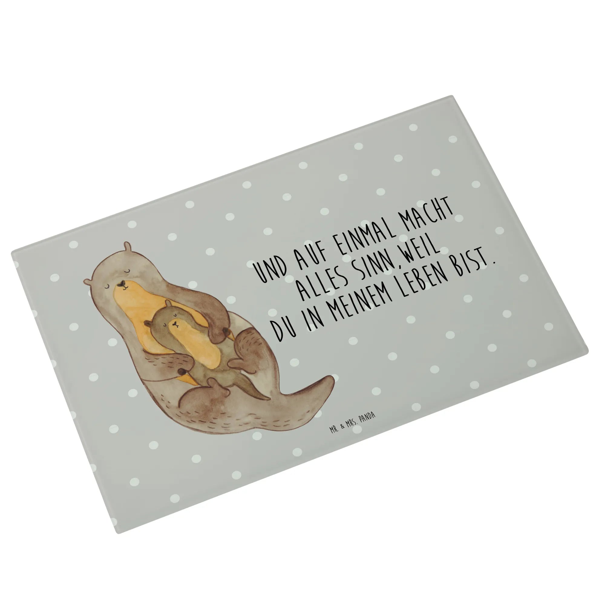 XL glass chopping board otter child - Medium Glass Cutting Board - with saying - Grey Pastel