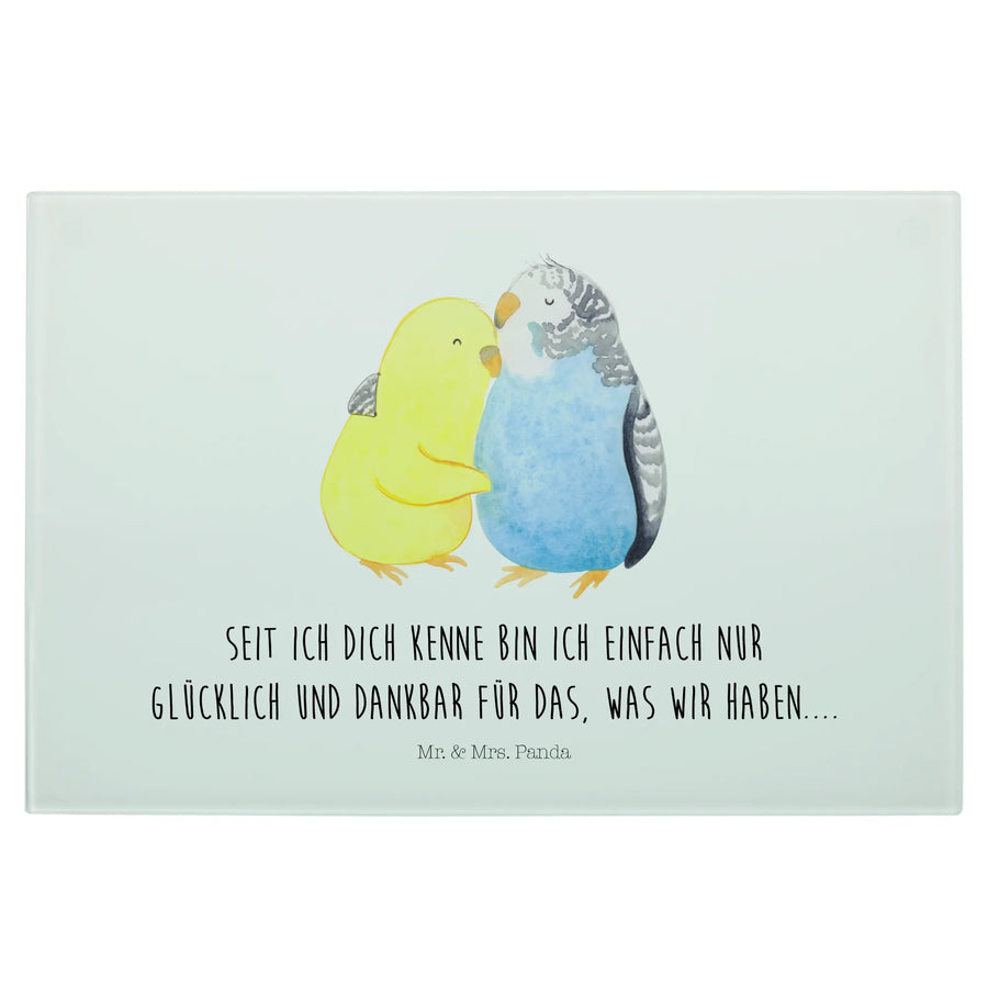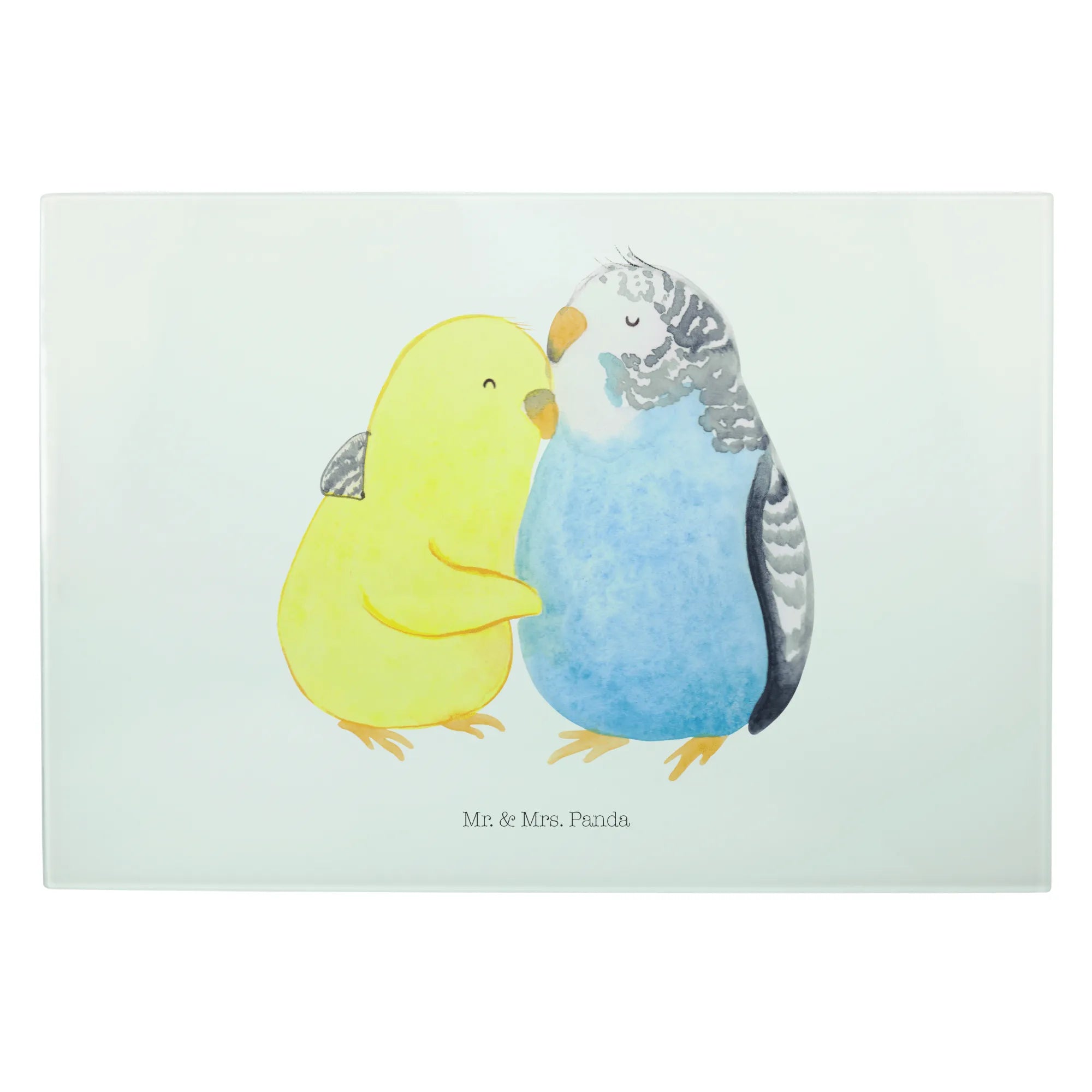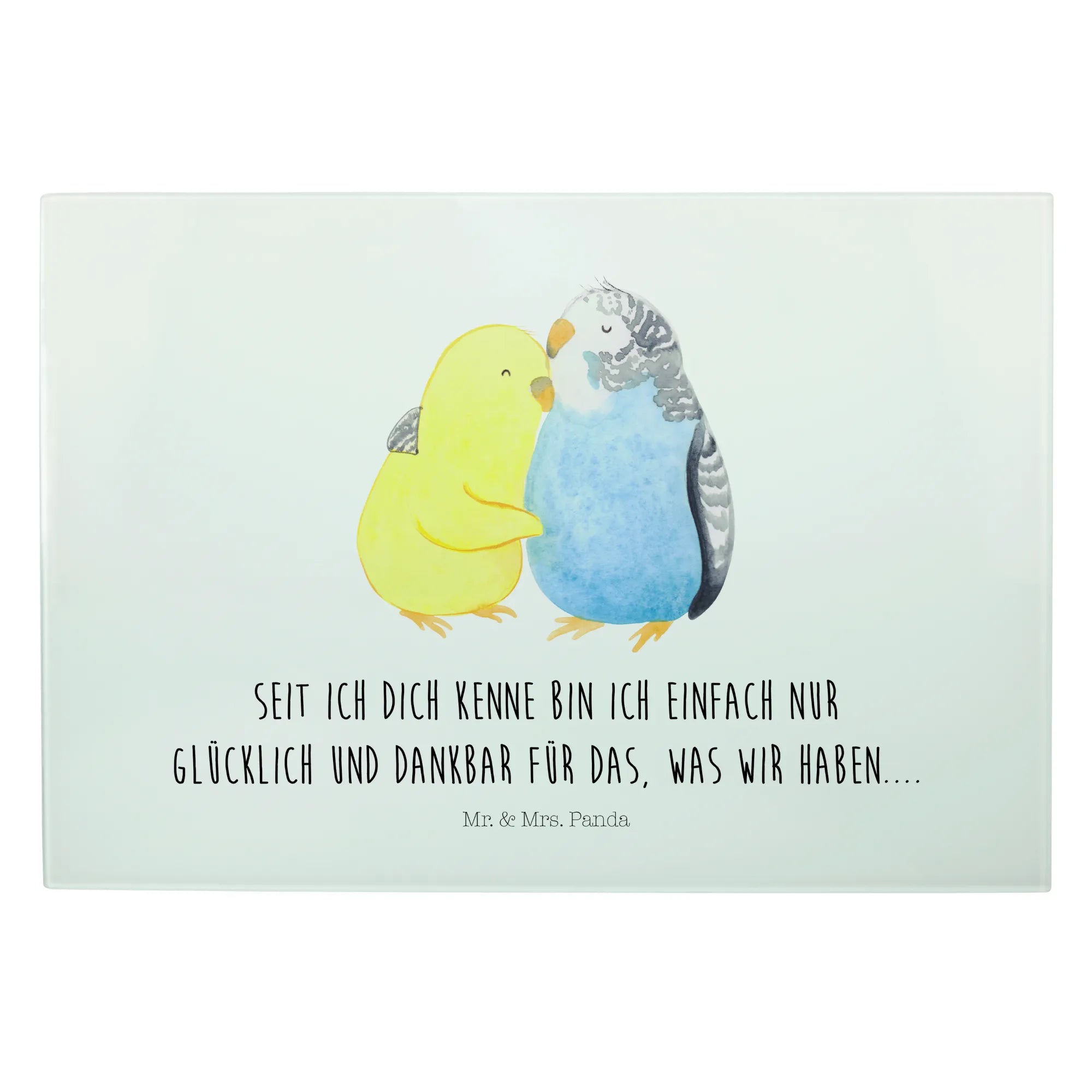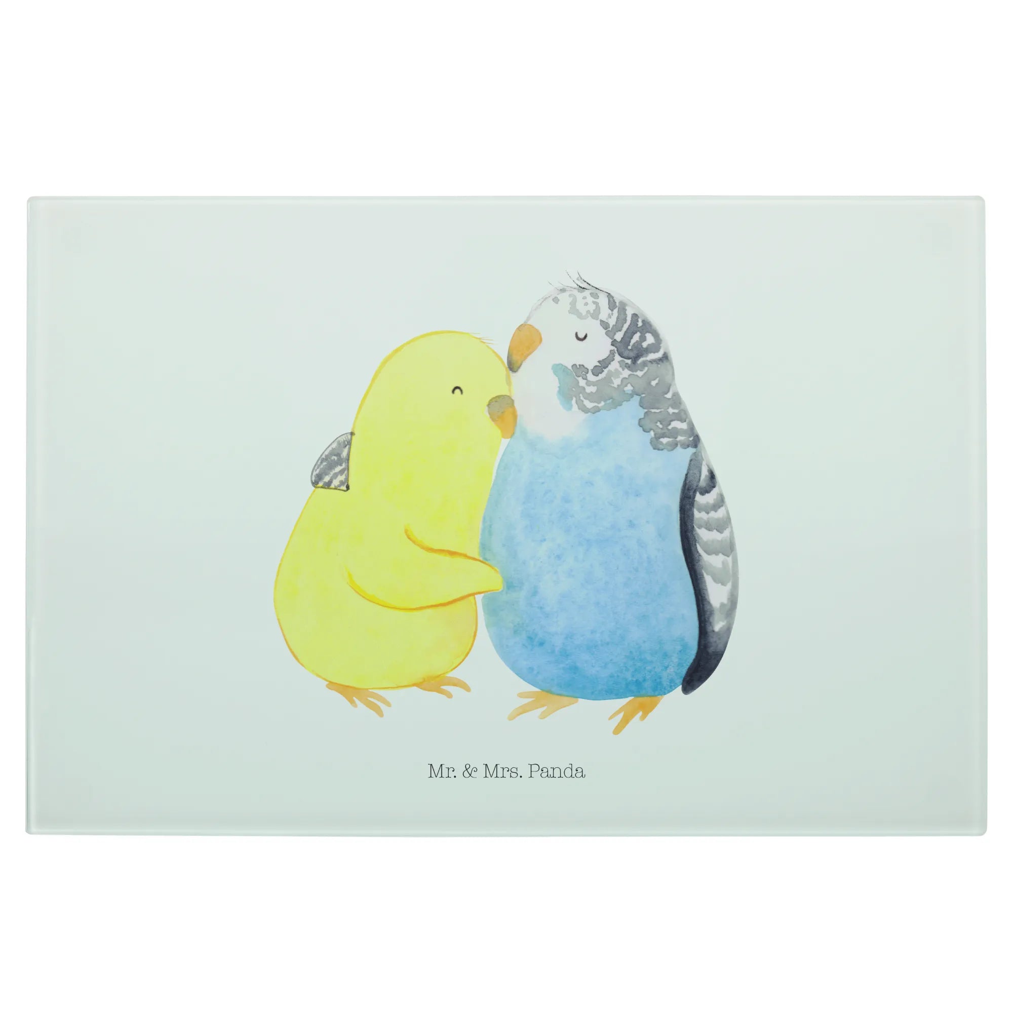Introducing the enchanting XL glass chopping board featuring an adorable motif of "Parakeets in Love" from the beloved Love collection by Mr. & Mrs. Panda! This stunning cutting board is not just any kitchen accessory; it embodies the essence of love and affection, making it a perfect gift for couples, friends, or anyone who cherishes a meaningful bond. Whether it's for a wedding, anniversary, engagement, or simply to express how much you care, this beautifully designed glass board will surely bring a smile to their faces.