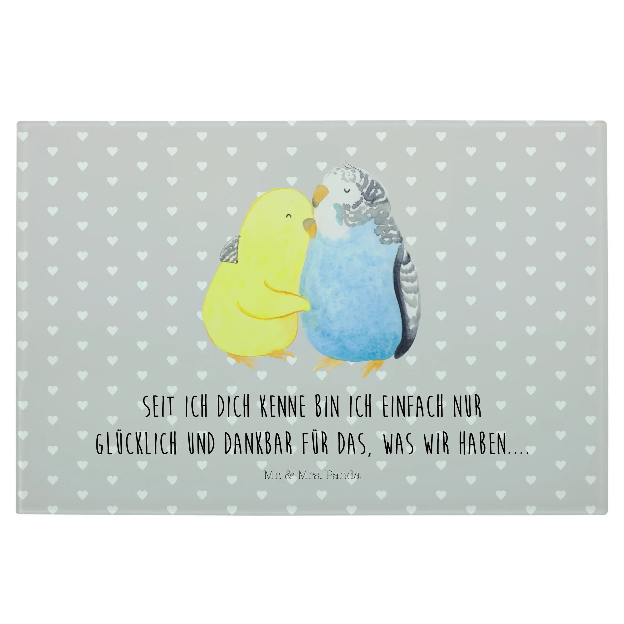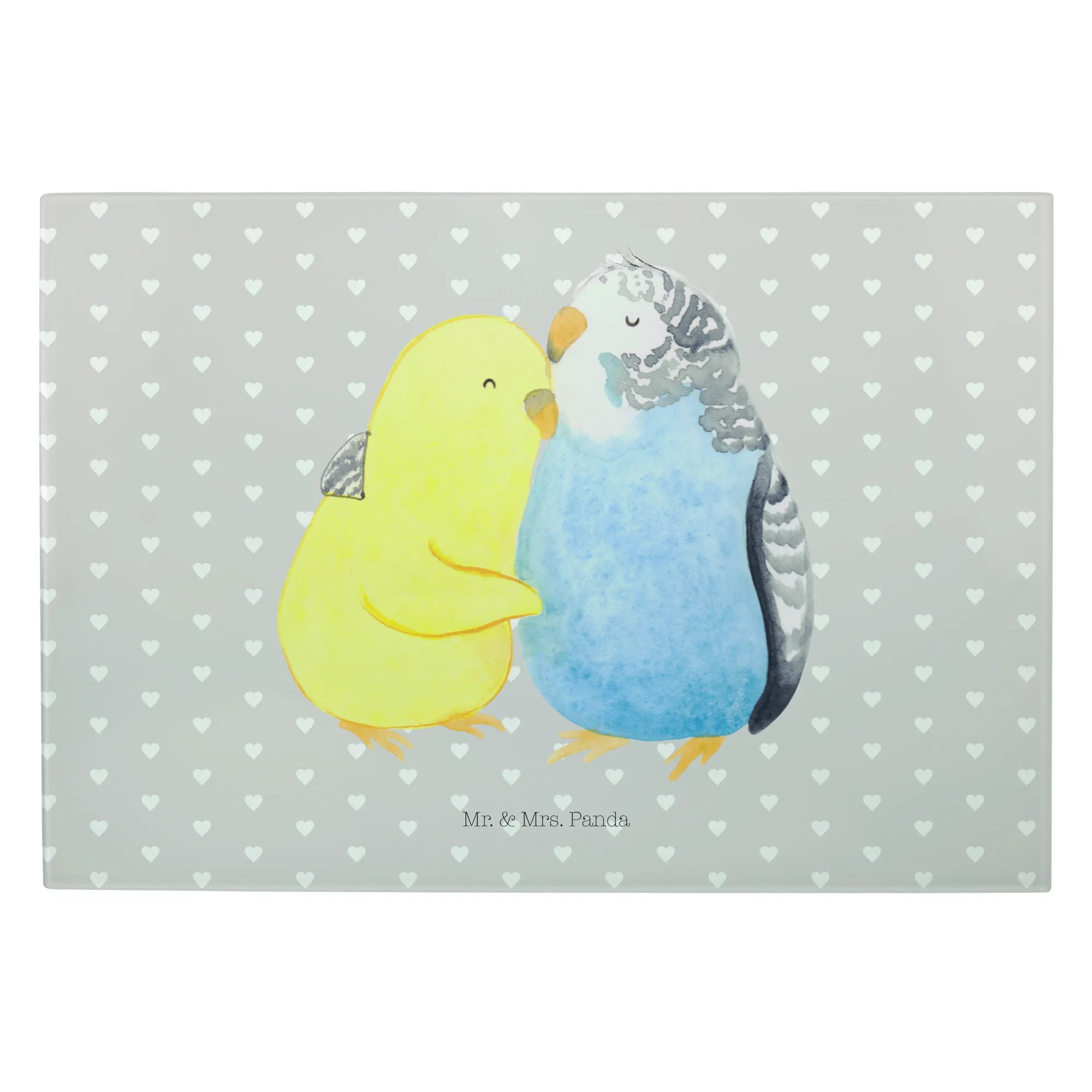 Looking for the perfect gift that warms the heart? Look no further than the stunning Glass Cutting Board featuring our adorable motif of "Parakeets in Love" from the charming Love Collection by Mr. & Mrs. Panda!