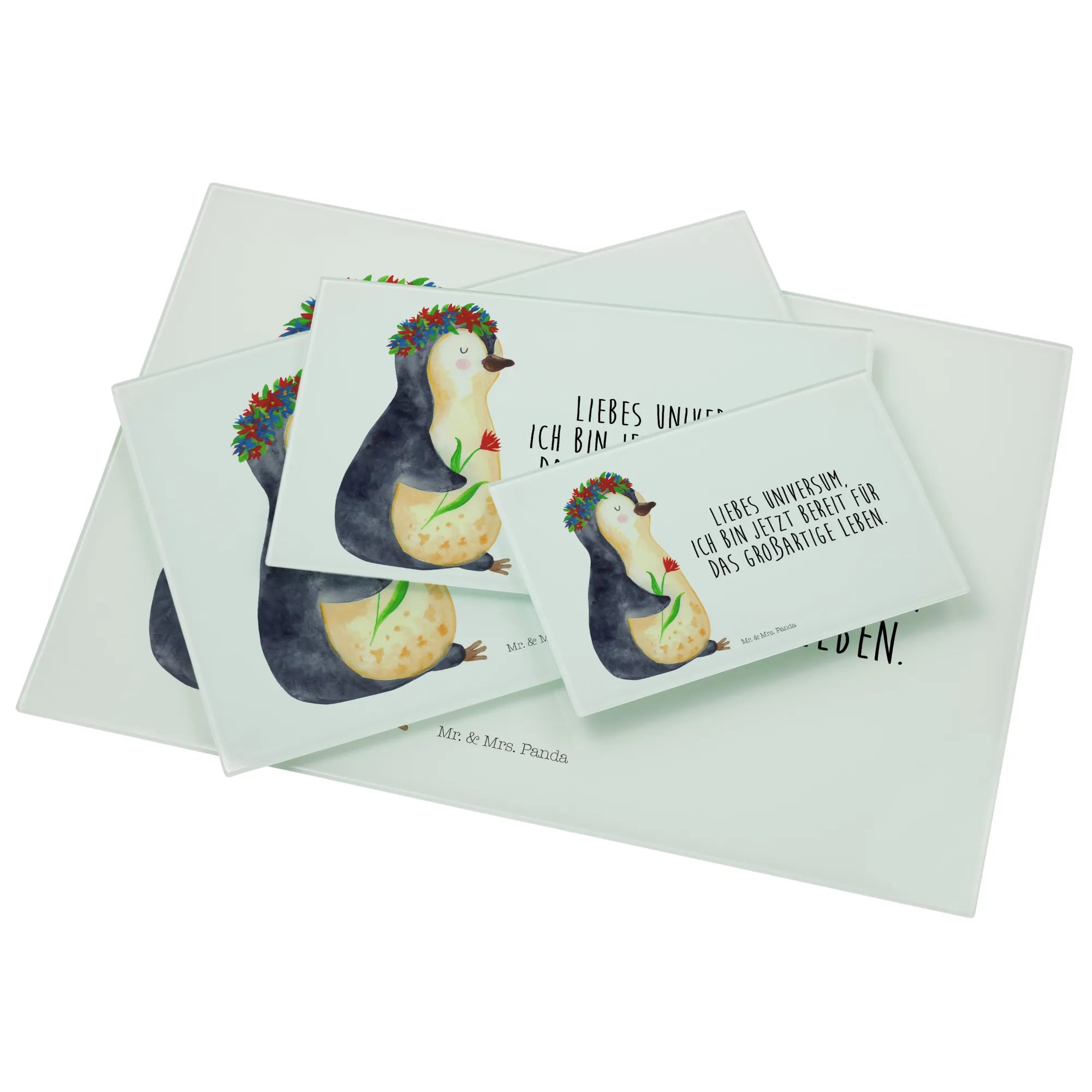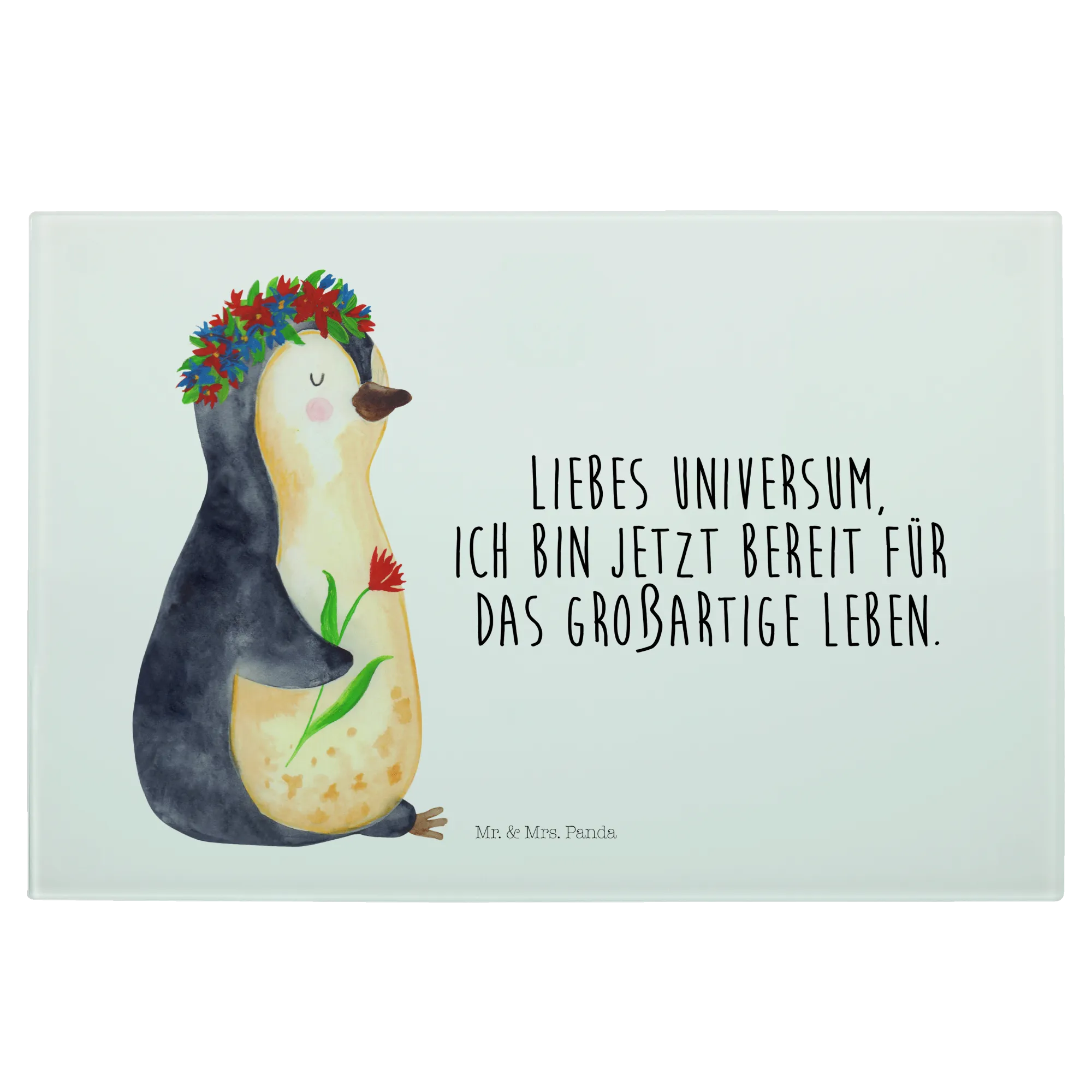 Looking for the perfect gift for a penguin lover or a friend who needs a little motivation? Our XL glass chopping board featuring the delightful Penguin flowerwreath design from the Mr. & Mrs. Panda Penguin Collection makes an absolutely charming present! With its adorable illustration of a sweet penguin adorned with a crown of flowers, this cutting board brings a touch of cheer to any kitchen.