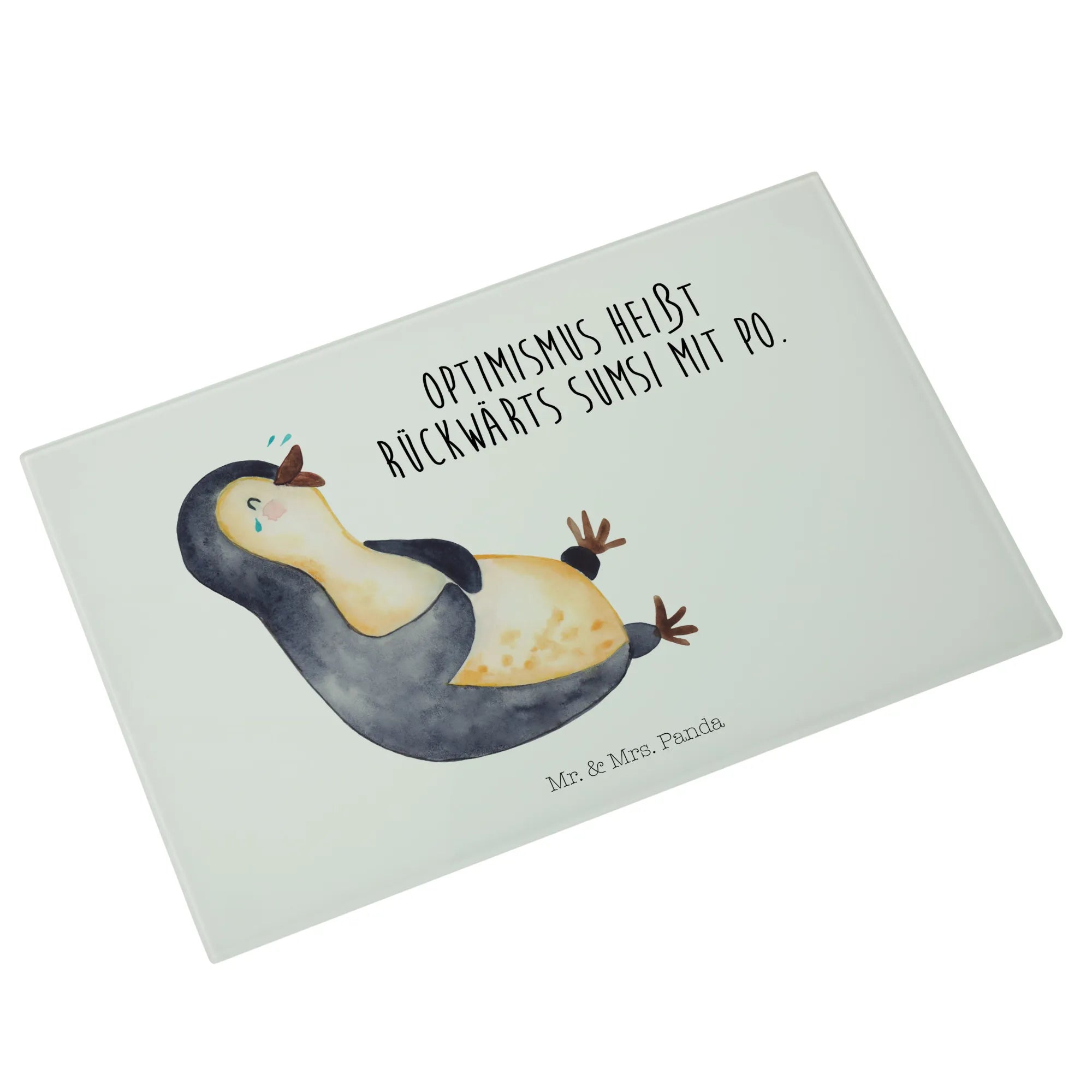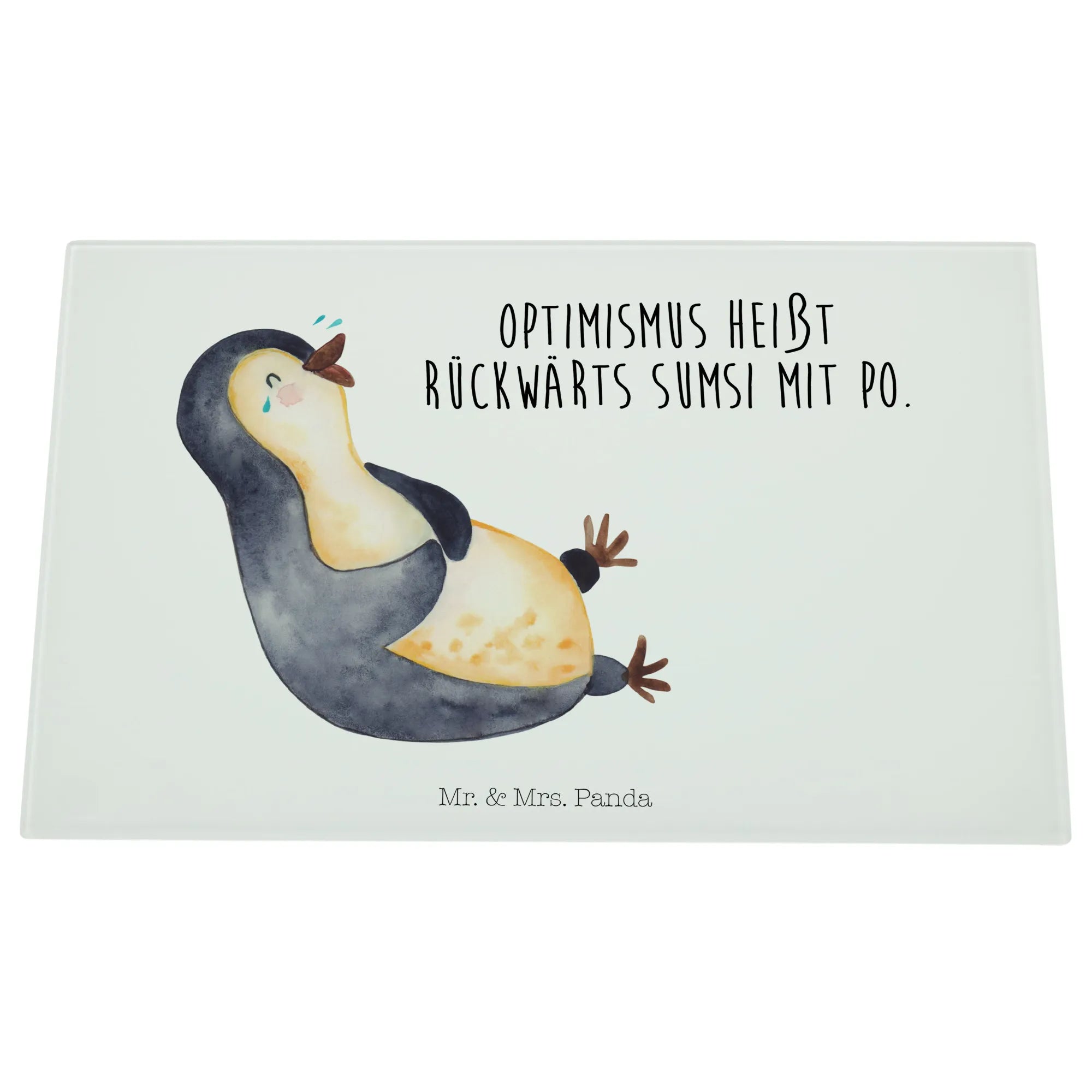 XL glass chopping board Penguin Laugh - Medium Glass Cutting Board - with a saying - White