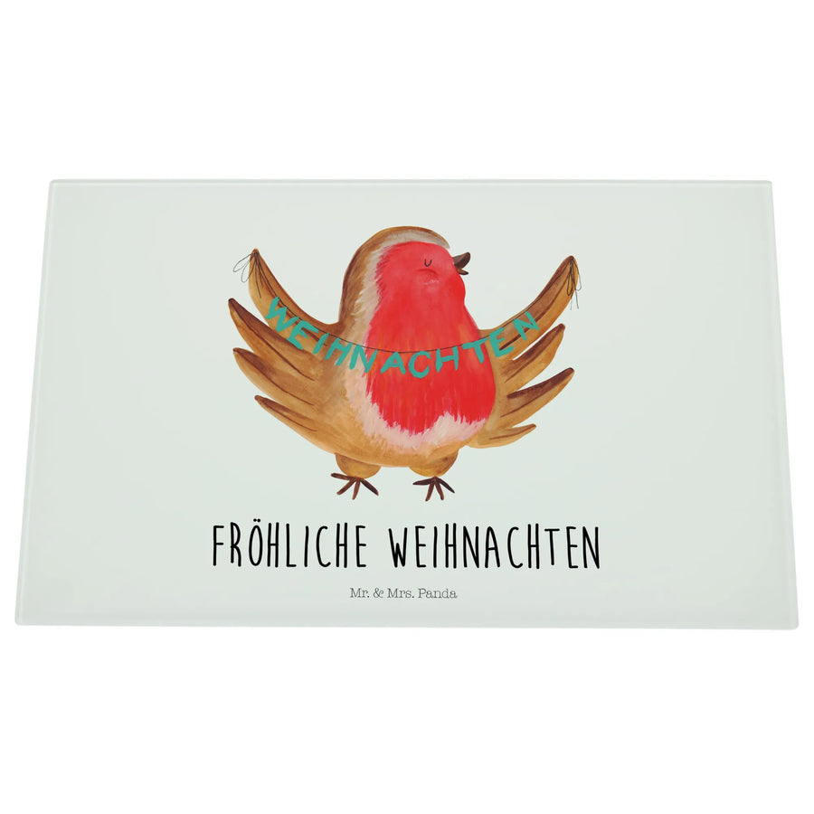 XL glass chopping board robin Christmas - Medium Glass Cutting Board - with saying - White