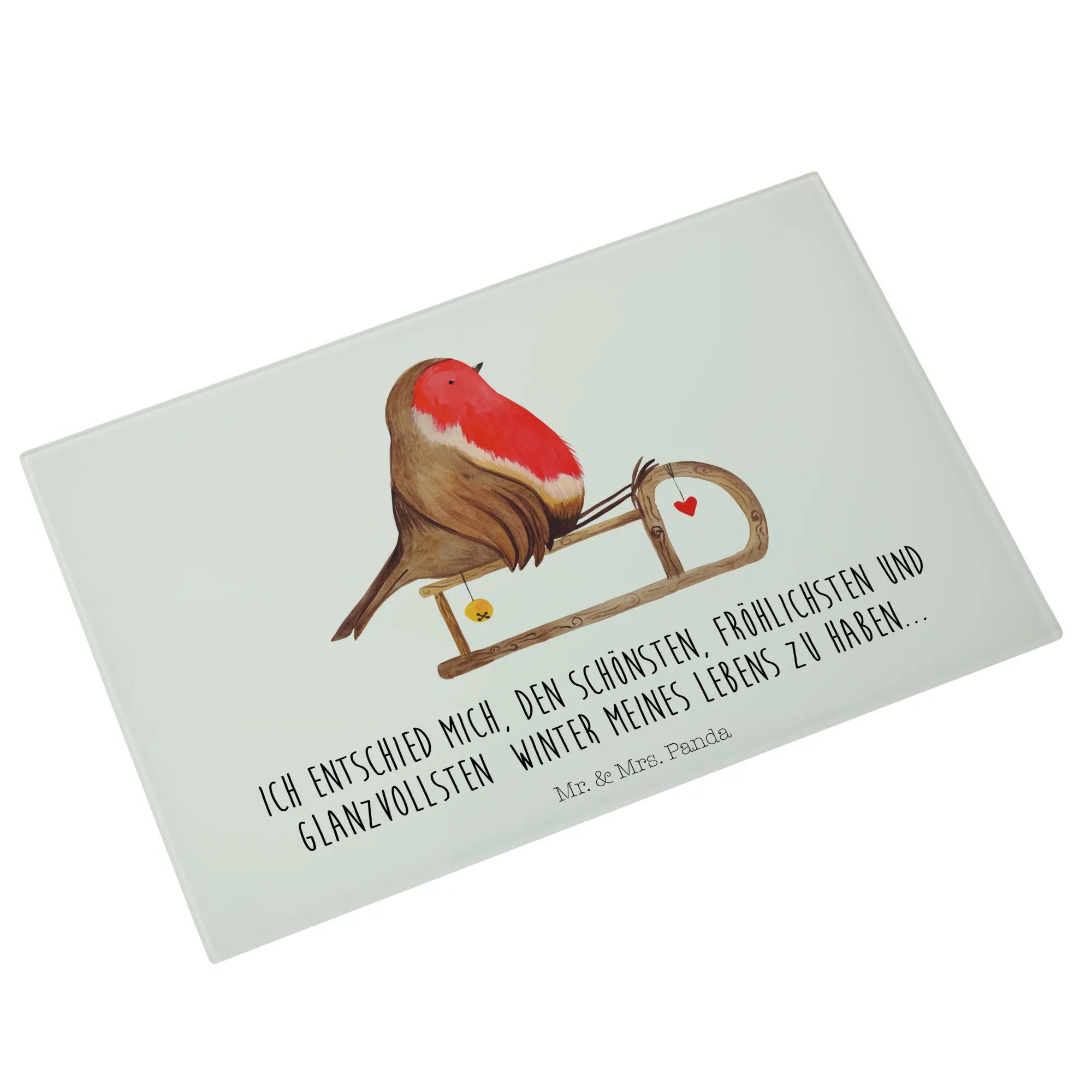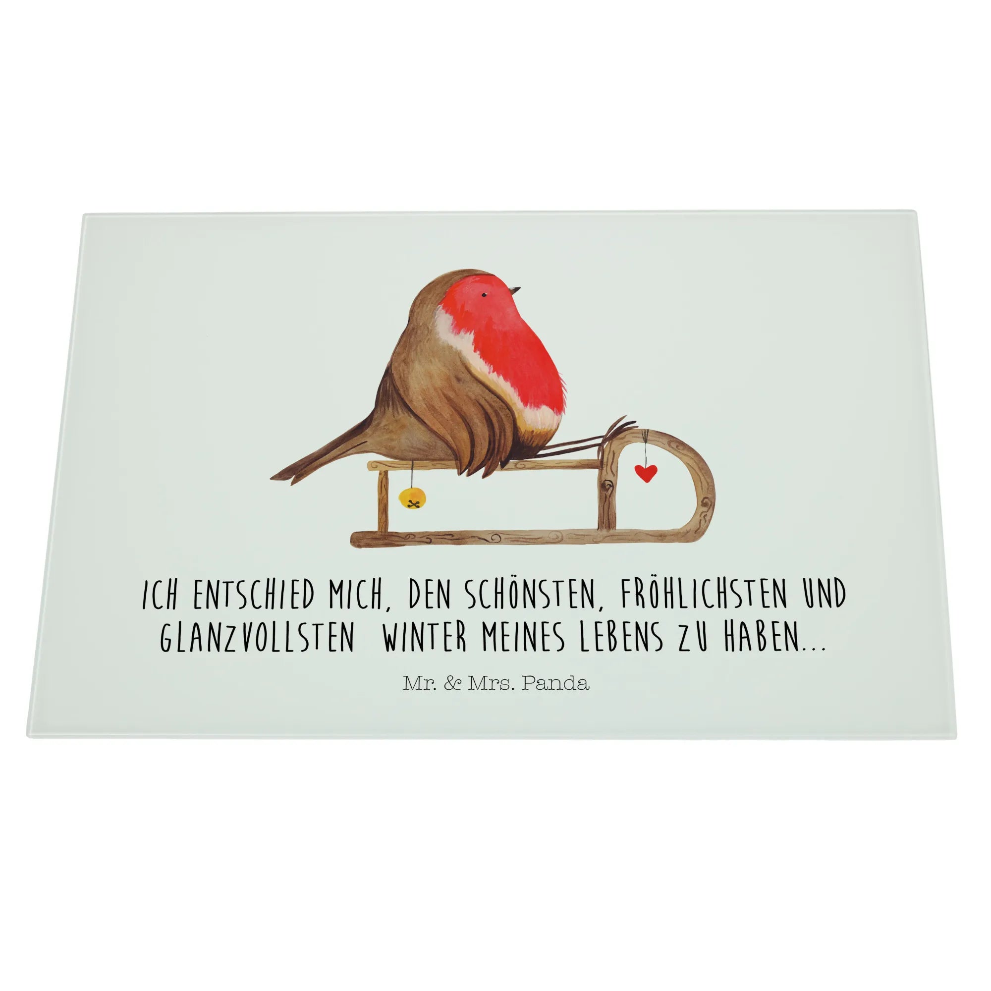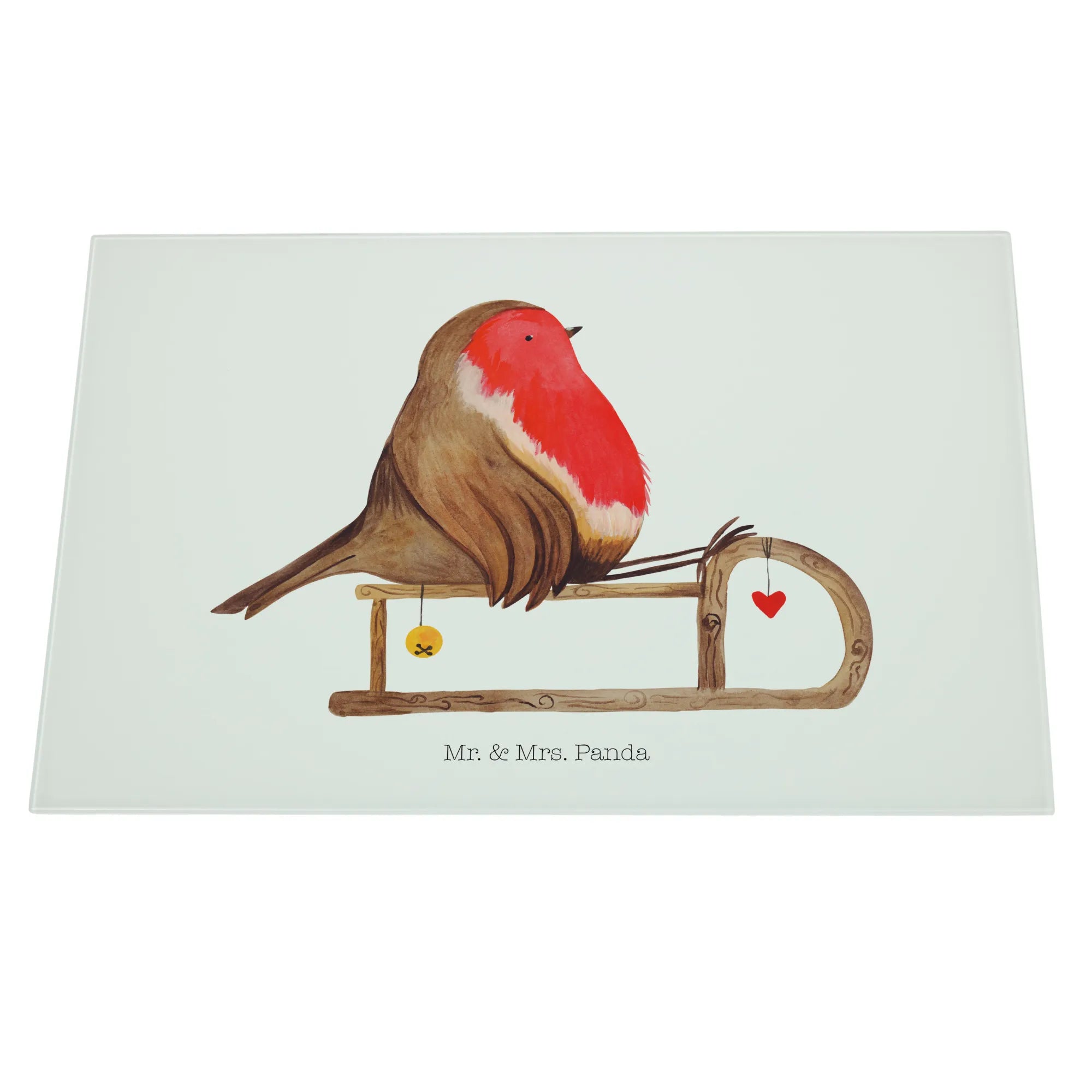 Introducing the perfect blend of style and functionality: the Glass Cutting Board featuring a charming Robin Sleigh from the beloved Winter Collection by Mr. & Mrs. Panda!