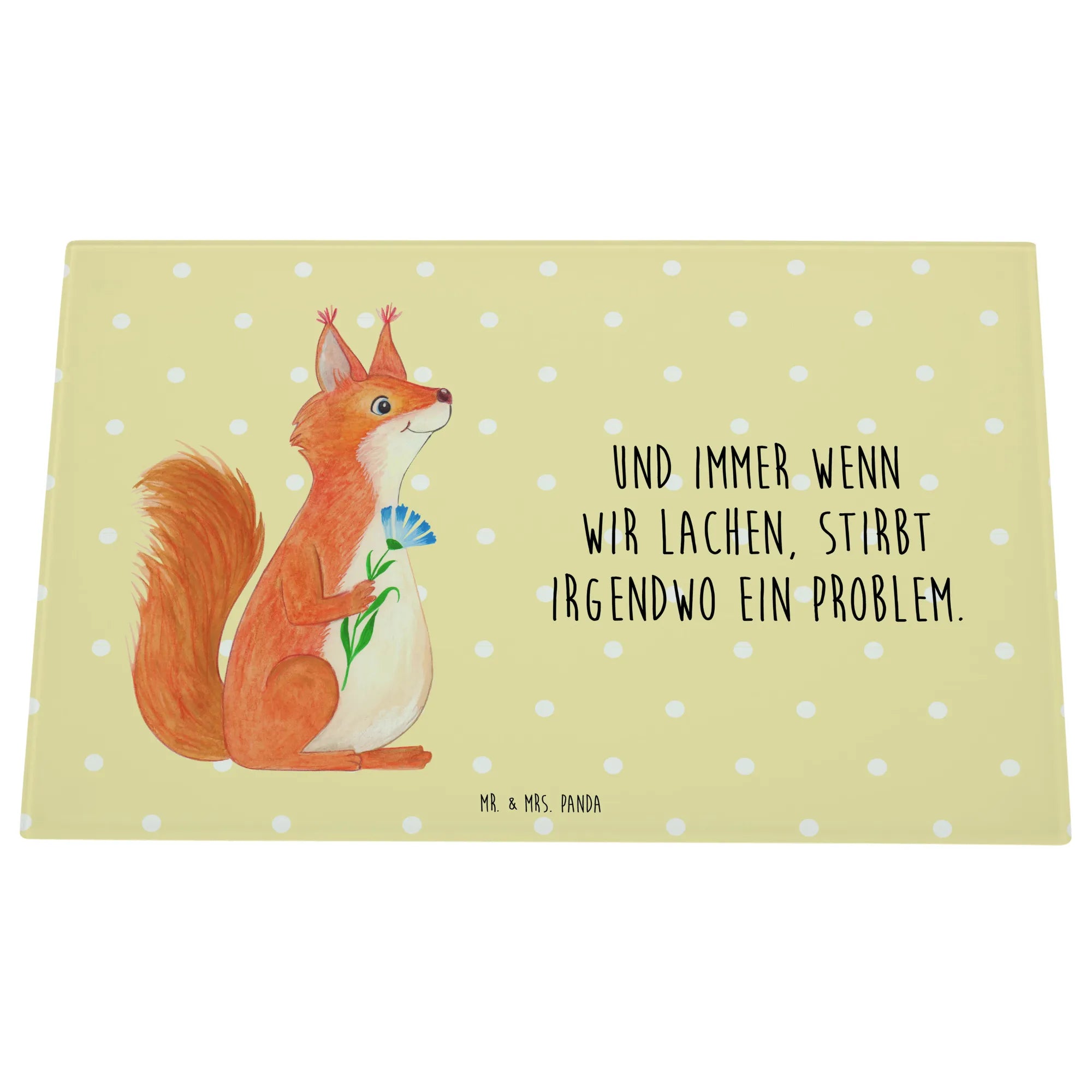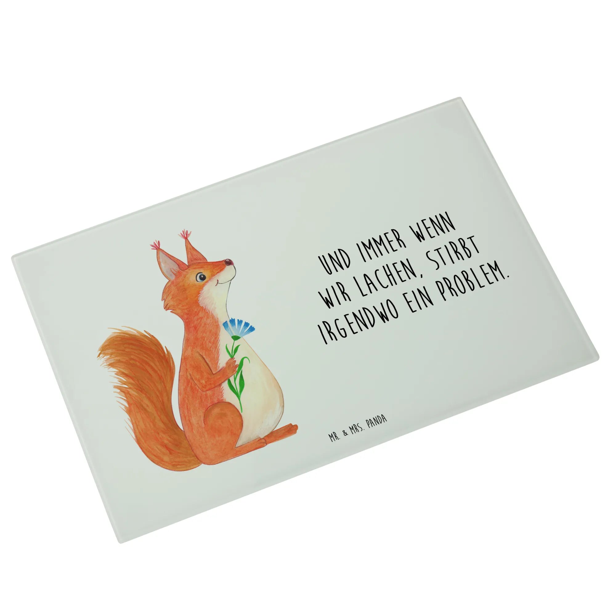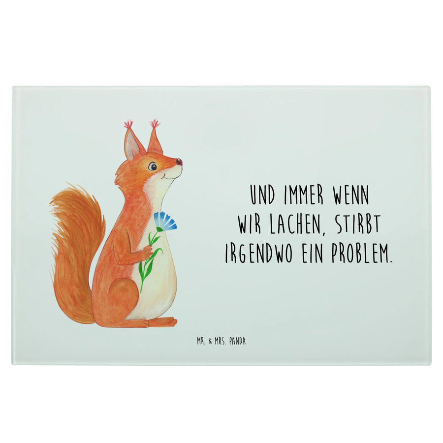 XL glass chopping board Squirrel flower - Medium Glass Cutting Board - with a saying - White