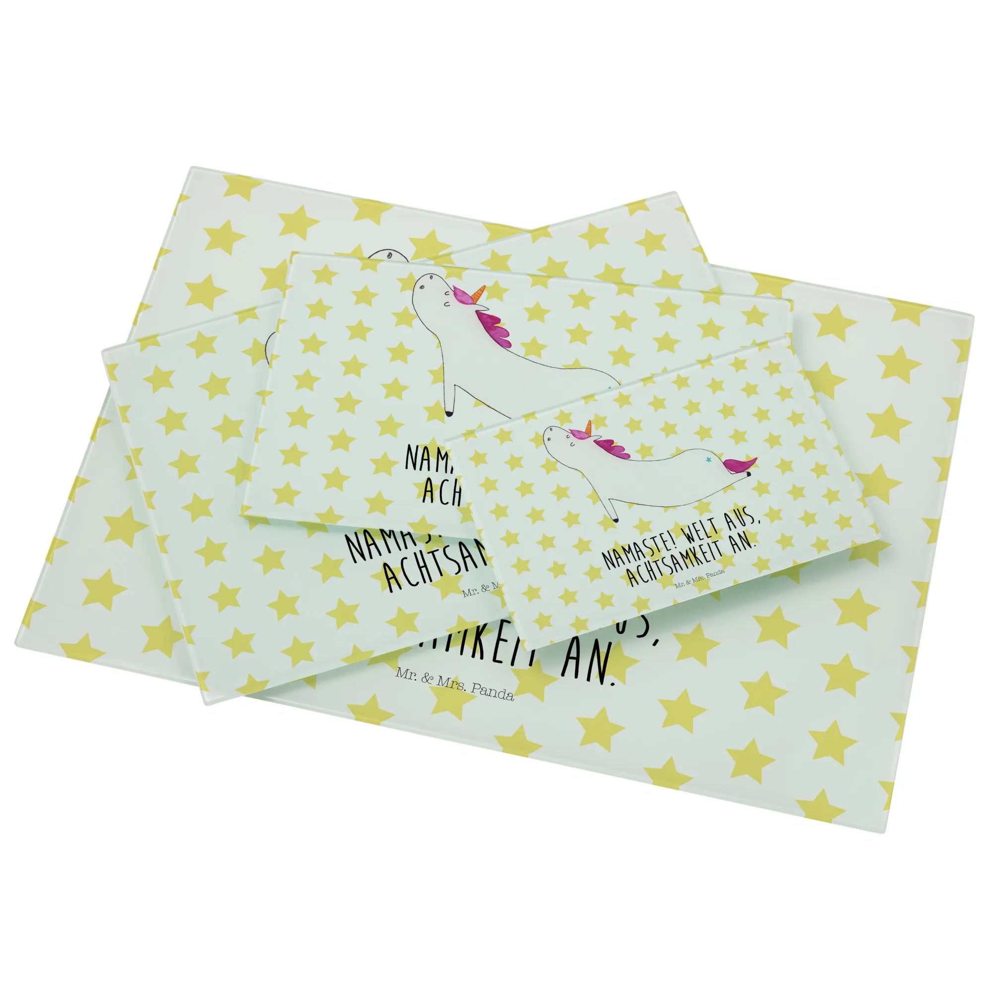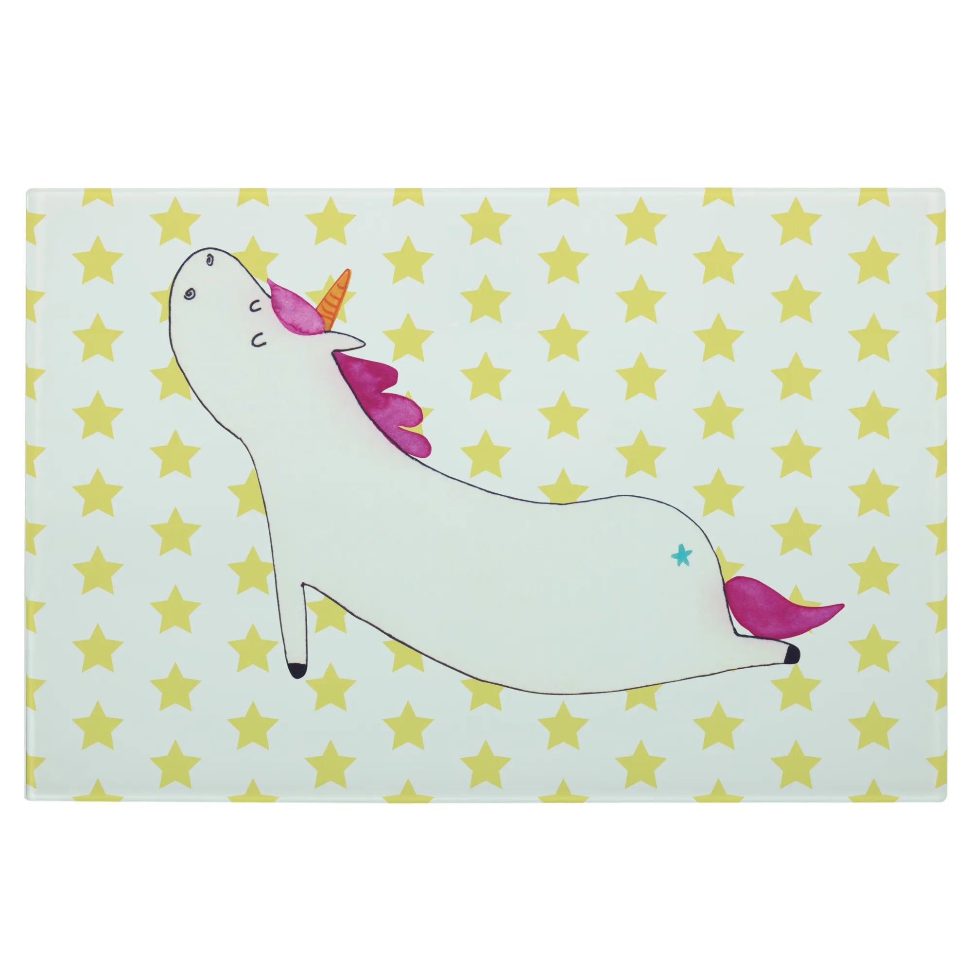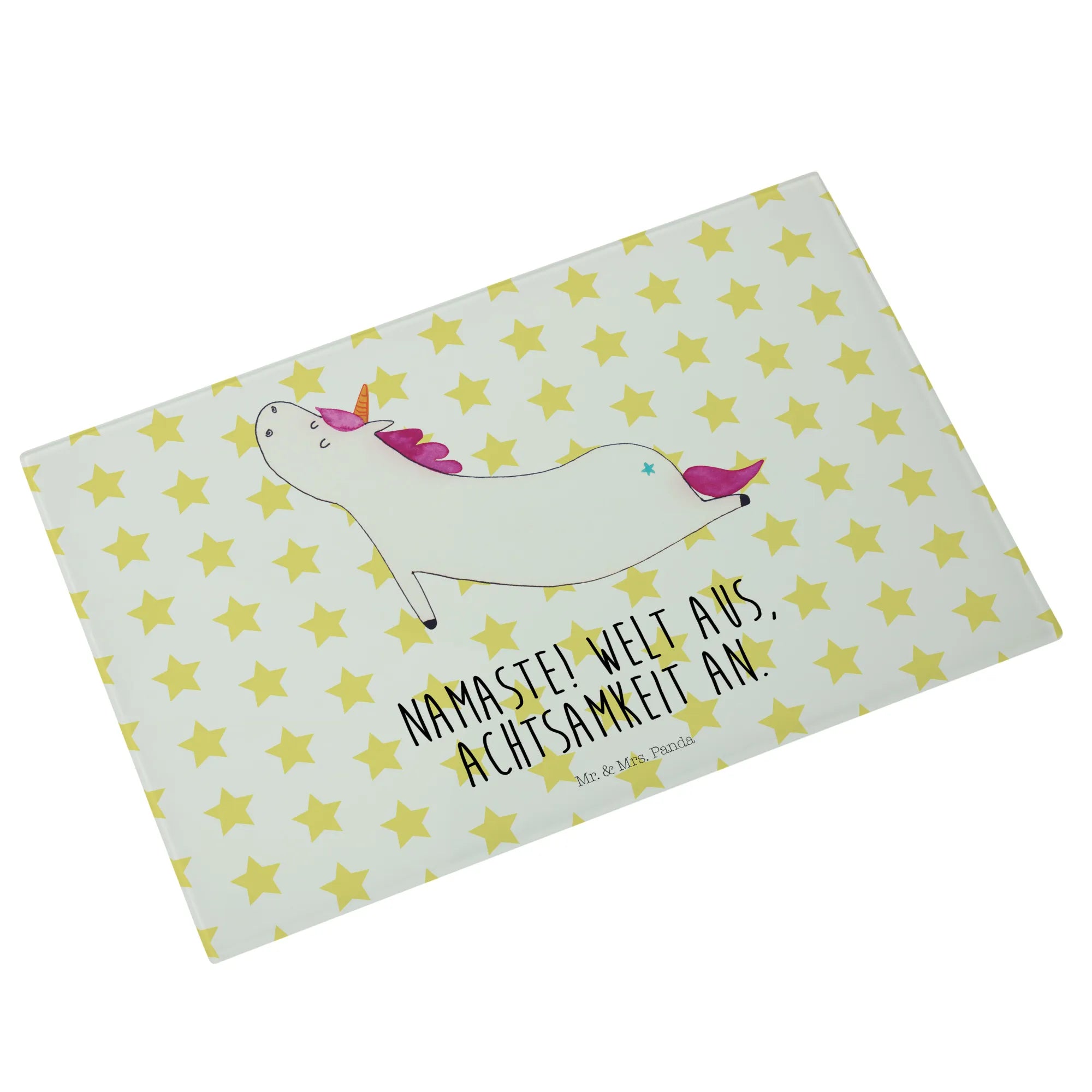 XL glass chopping board unicorn yoga - Medium Glass Cutting Board - with saying - White