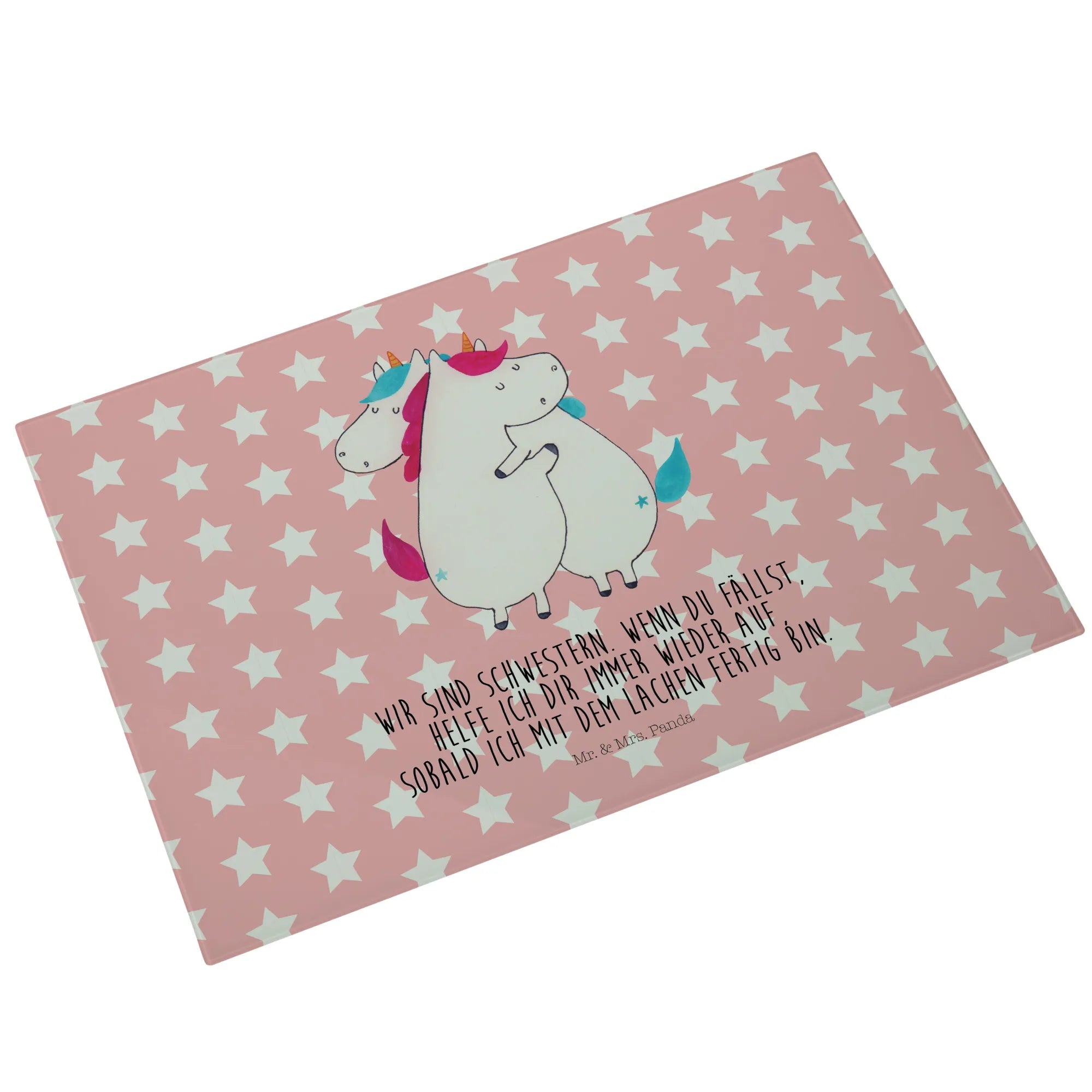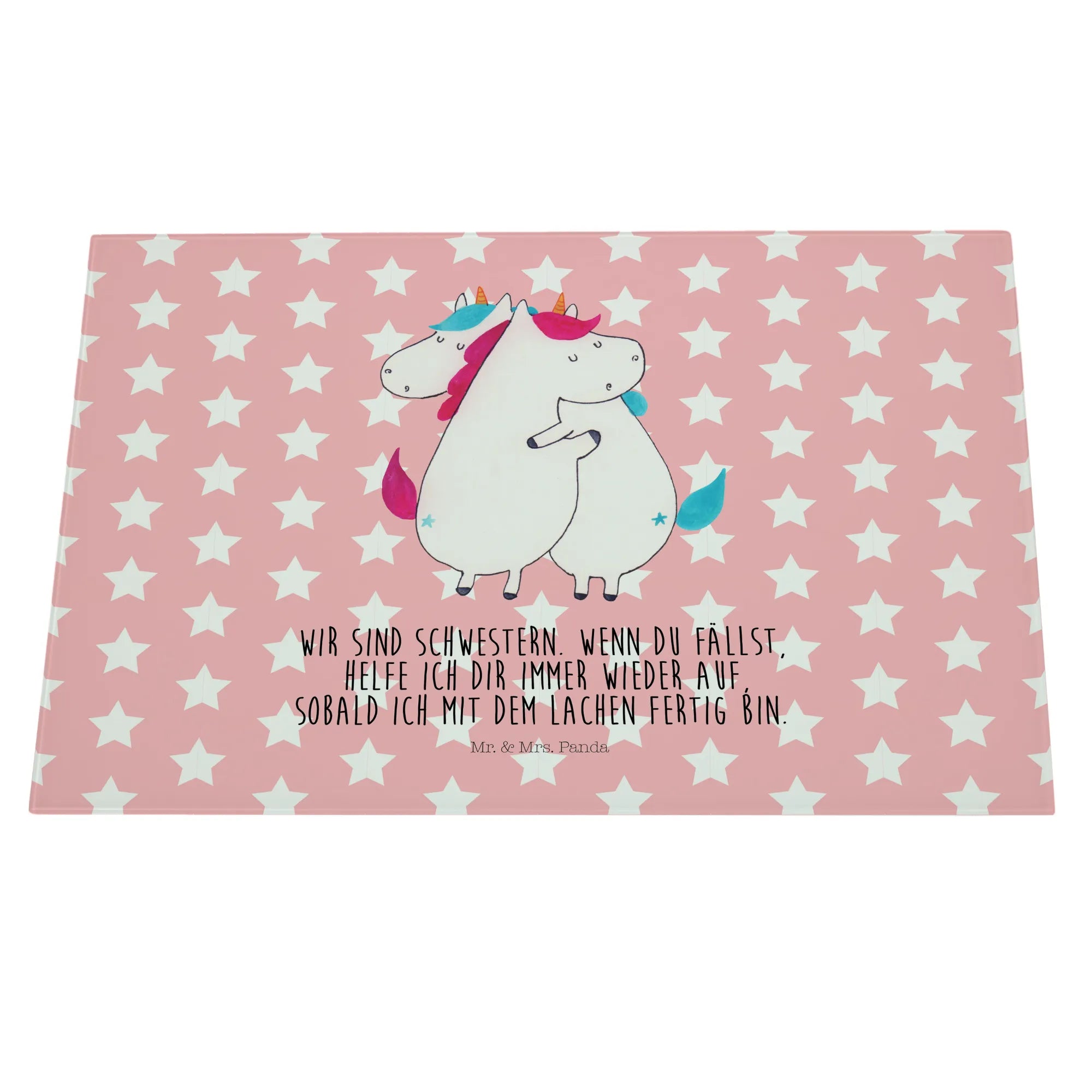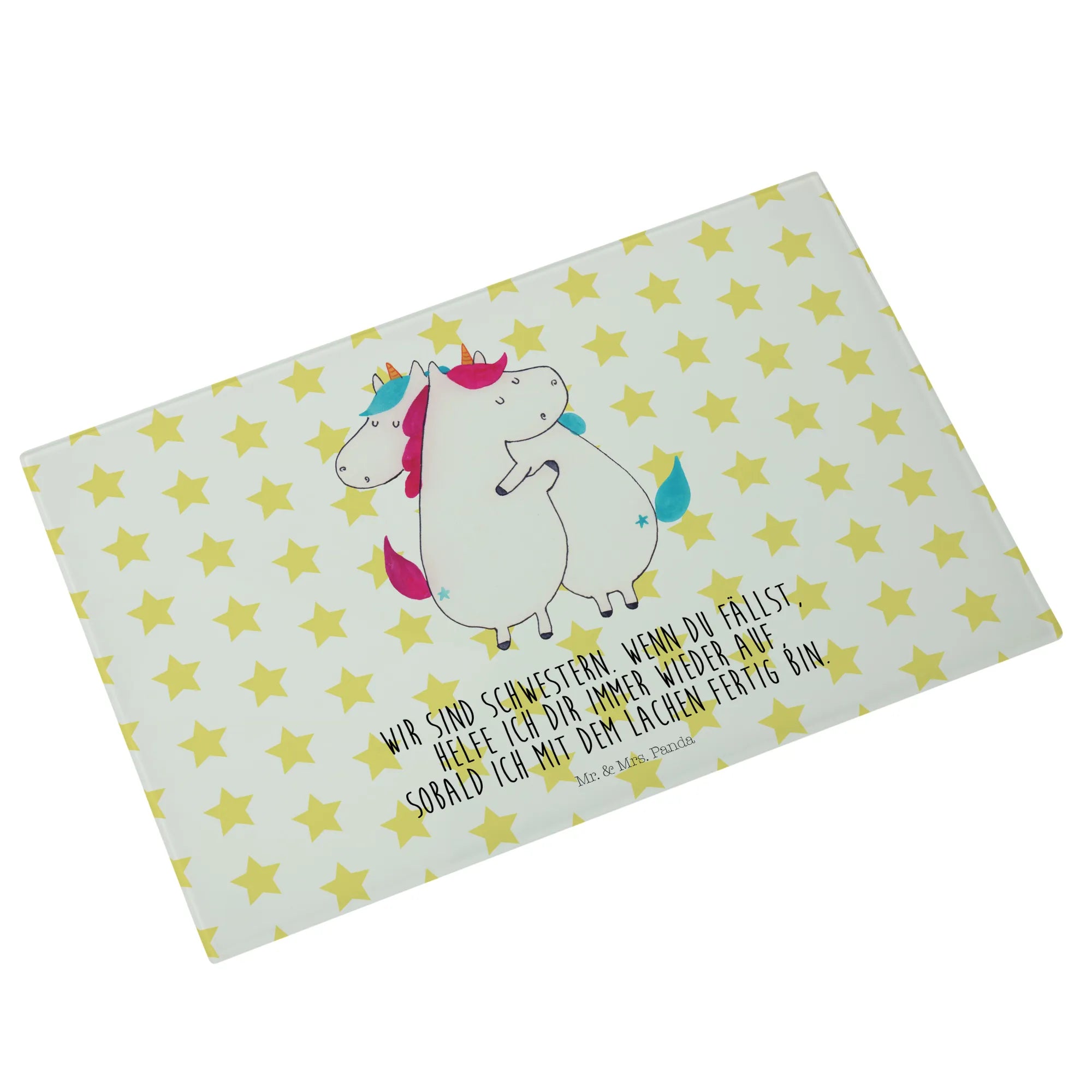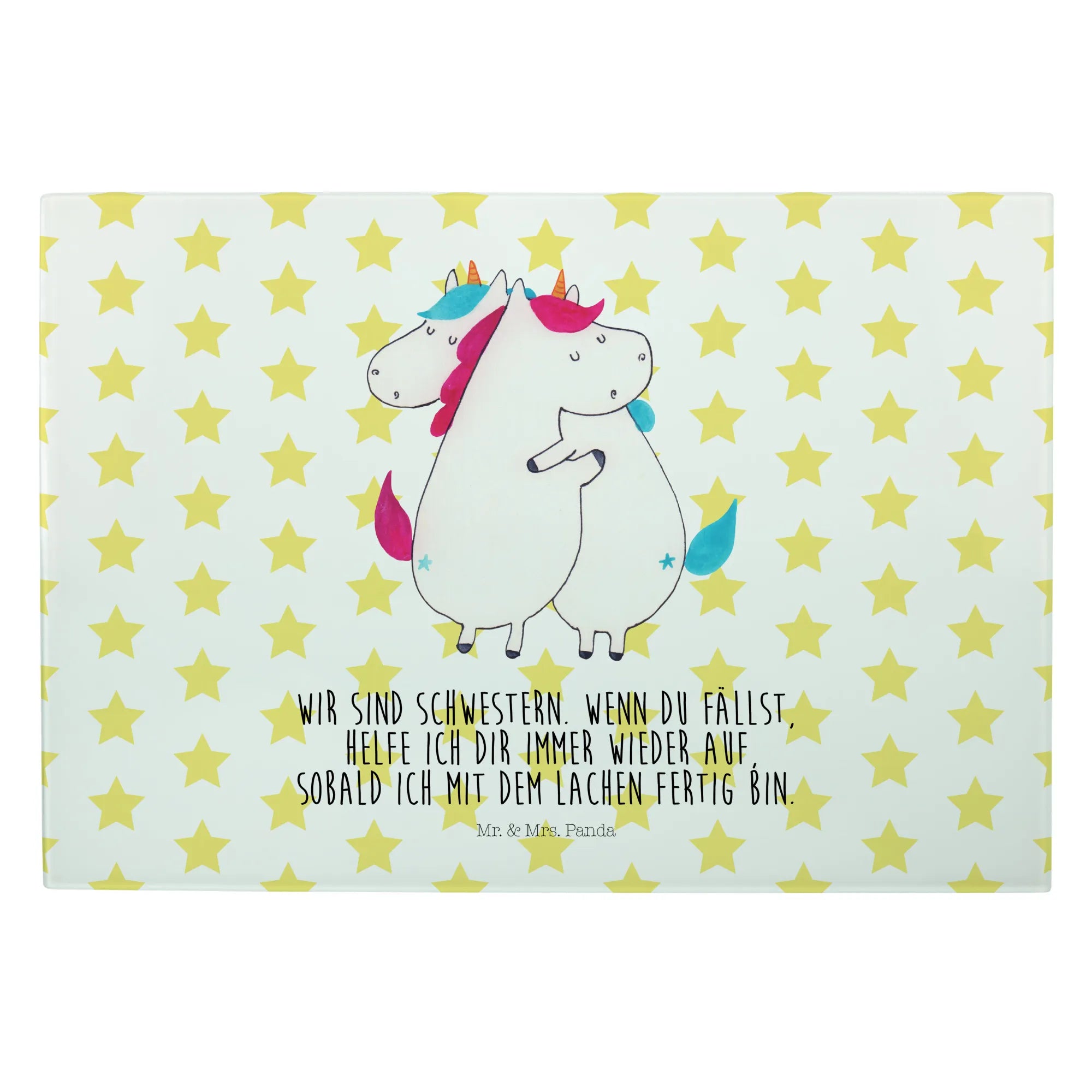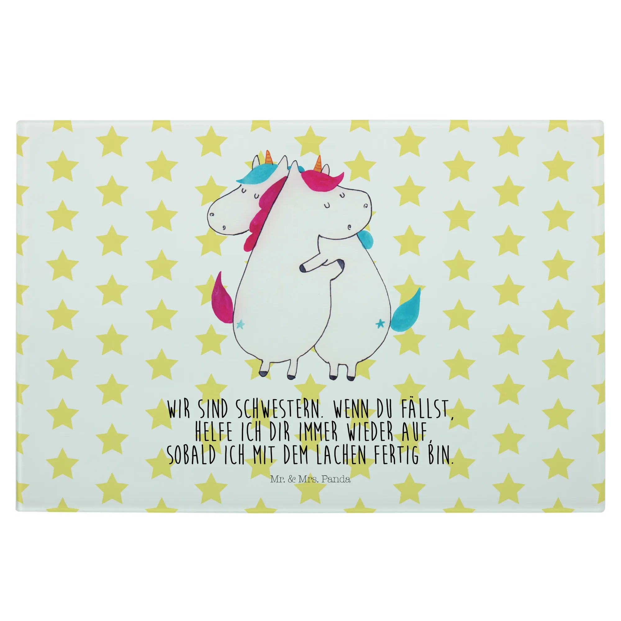 Looking for the perfect gift that combines beauty and functionality? Look no further! Our XL glass chopping board featuring the delightful "Unicorns Hug" motif from the enchanting Unicorn Collection by Mr. & Mrs. Panda is just what you need. This isn't just a chopping board; it’s a heartwarming reminder of the love between sisters and friends.