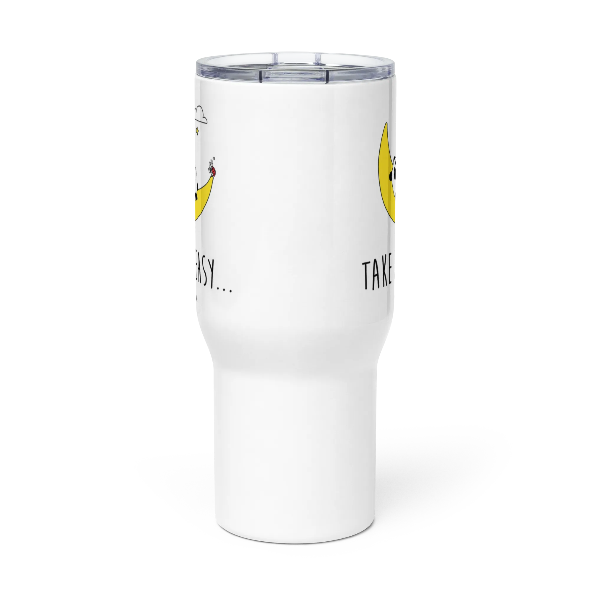 Enjoy your favorite drink on the go with a high-quality travel mug. It is made from stainless steel and holds up to 740 ml (25 oz) of any beverage - whether hot or cold. This mug keeps hot drinks hot for up to 6 hours and cold drinks cold for up to 8 hours. It fits in most car cup holders and has a leak-proof plastic lid. Personalize it for yourself or add it to your online shop and start selling modern drinkware.