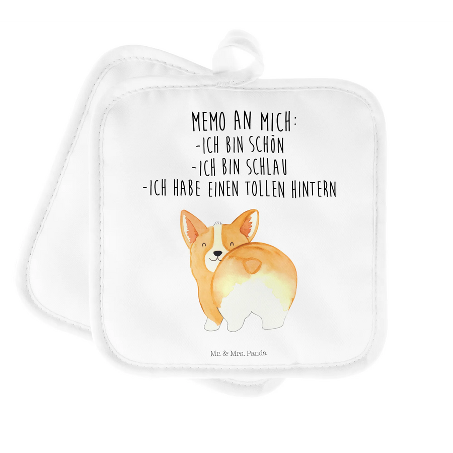 2-elementowy zestaw podkładek pod garnki Corgi tyłek - z napisem - biały