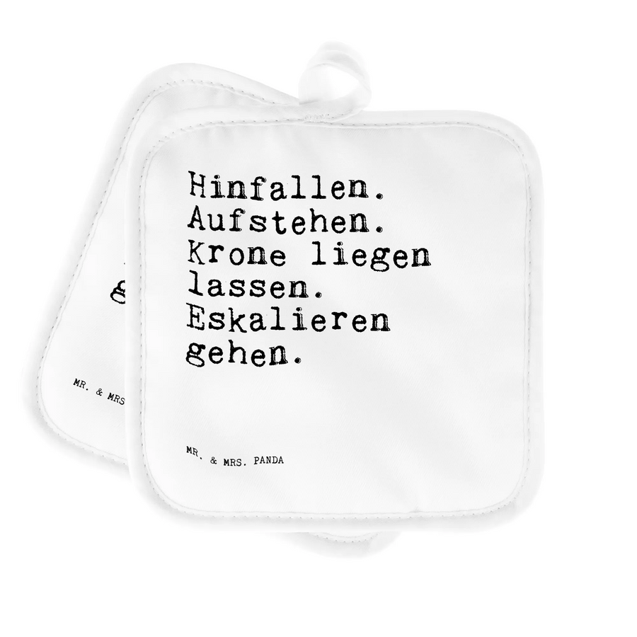 2-elementowy zestaw podkładek pod garnki Hinfallen. Aufstehen. Krone liegen...
