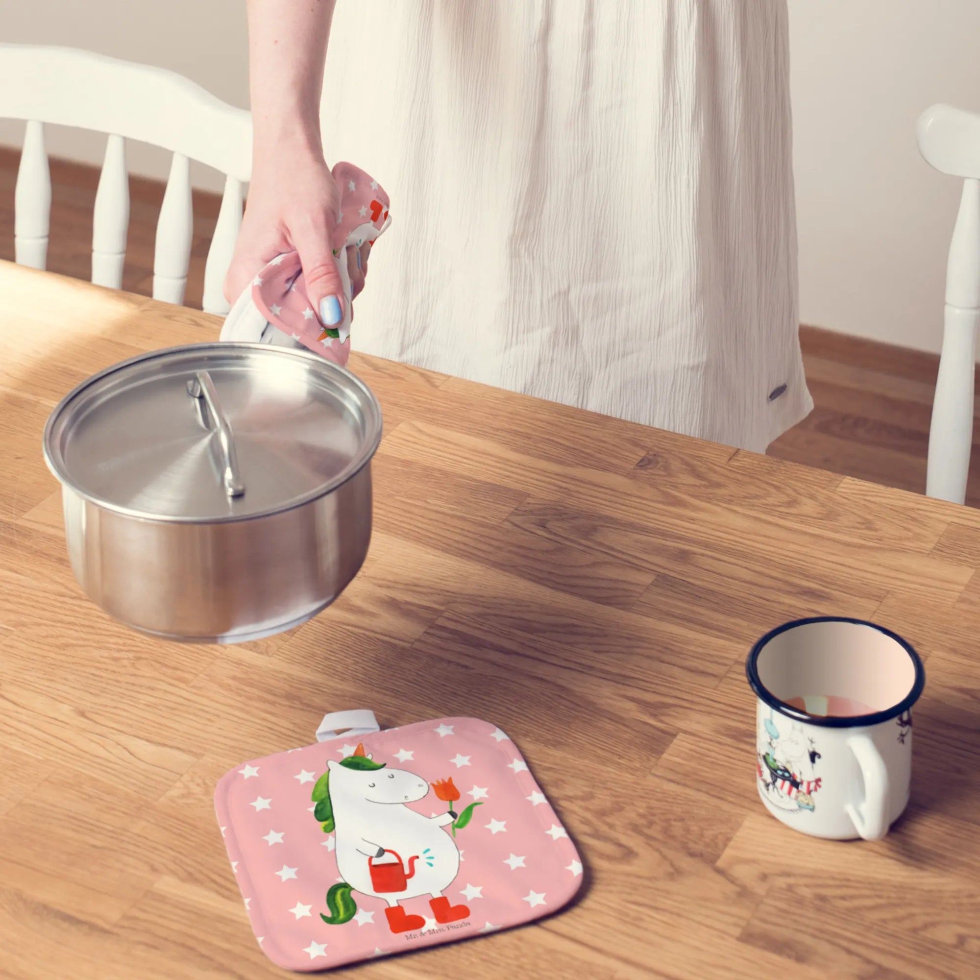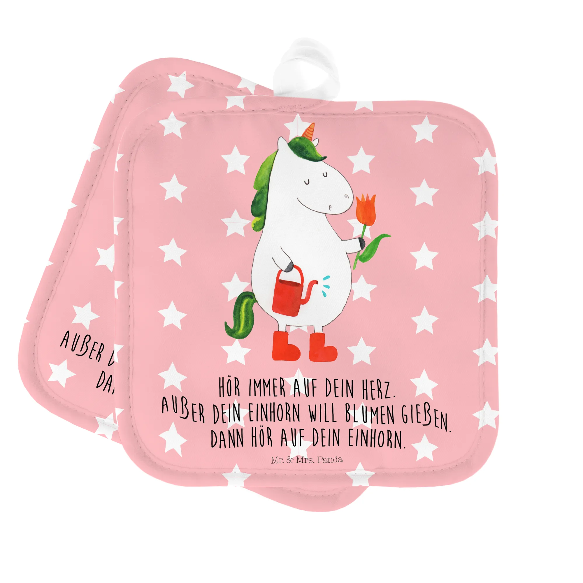 2-elementowy zestaw podkładek pod garnki jednorożec ogrodnik - z napisem - Różowy Czerwony