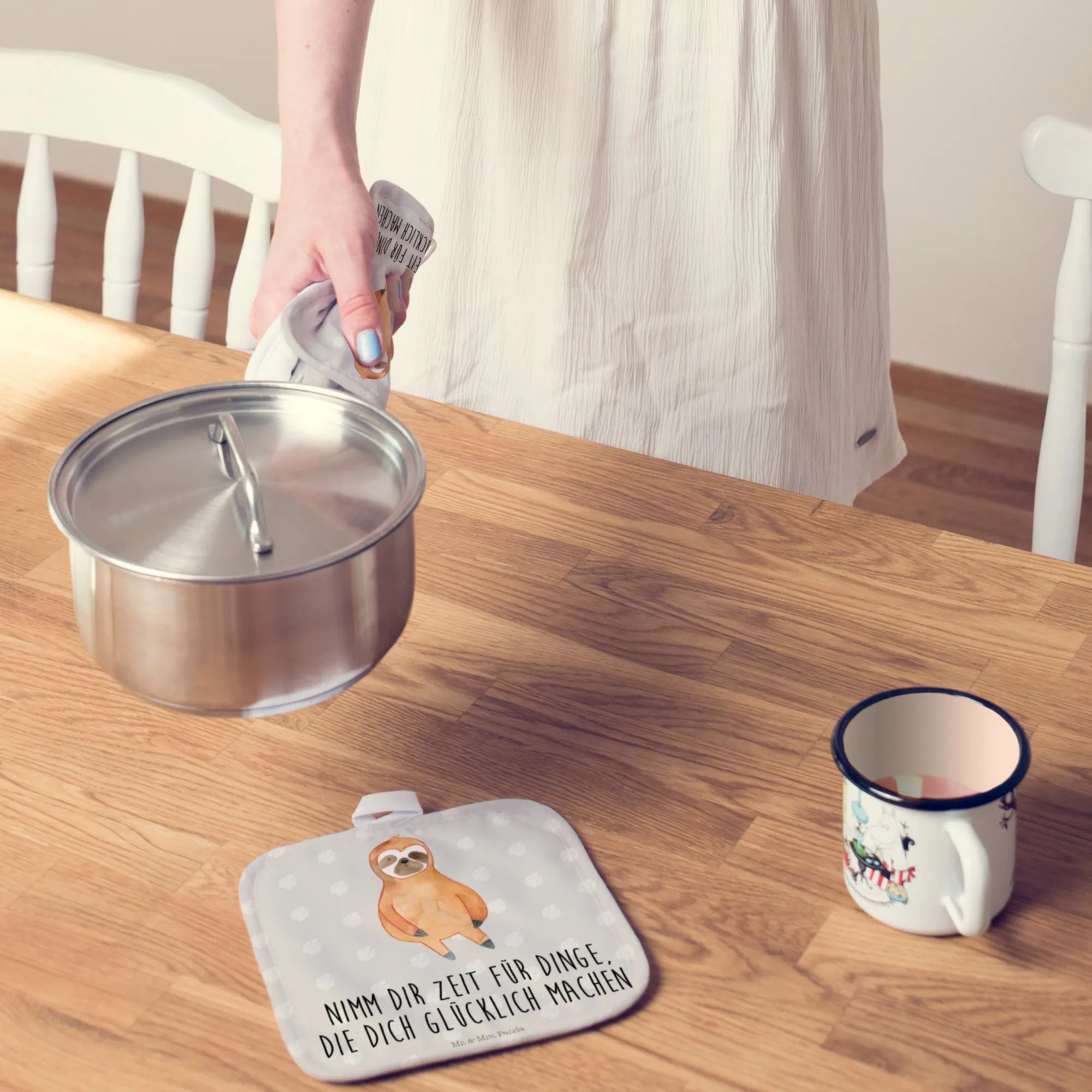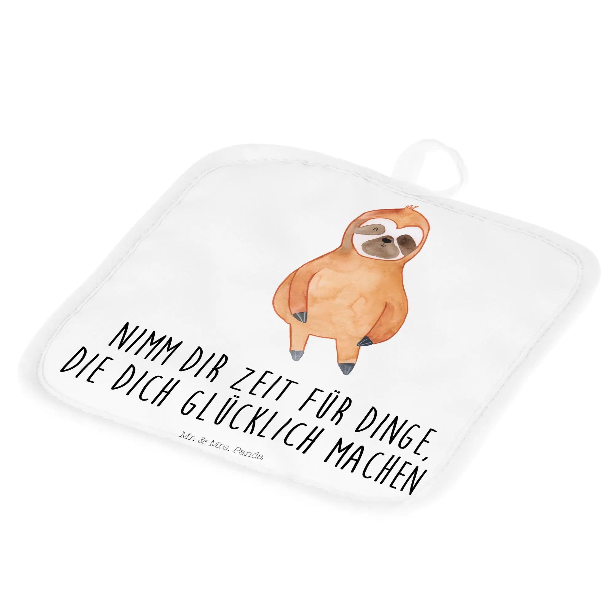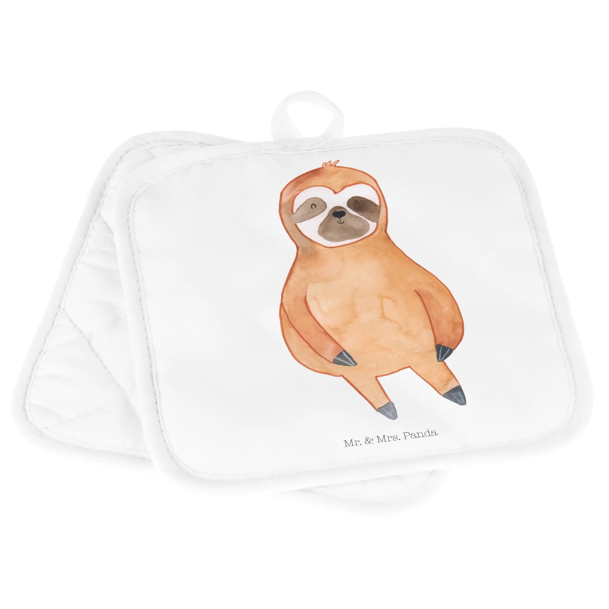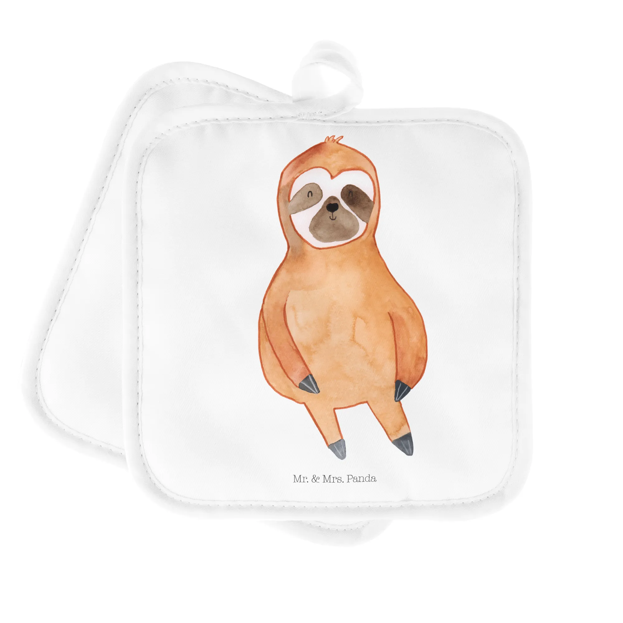 2-elementowy zestaw podkładek pod garnki leniwiec Zadowolony - z napisem - Biały