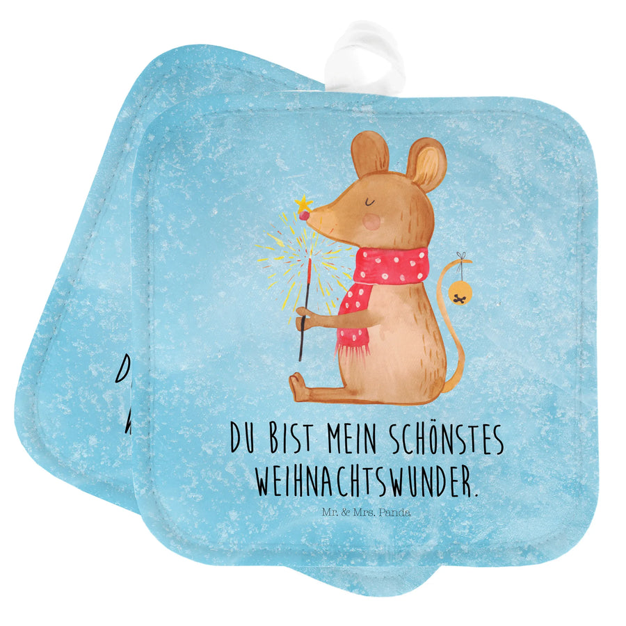 2-elementowy zestaw podkładek pod garnki mysz Boże Narodzenie - z napisem - lodowoniebieski