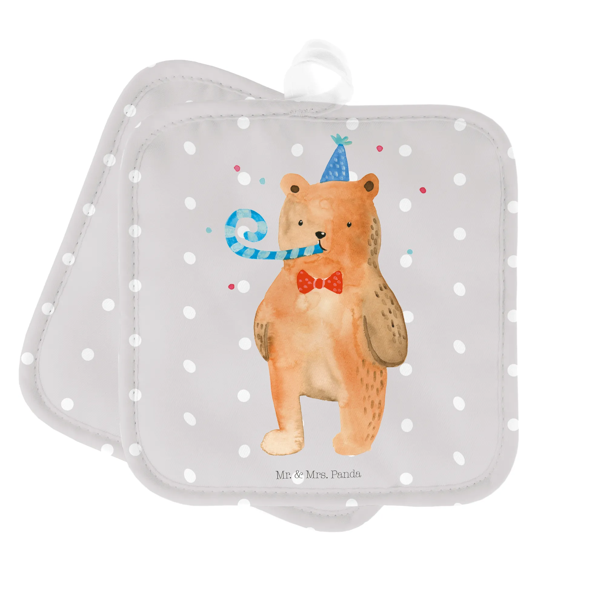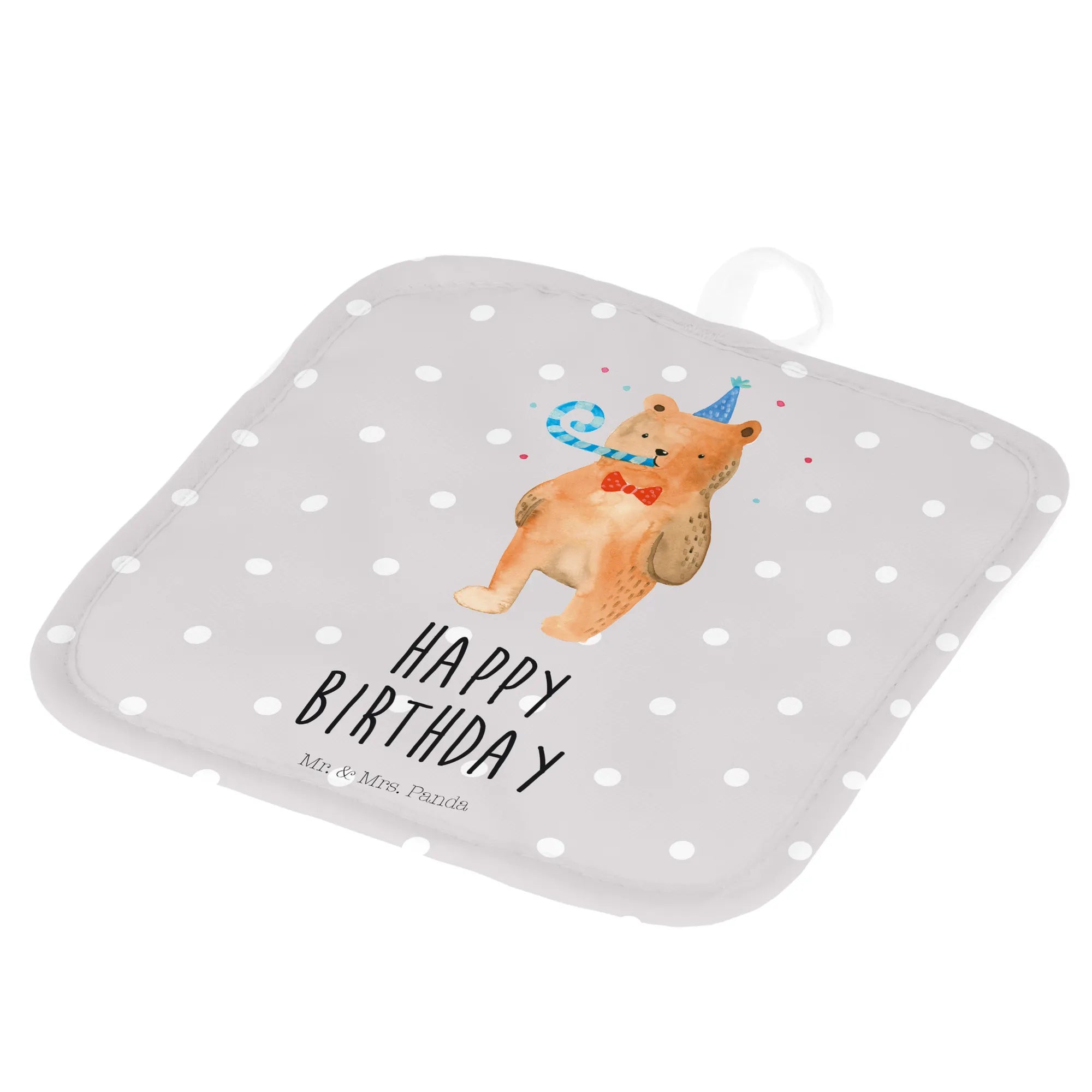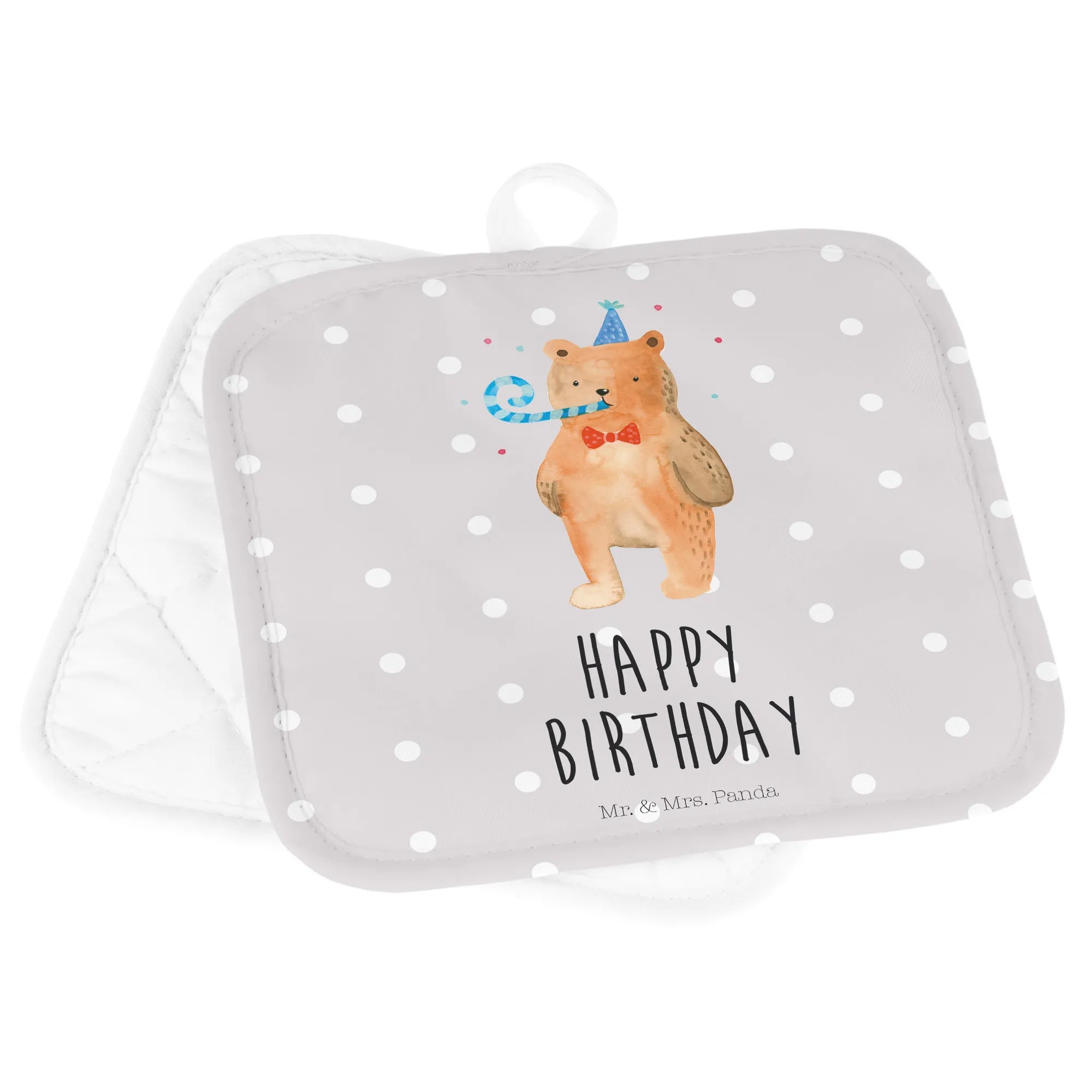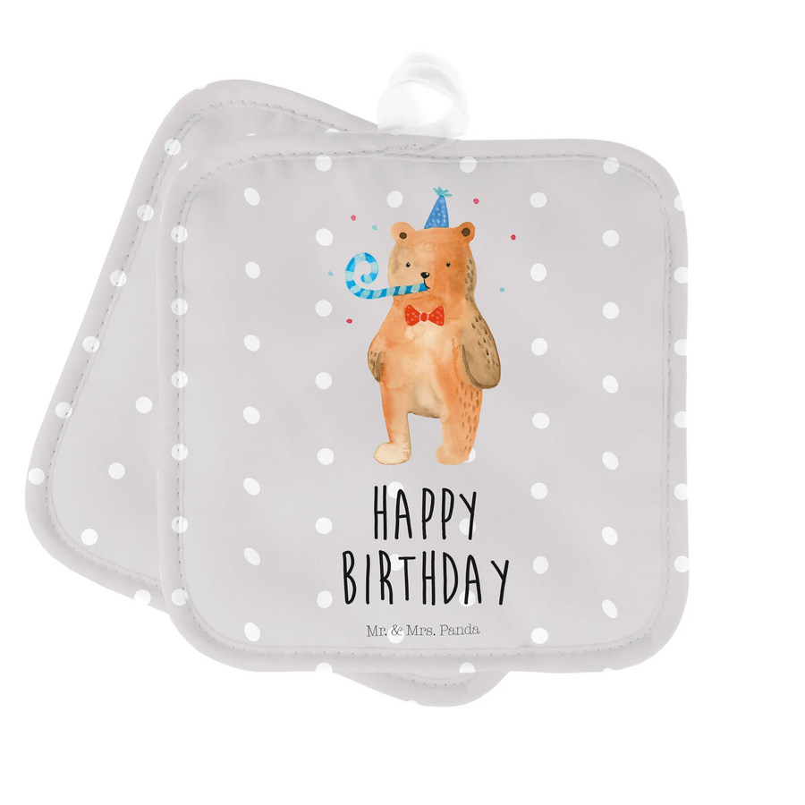 2-elementowy zestaw podkładek pod garnki Niedźwiedź urodziny - z napisem - Pastelowy szary