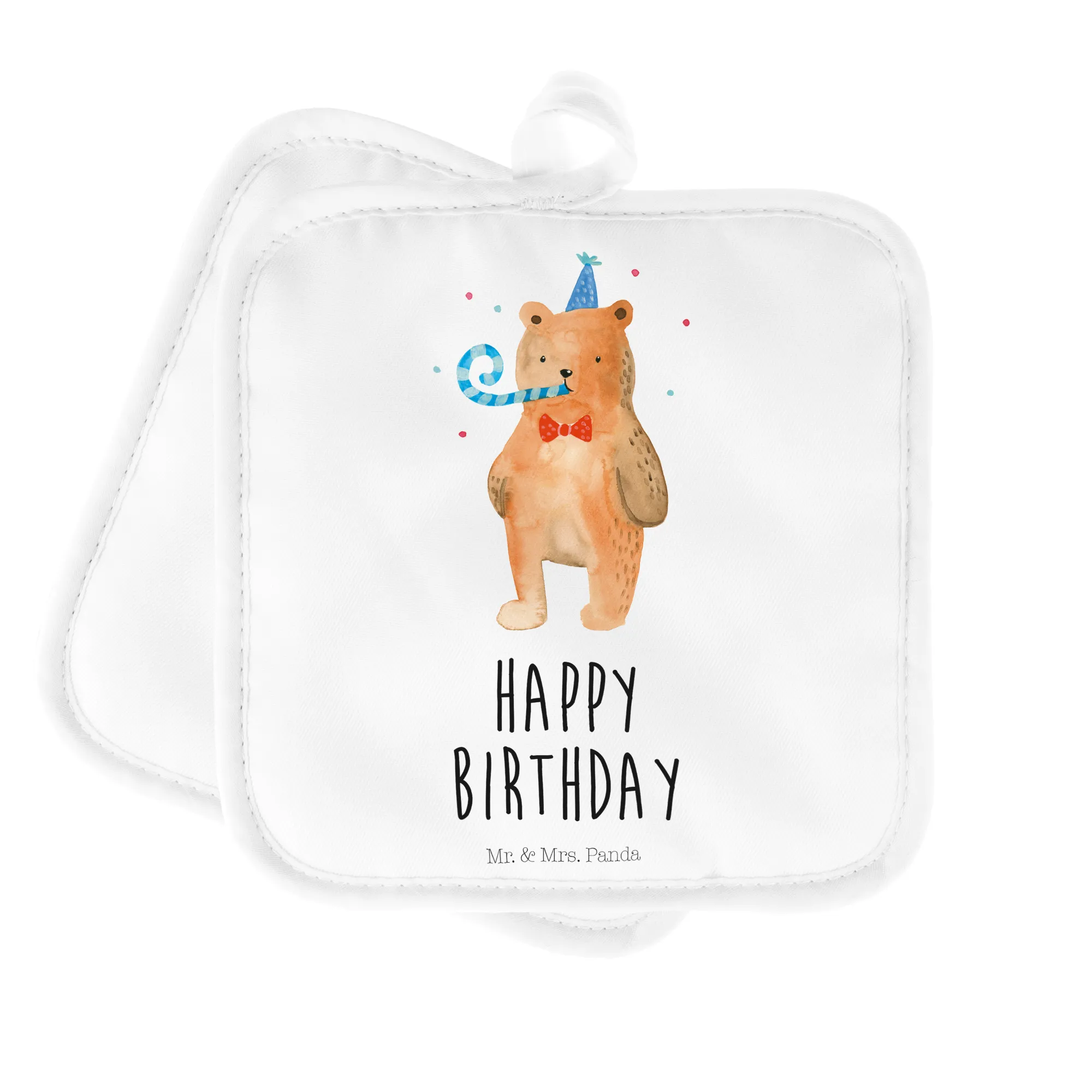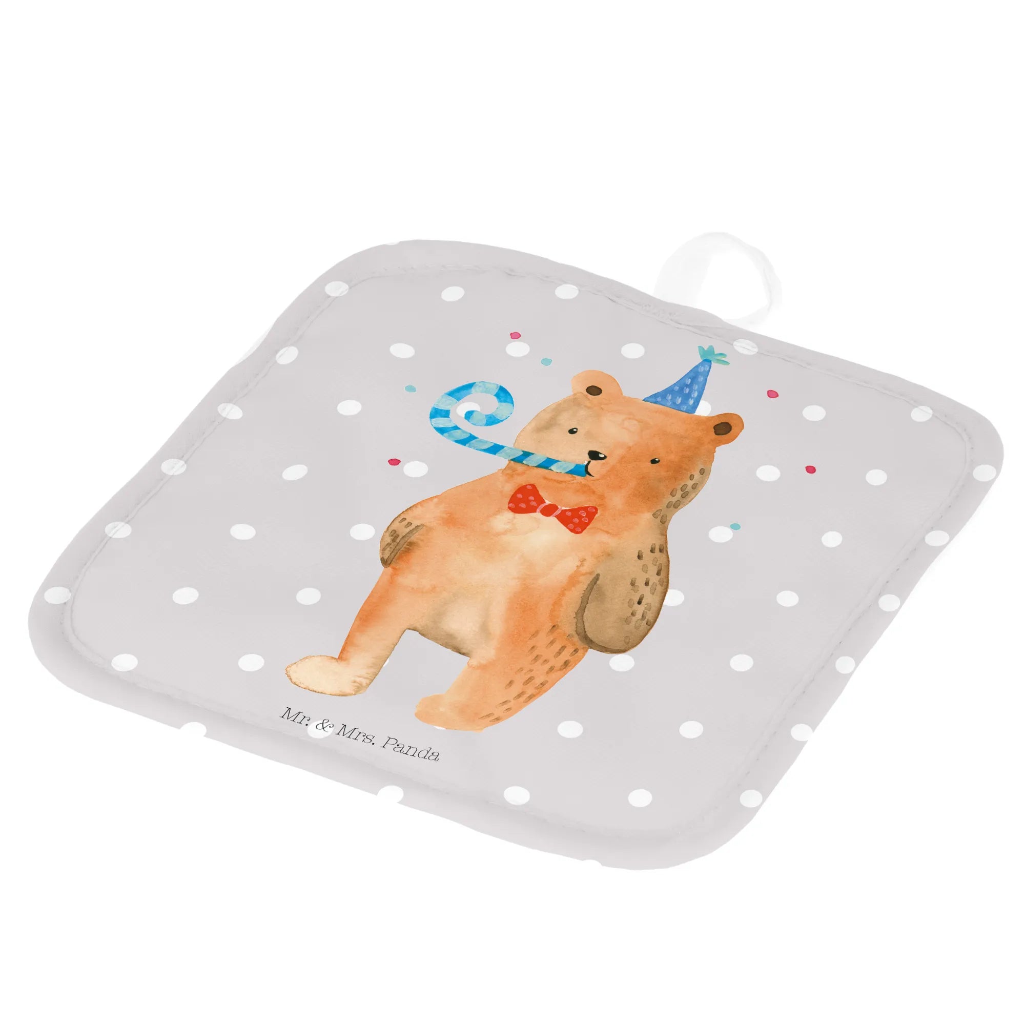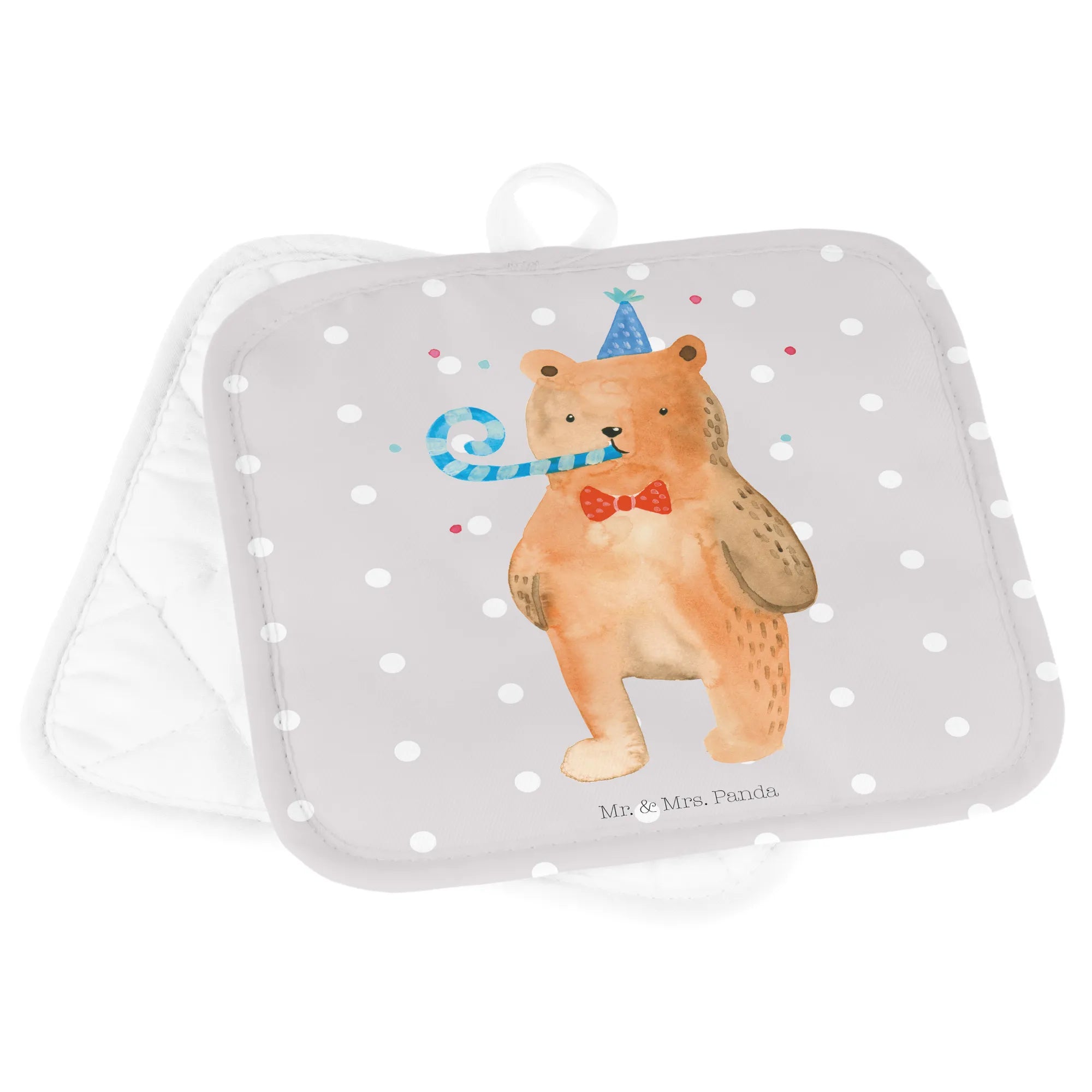2-elementowy zestaw podkładek pod garnki Niedźwiedź urodziny - z napisem - Pastelowy szary