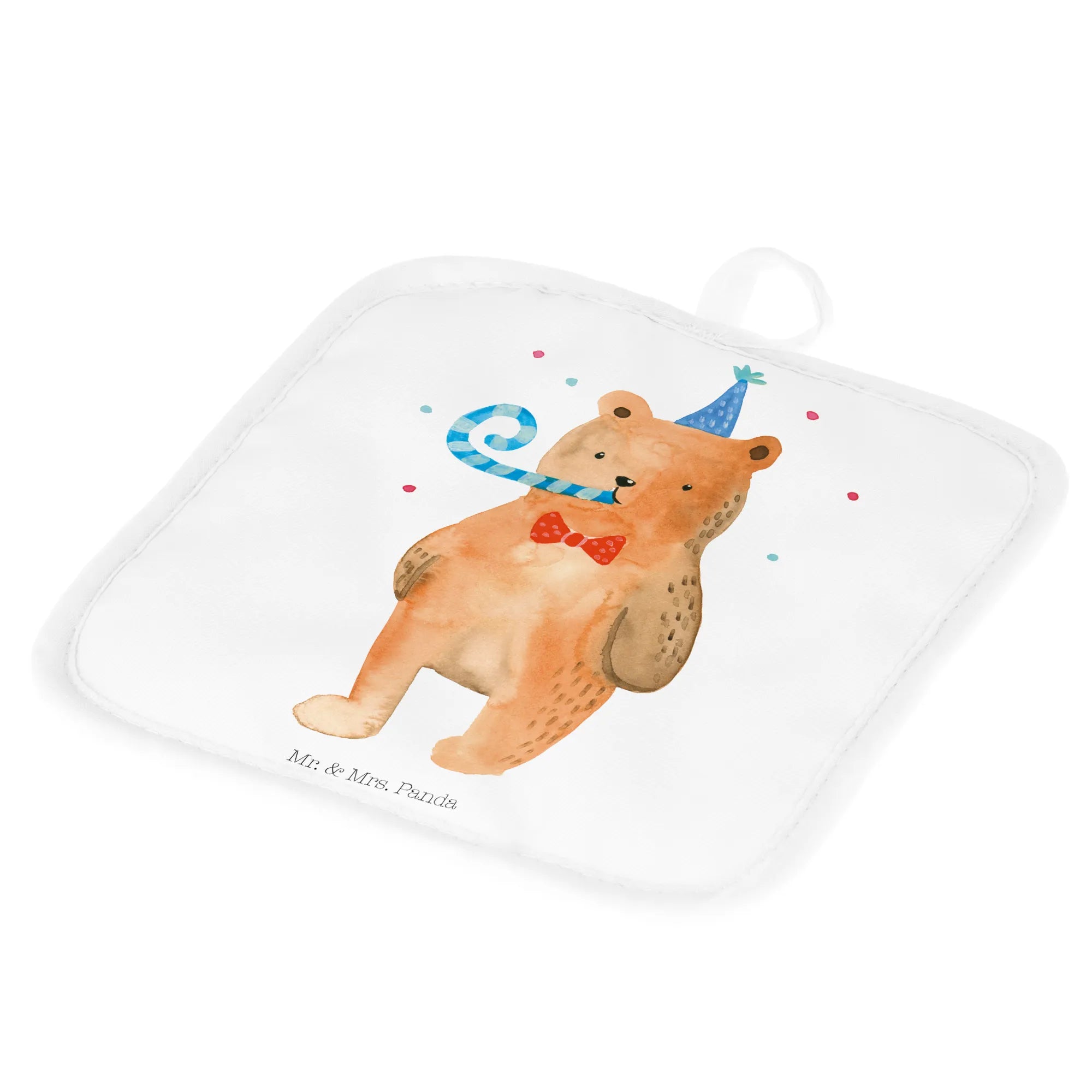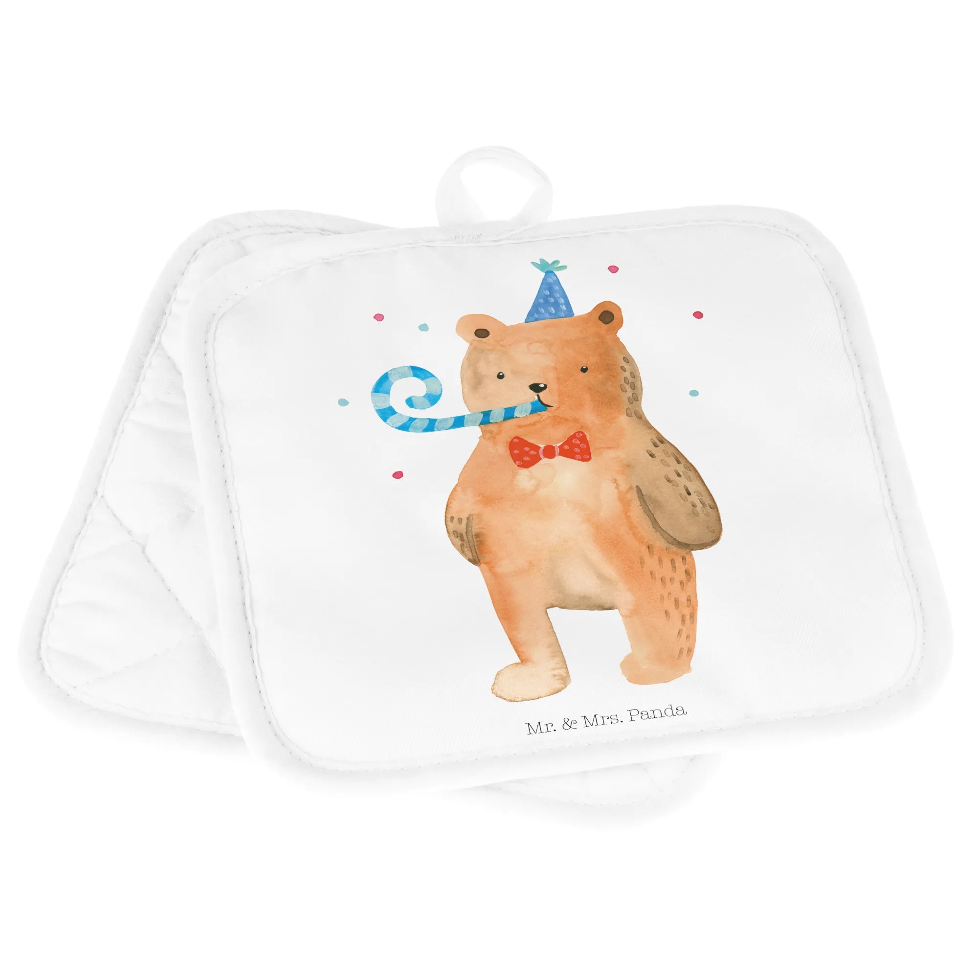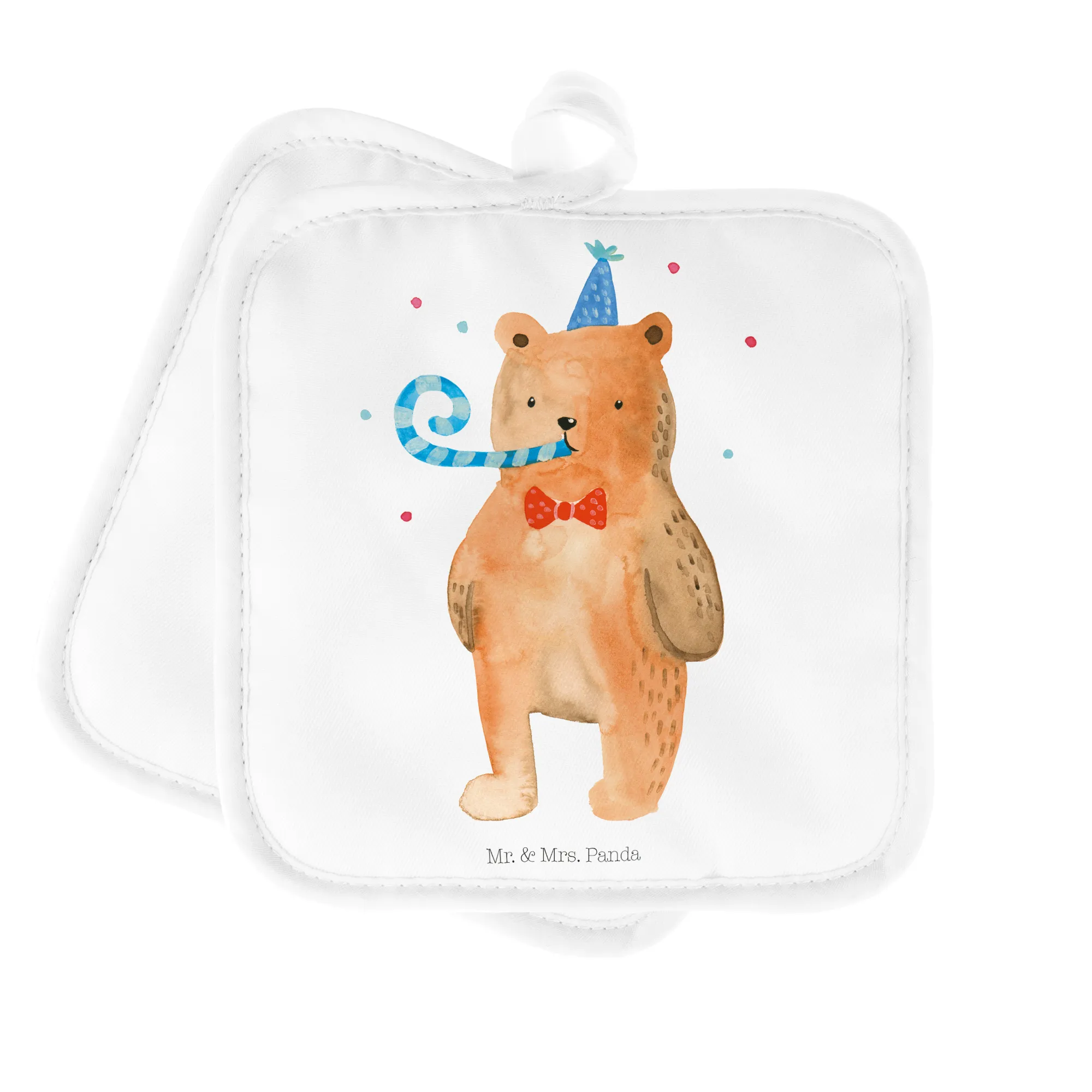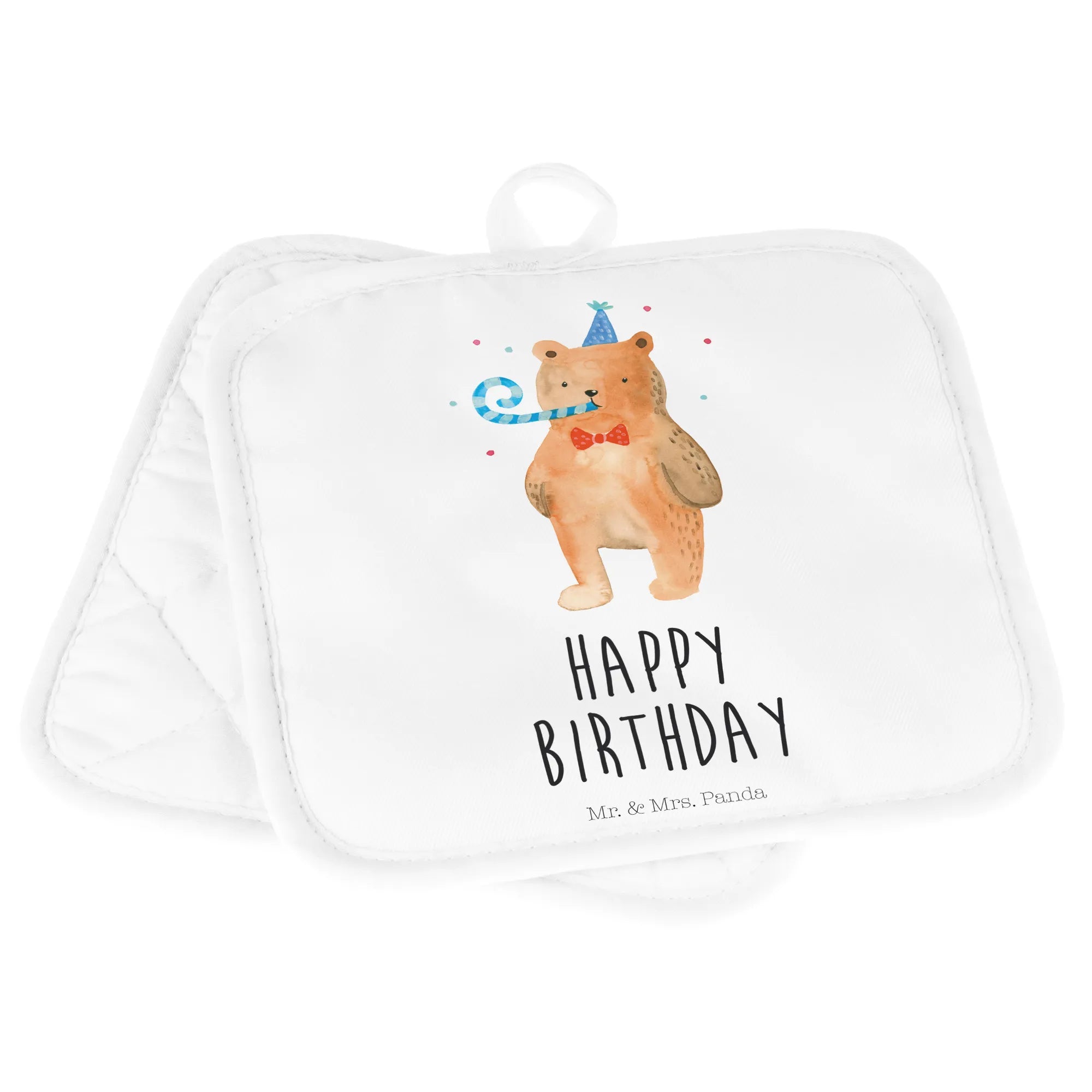 2-elementowy zestaw podkładek pod garnki Niedźwiedź urodziny - z napisem - Pastelowy szary