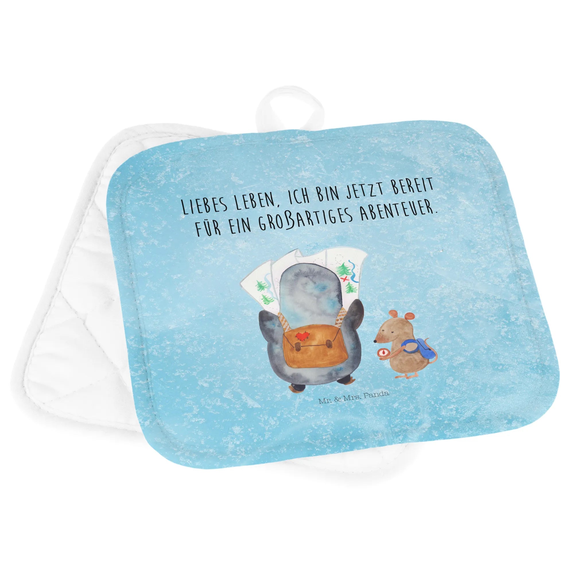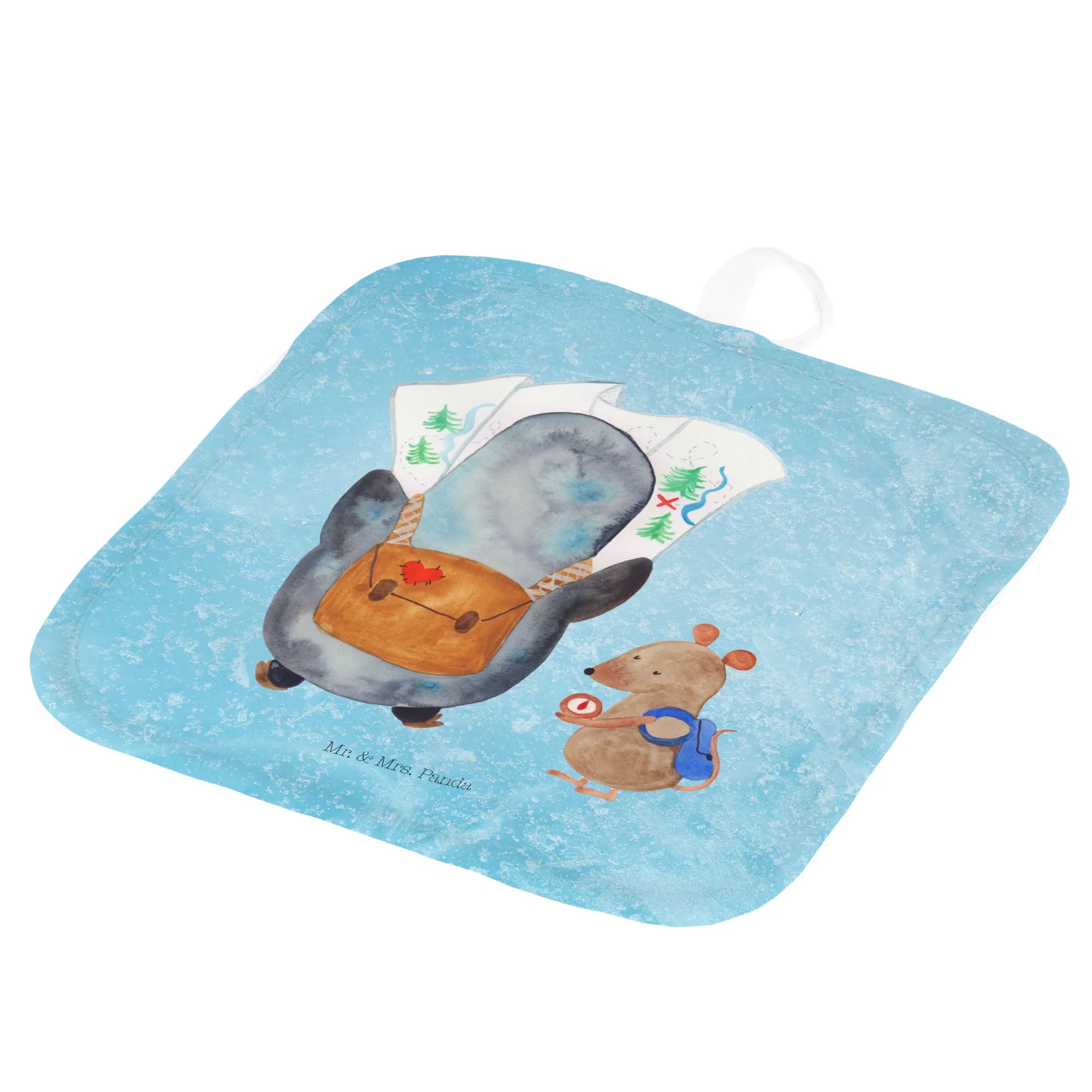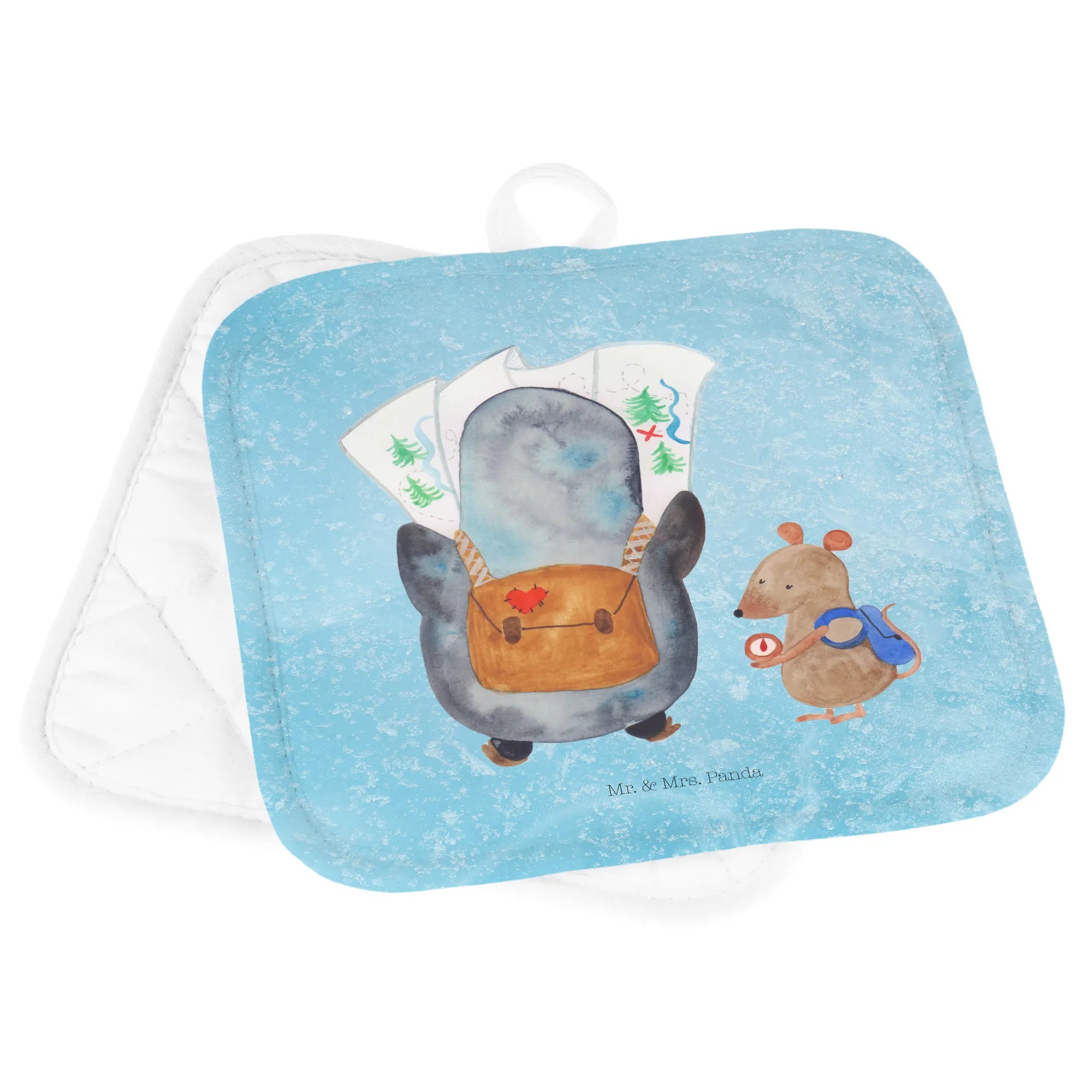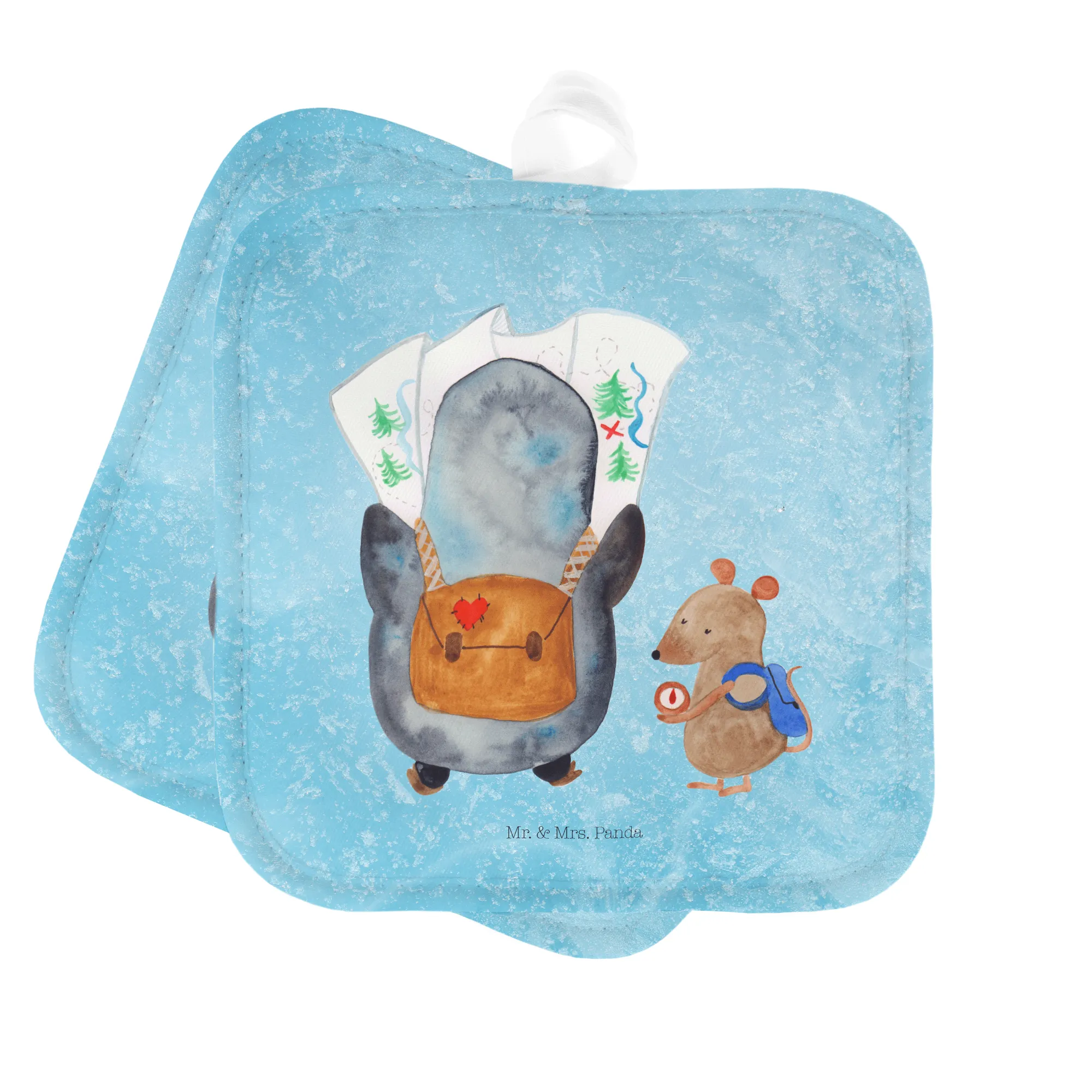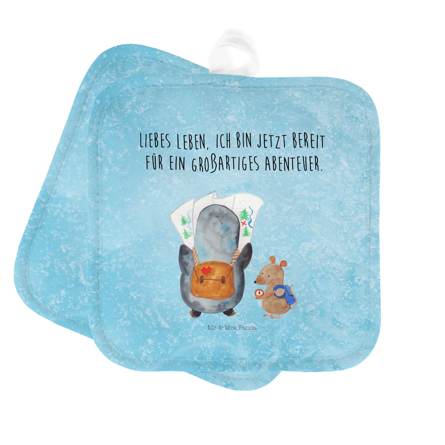 2-elementowy zestaw podkładek pod garnki Pingwin i Mysz Wędrowcy - z napisem - lodowoniebieski