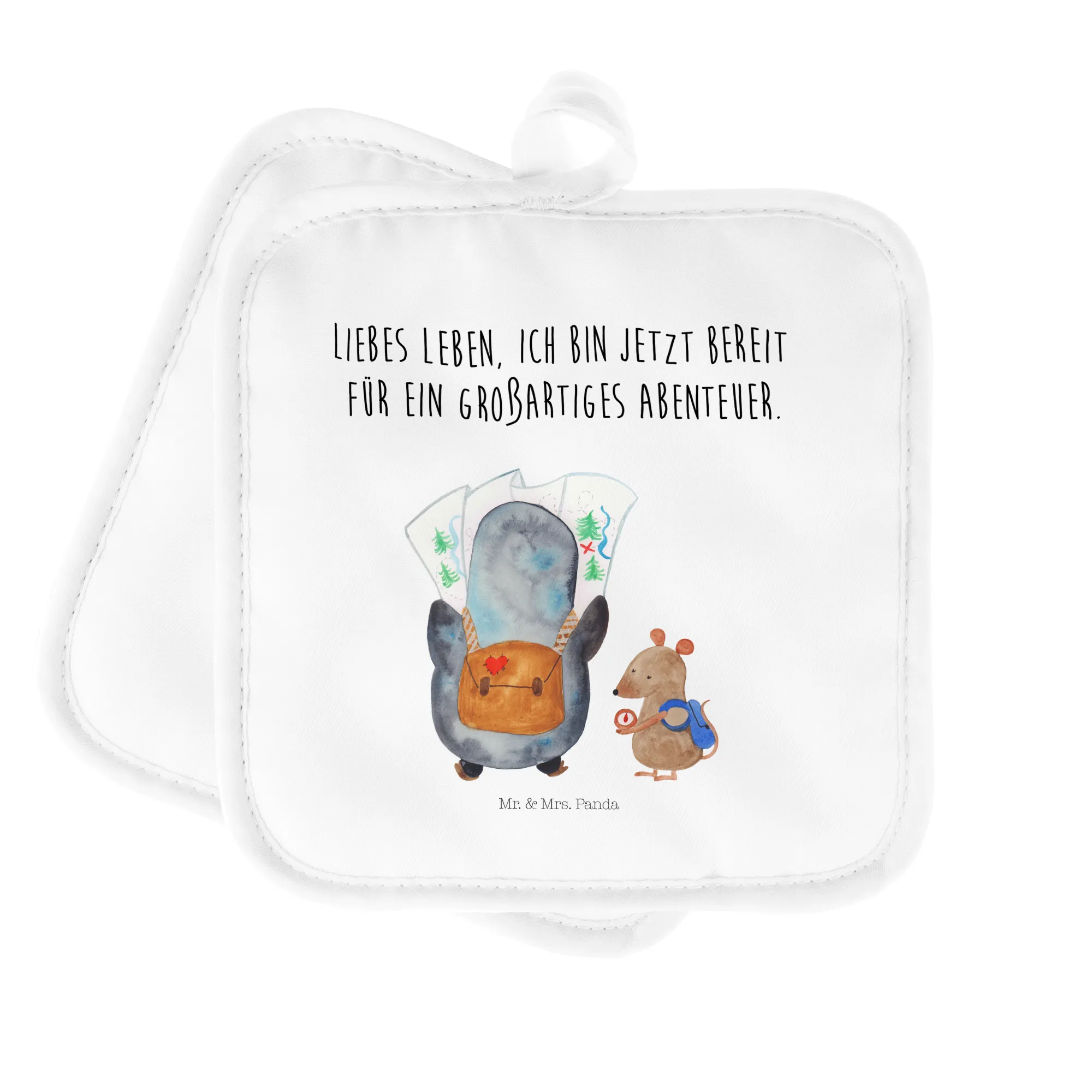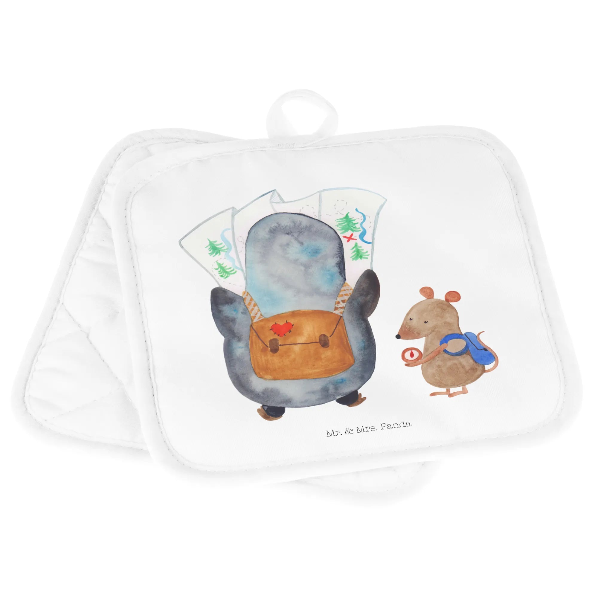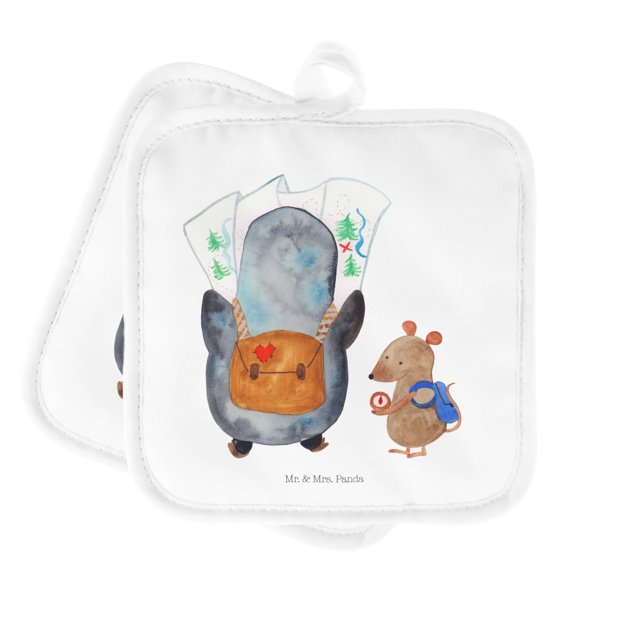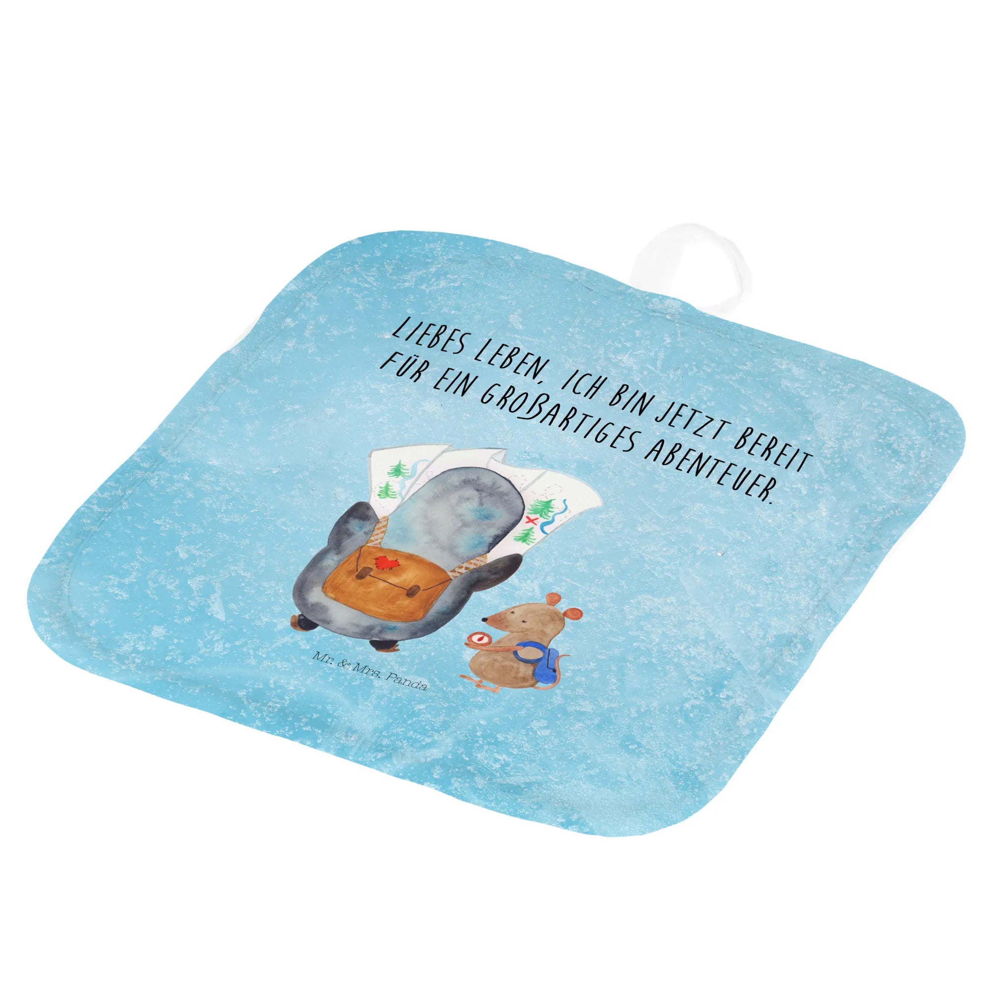 2-elementowy zestaw podkładek pod garnki Pingwin i Mysz Wędrowcy - z napisem - lodowoniebieski