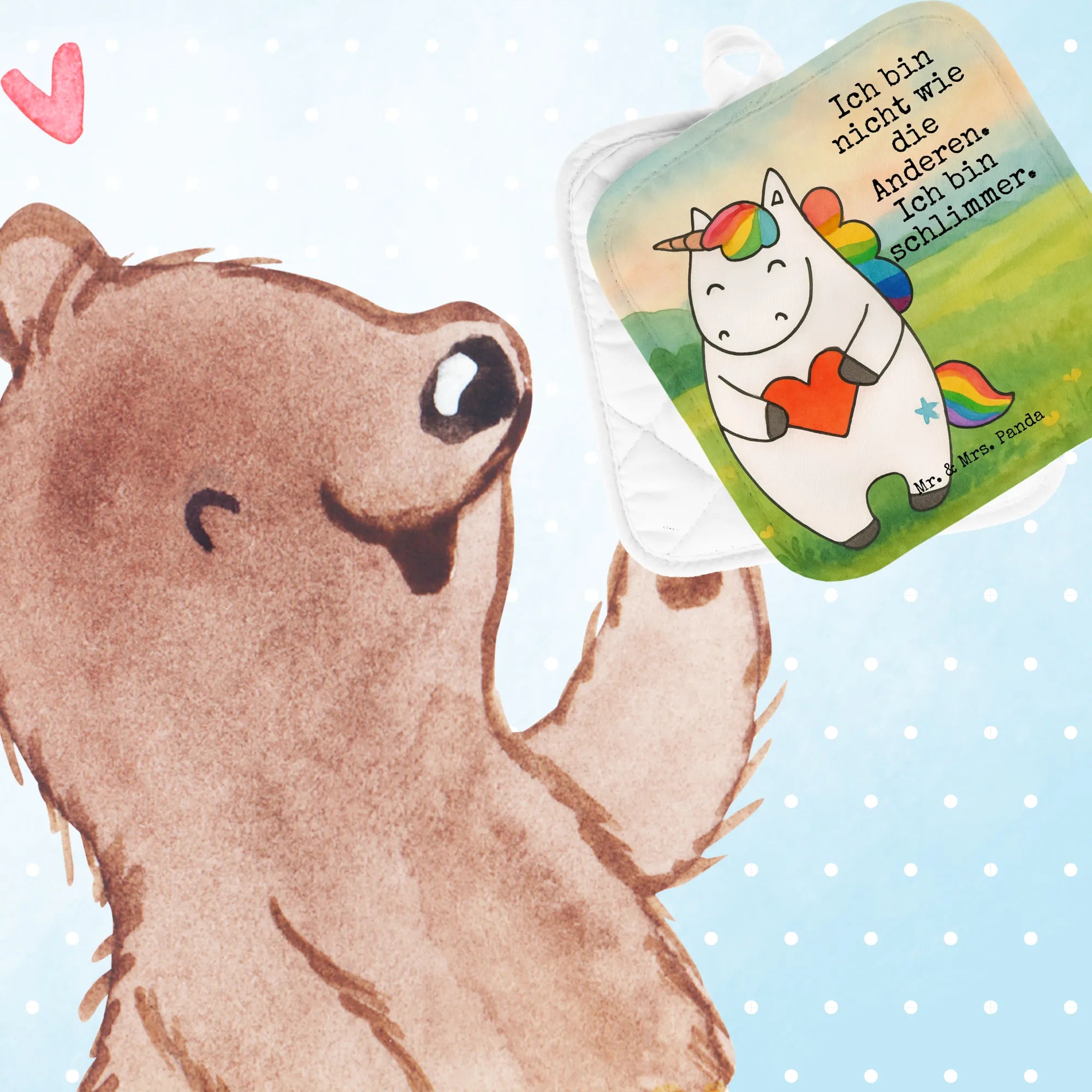 2er Set Topflappen Einhorn Herz Design