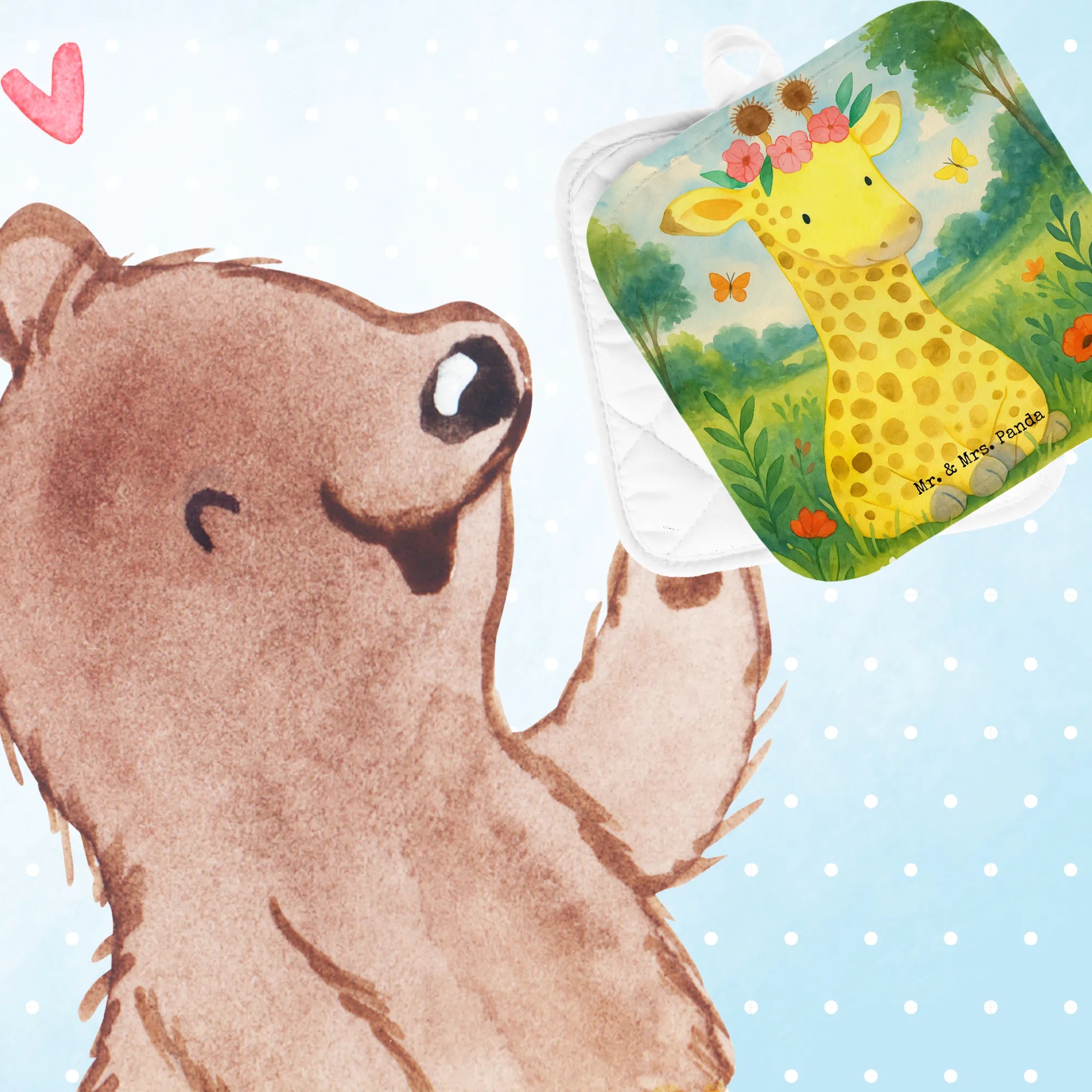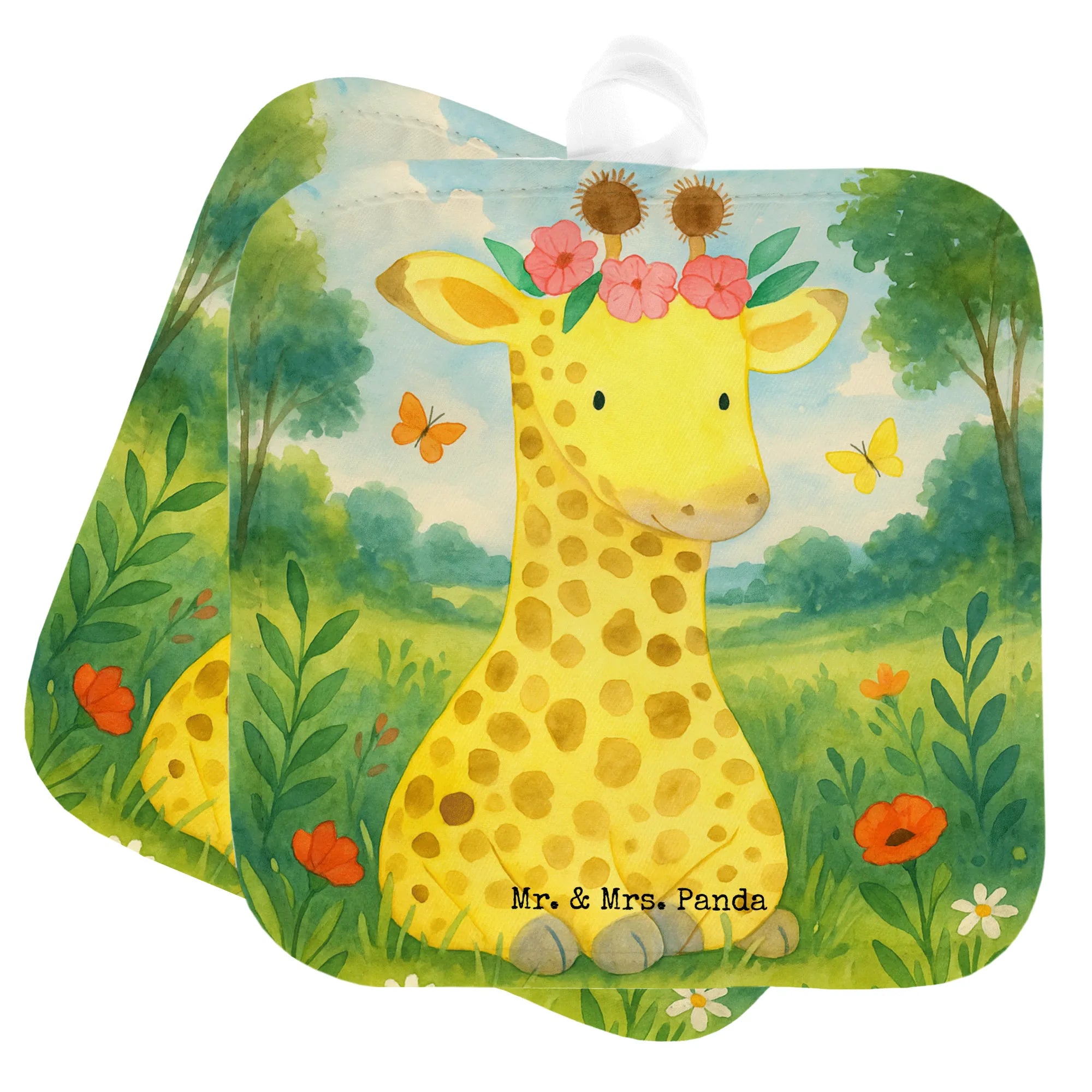 2er Set Topflappen Giraffe Blumenkranz Design
